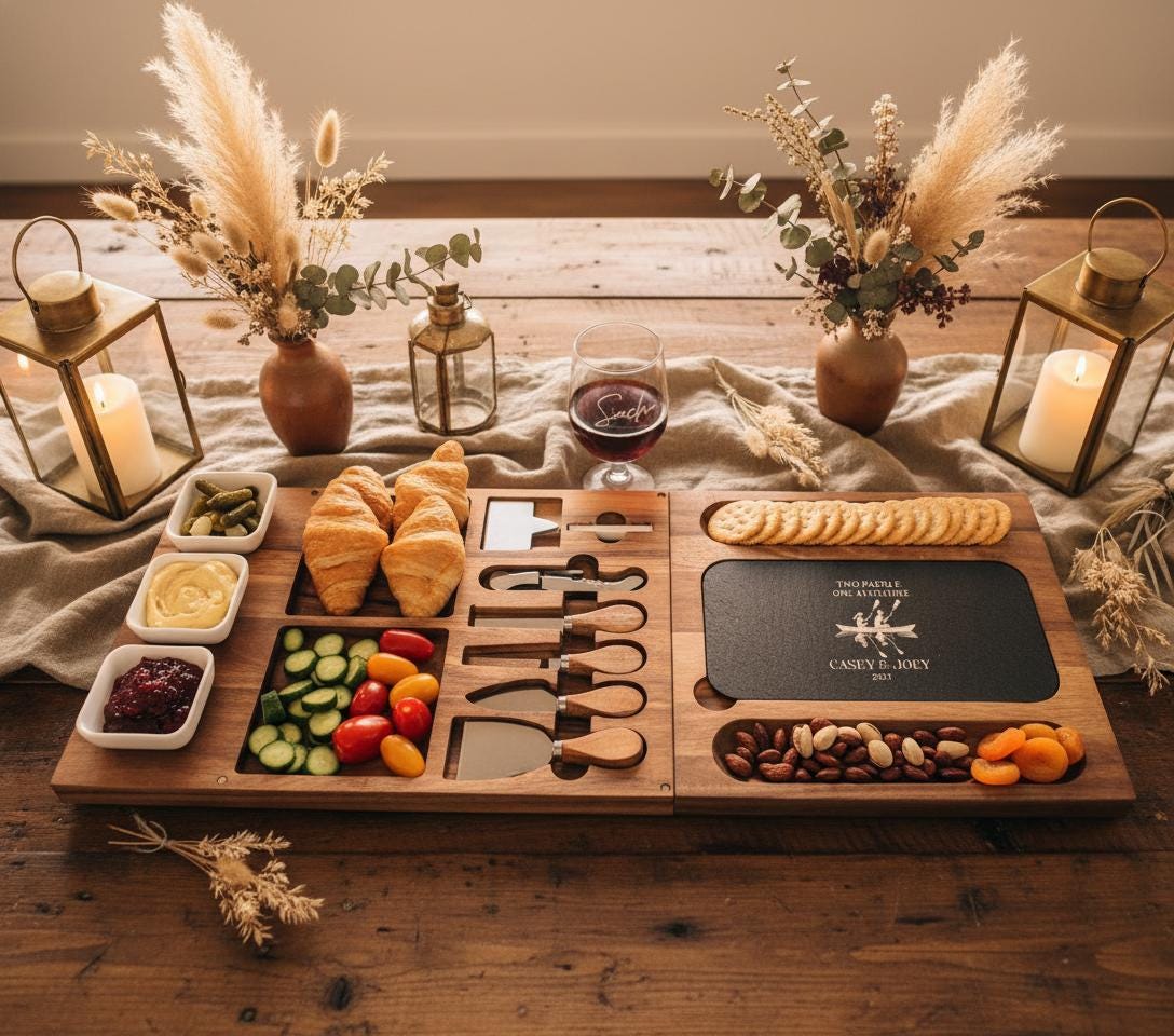 Elevate your hosting game and make a statement at your next gathering! Order your Personalized Cheese & Charcuterie Board Set today and add a touch of personalized sophistication and lasting elegance to every celebration!