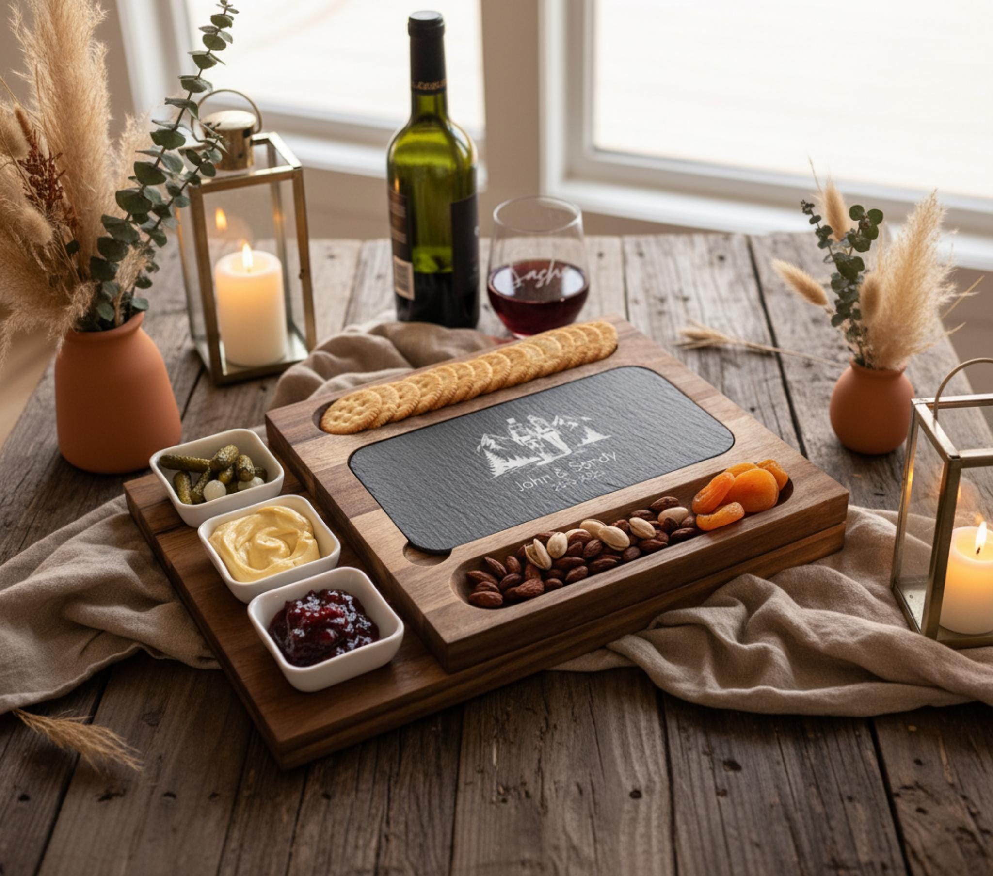 This personalized acacia wood board is the perfect centerpiece for weddings, anniversaries, housewarming parties, Christmas, and any occasion where lasting memories are made.