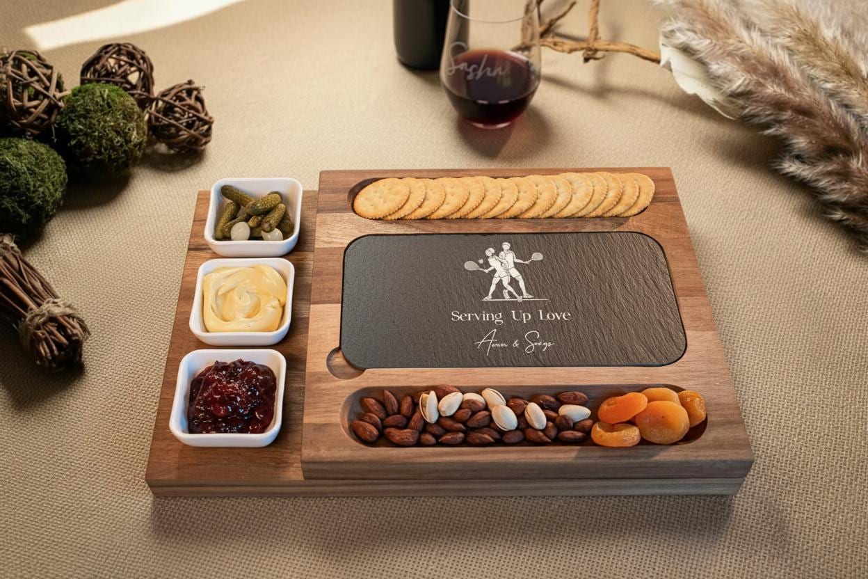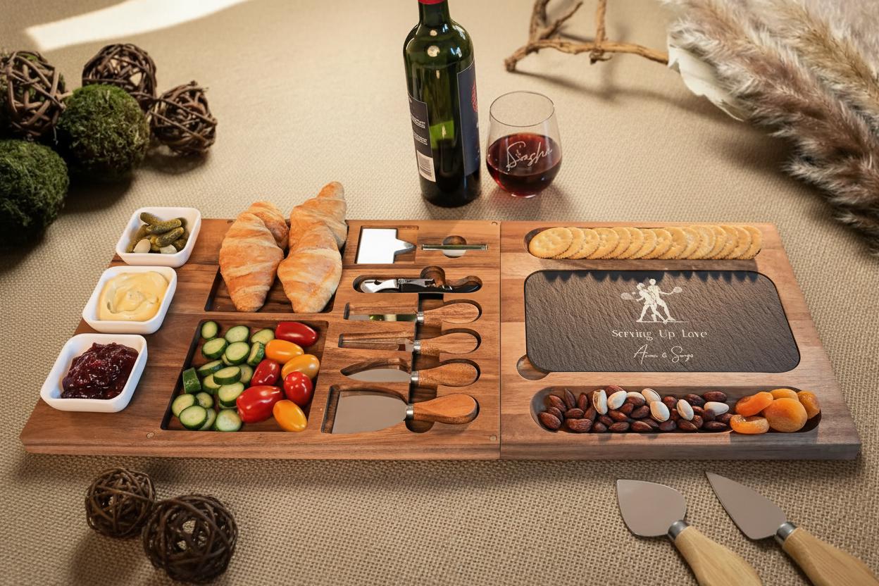 Personalized Charcuterie Set - Custom Engraved Cutting Board: Sport Enthusiasts, Tennis Lovers, Couple's Tennis Players, Housewarming Gift