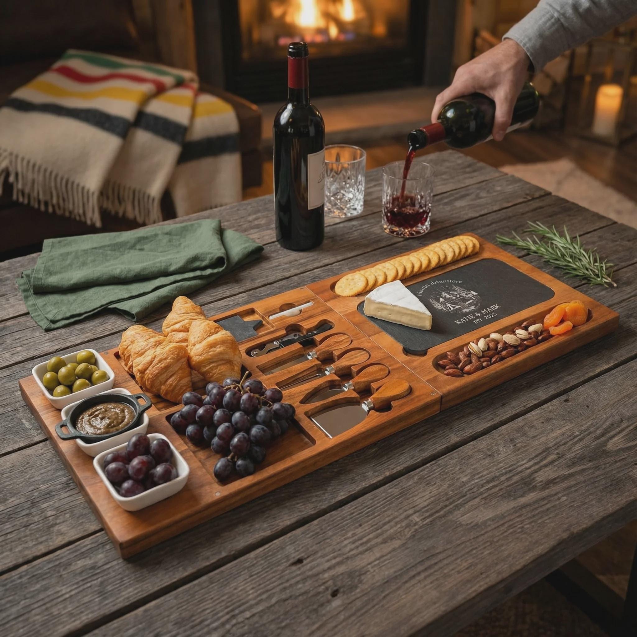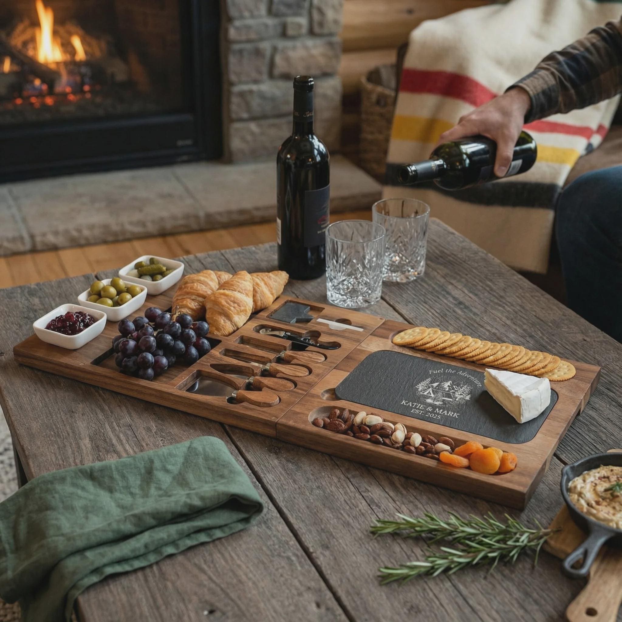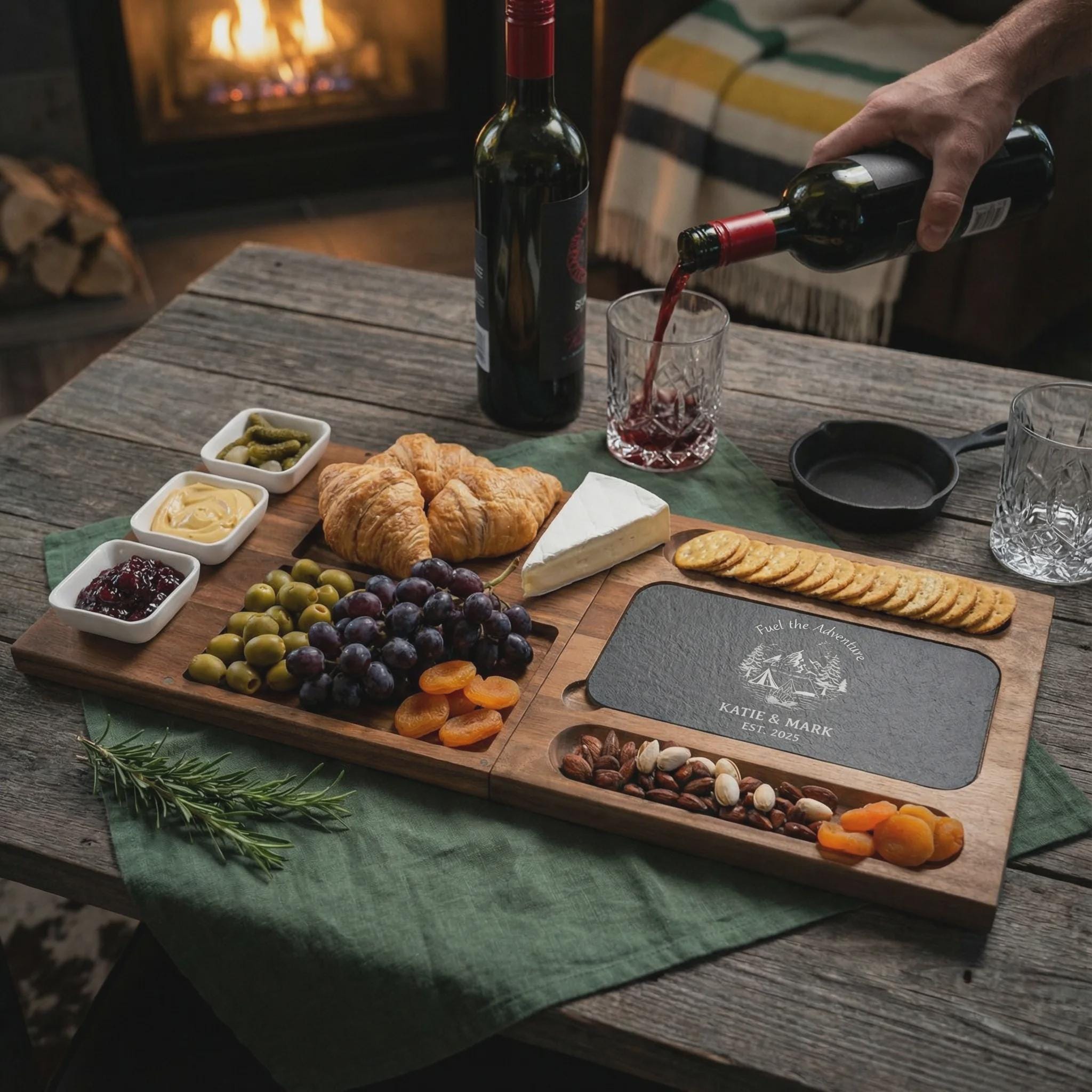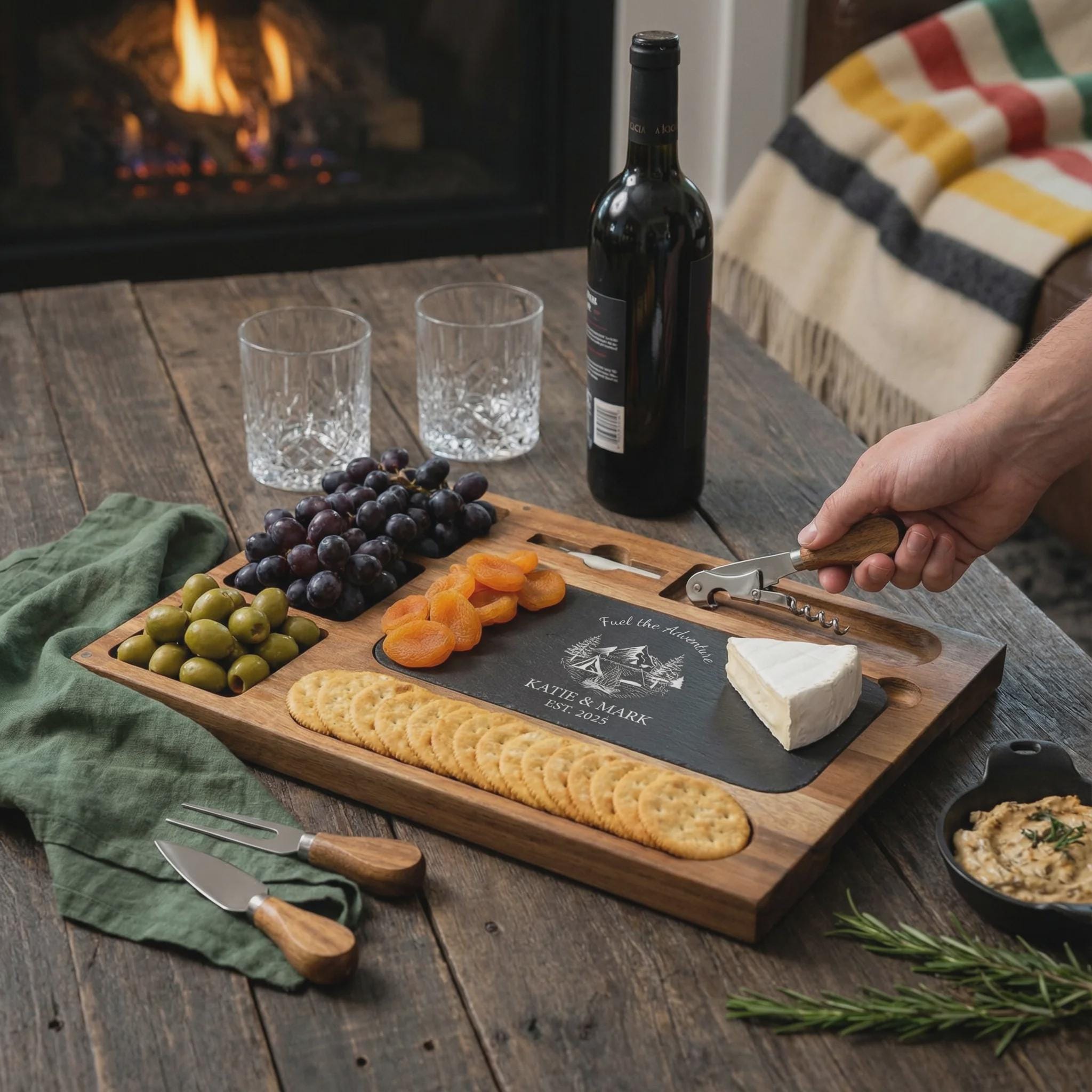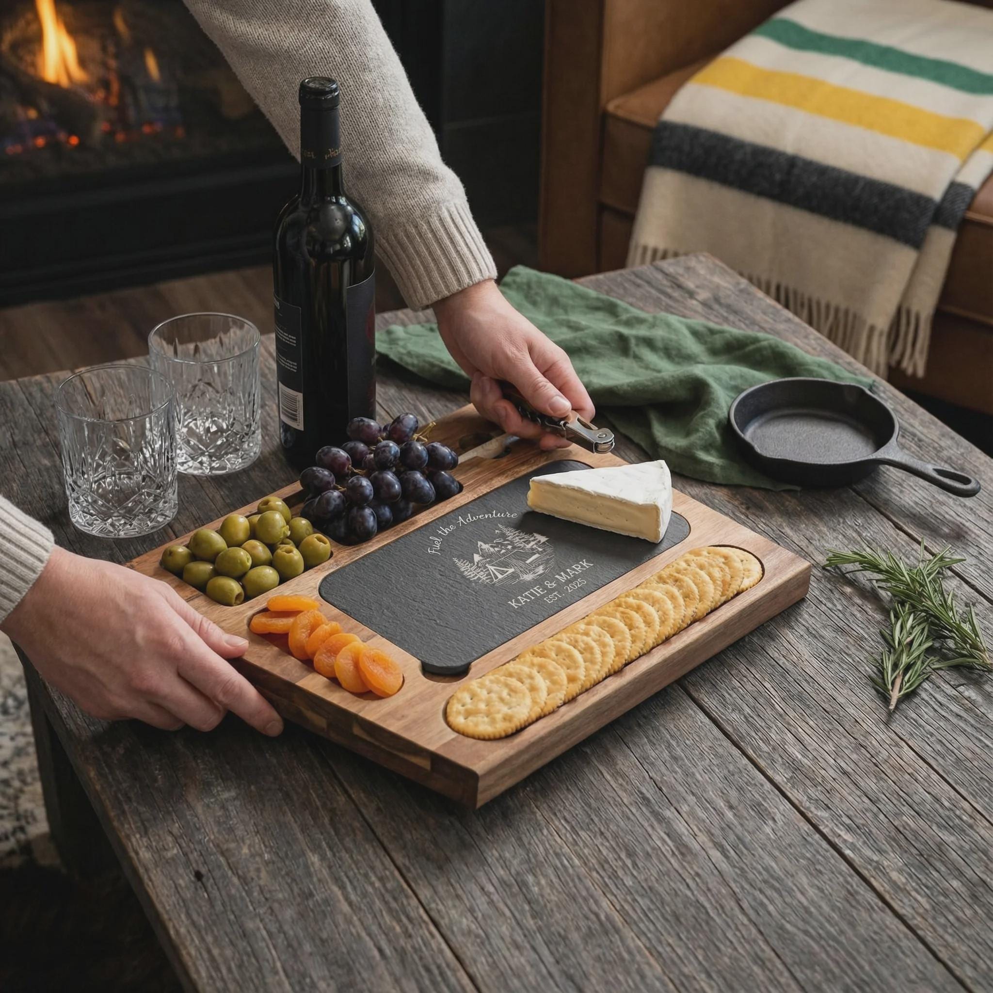 Personalized Charcuterie Set – Custom Engraved Cutting Board, Wilderness Adventure Gift for Couples & Outdoor Lovers