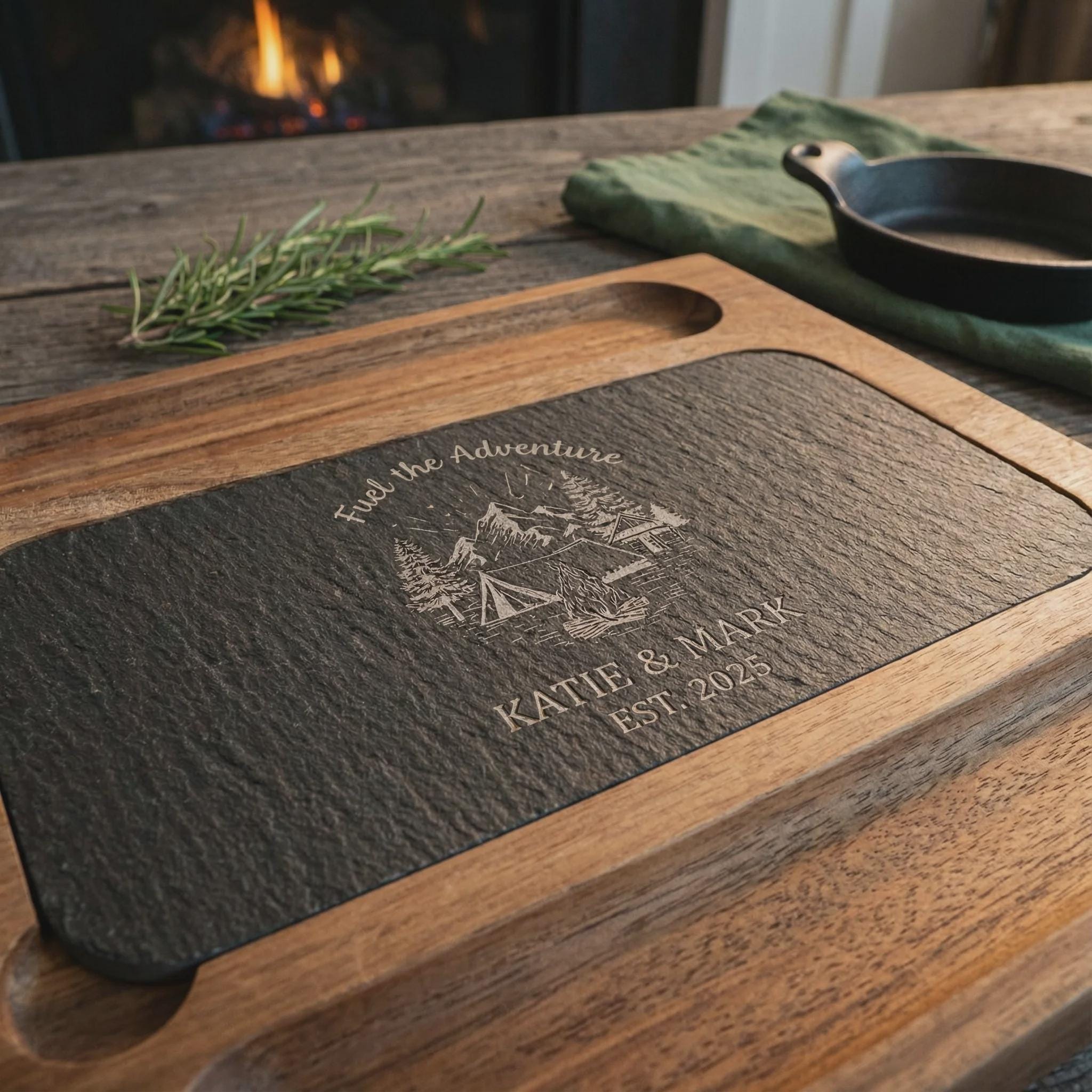 Bring the spirit of the outdoors to the table with this beautifully crafted personalized charcuterie set, designed for couples who love adventure, nature, and meaningful moments together. Expertly engraved with a wilderness-inspired design and your custom names or date, this board turns every gathering into a cozy campfire-style experience. Made from premium hardwood, it’s both a functional serving piece and a lasting keepsake, perfect for celebrating shared journeys, new beginnings, or quiet evenings filled with good food, good wine, and great memories.