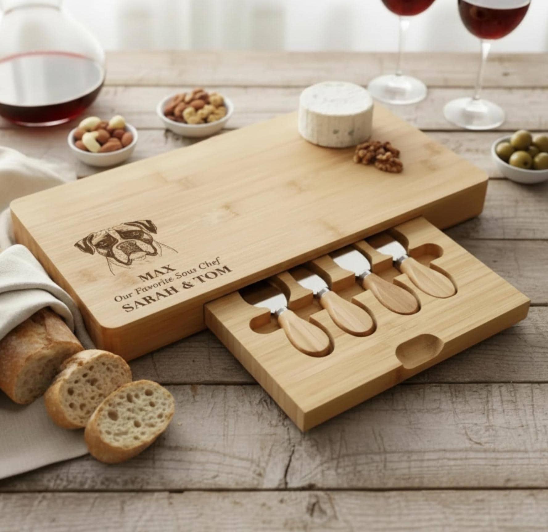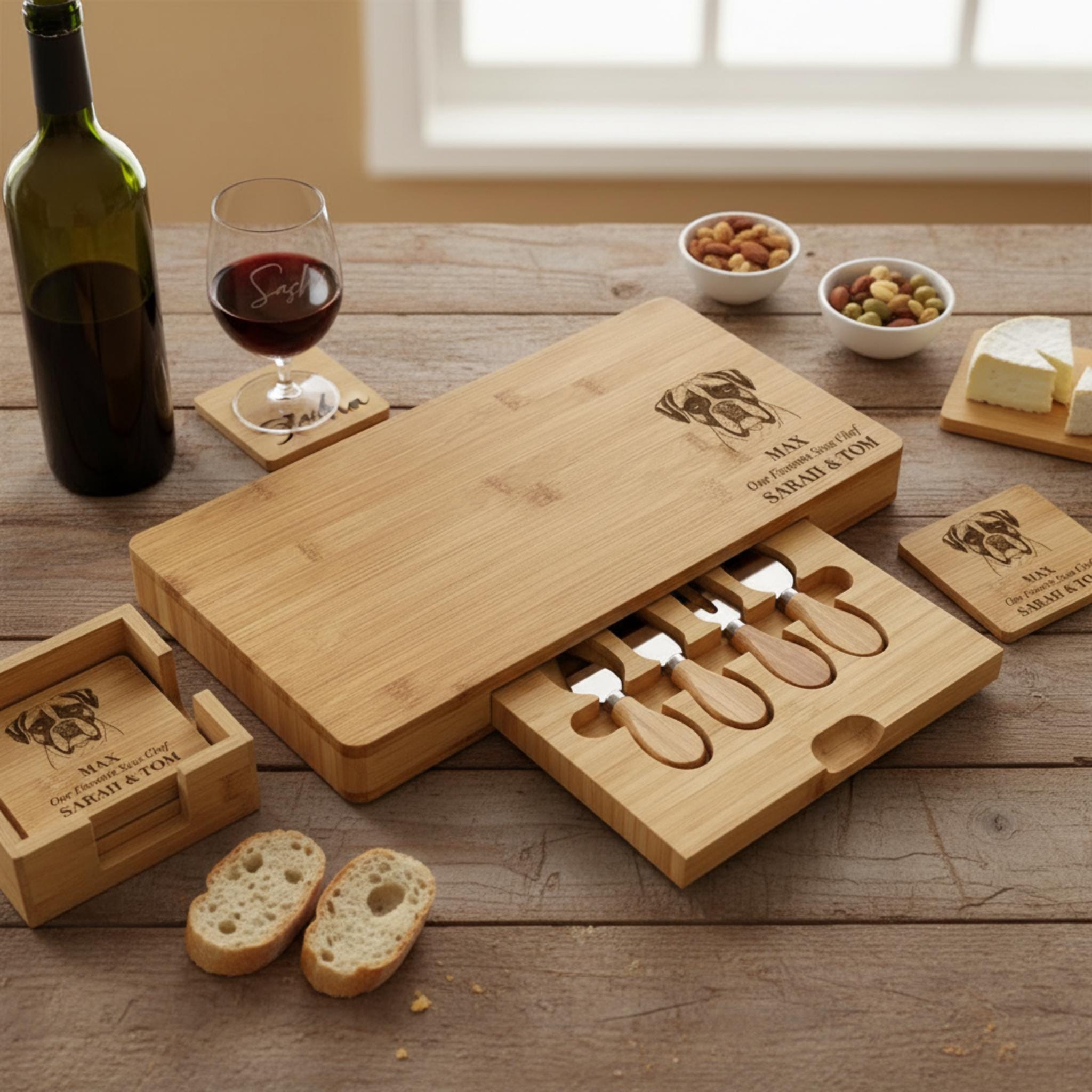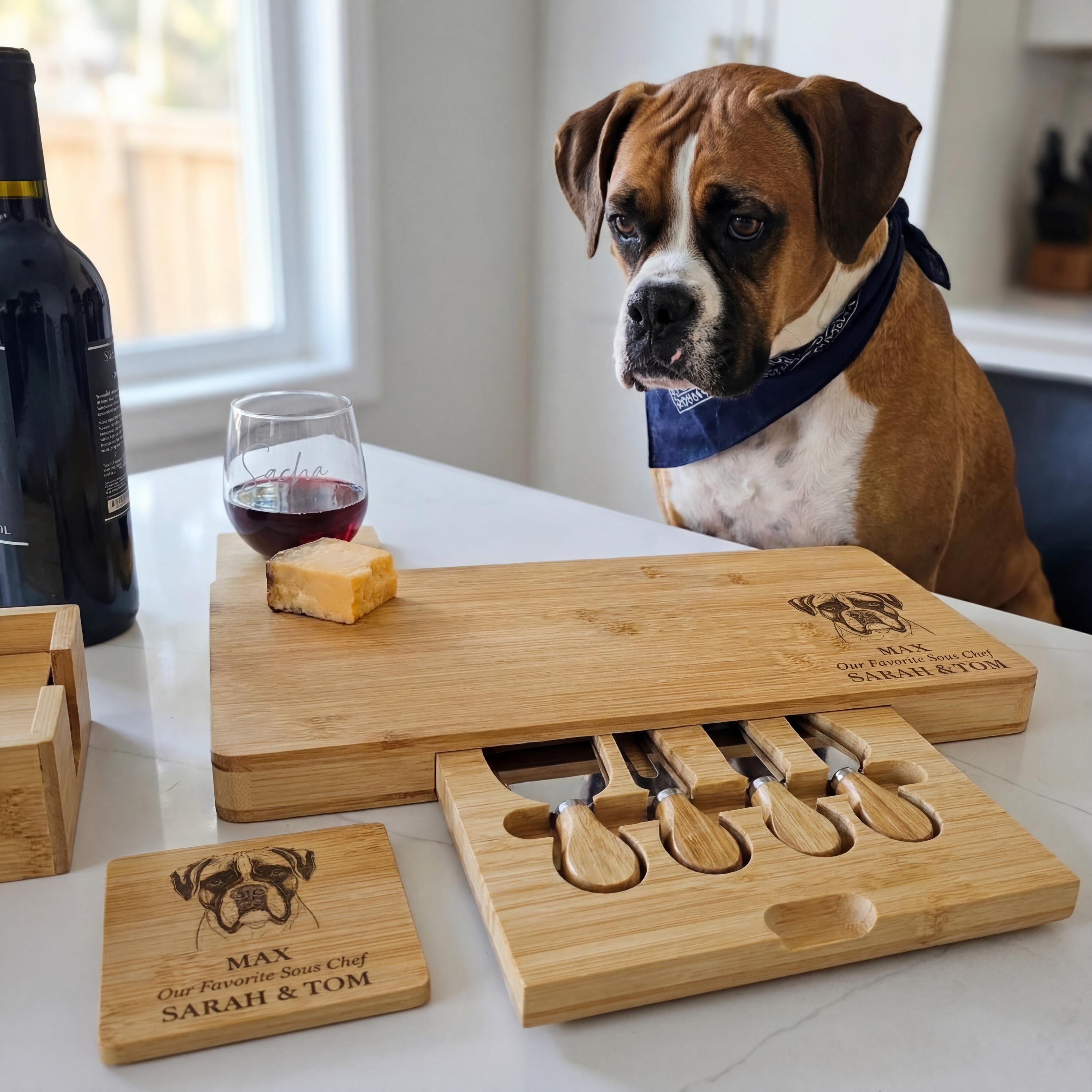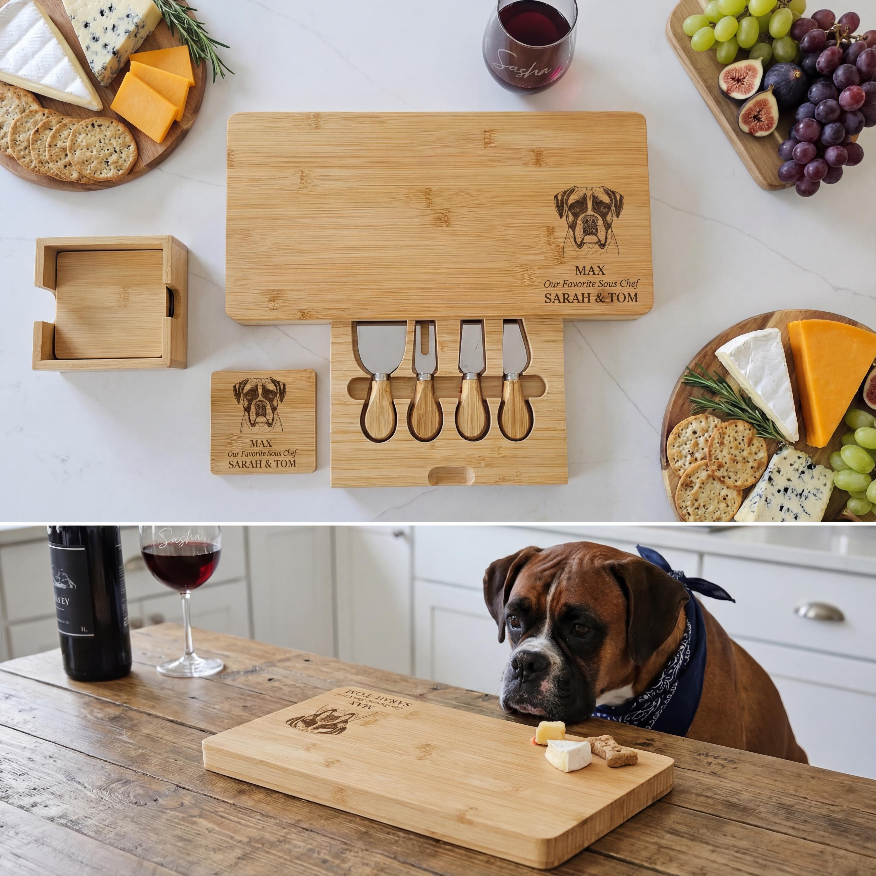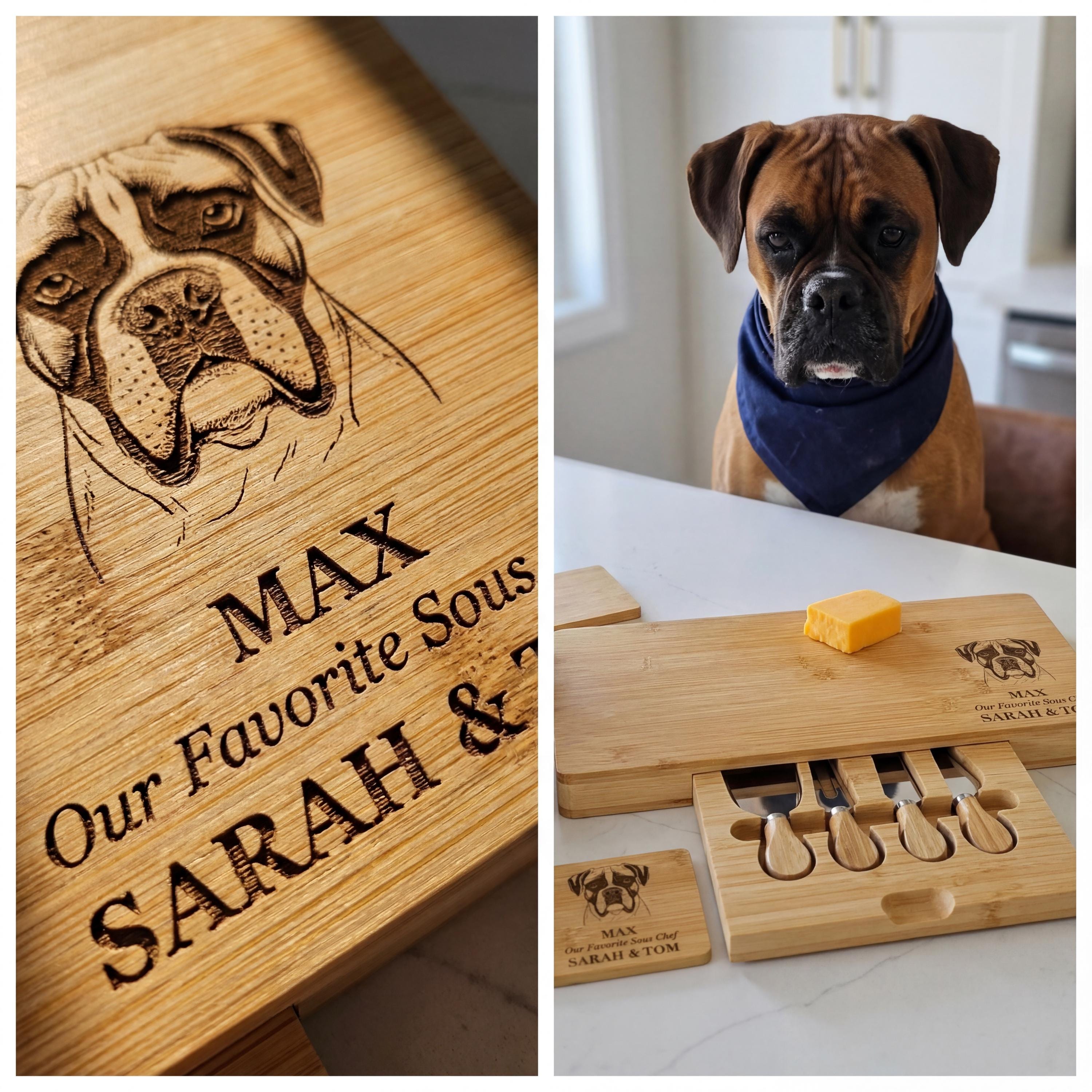 Personalized Charcuterie Board – Dog Lover: Custom Engraved Cheese Board, Housewarming, Pet Owner, puppy, Dog Portrait, Dog Gift, Dog Board