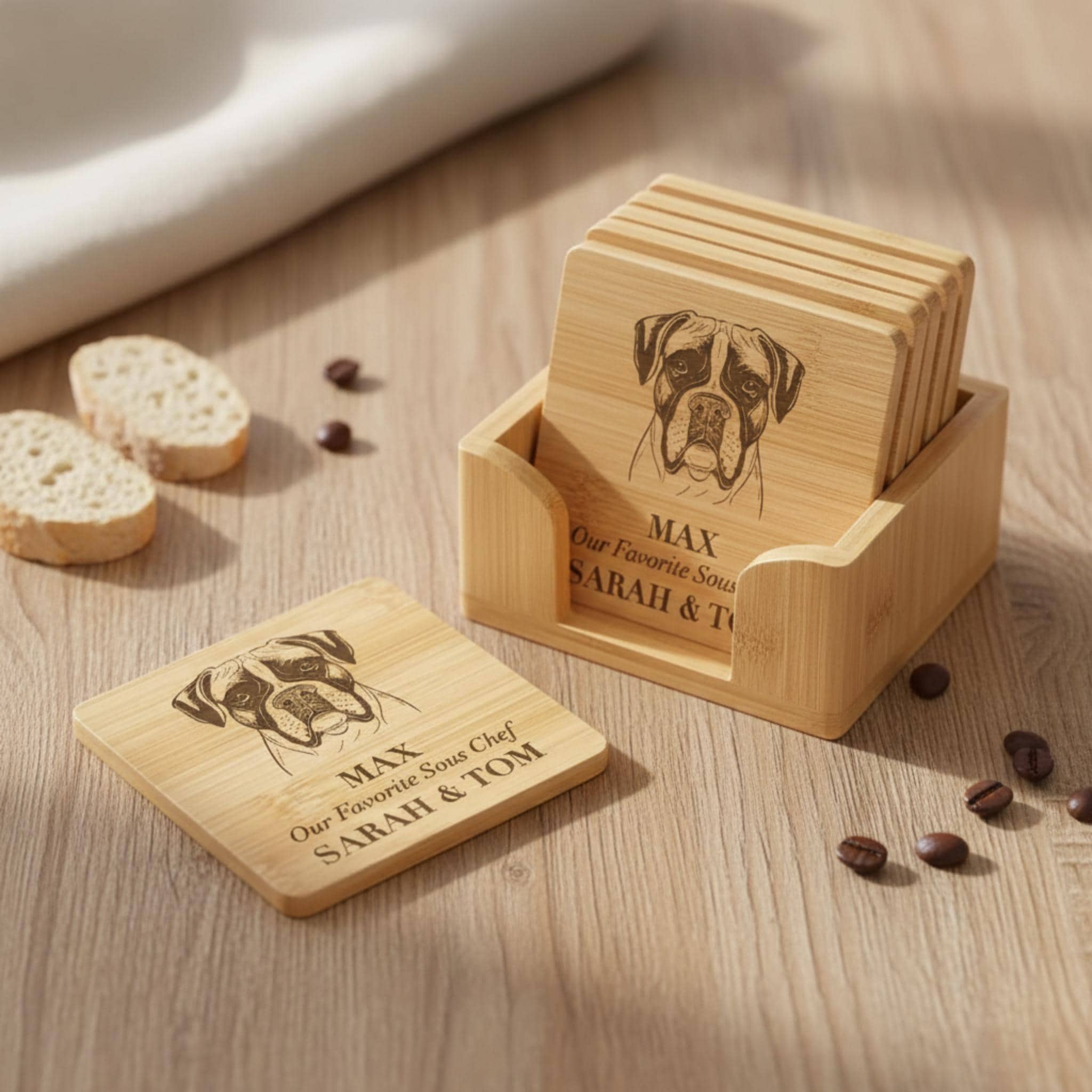 Pair the personalized board with the matching coaster set for a complete, sophisticated presentation.