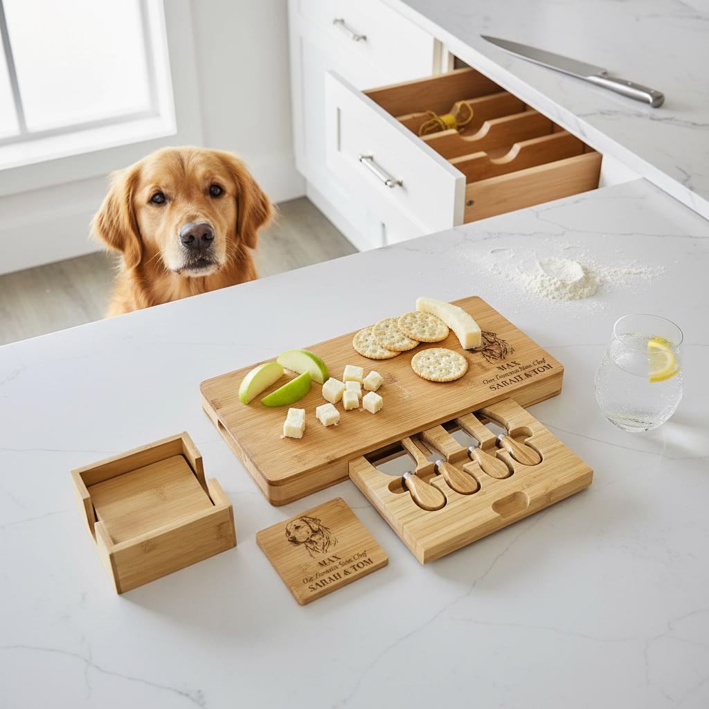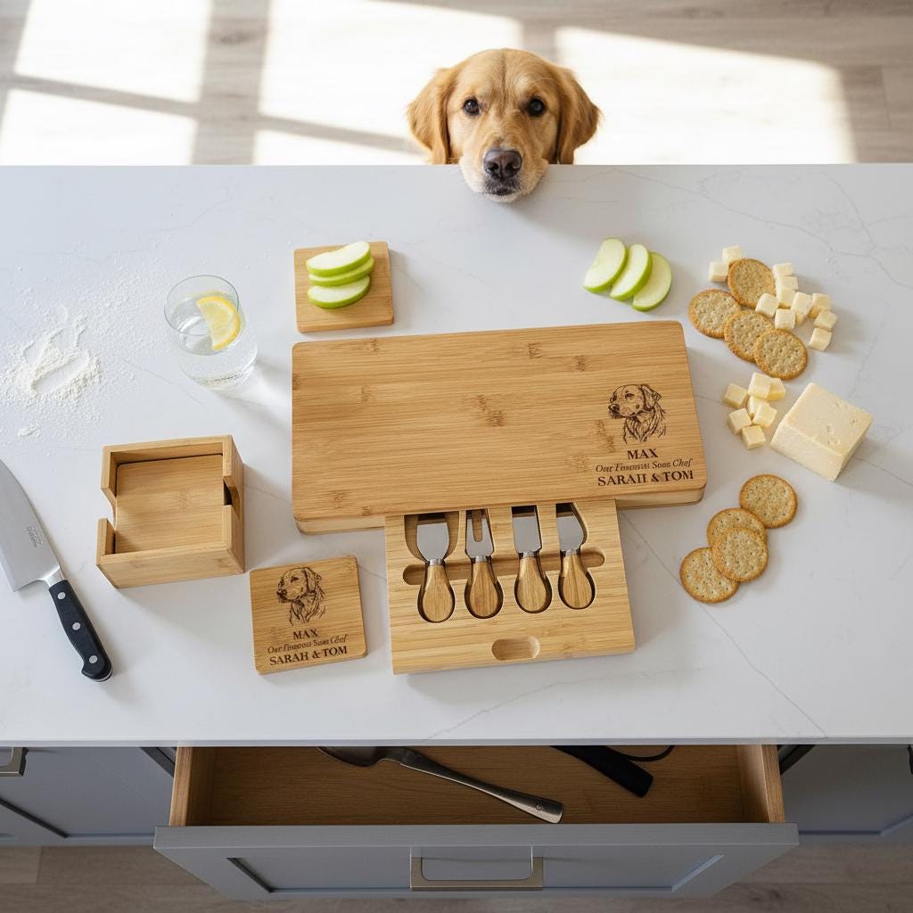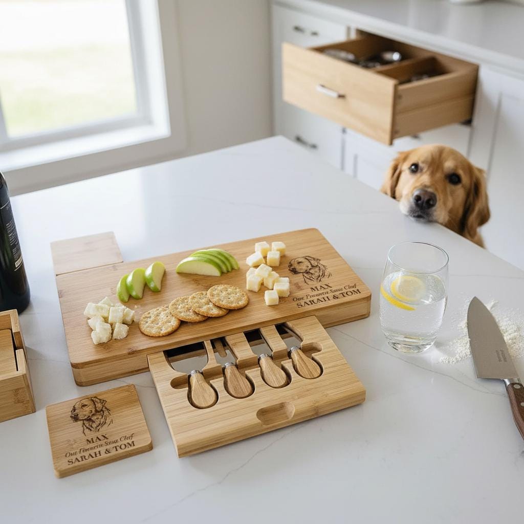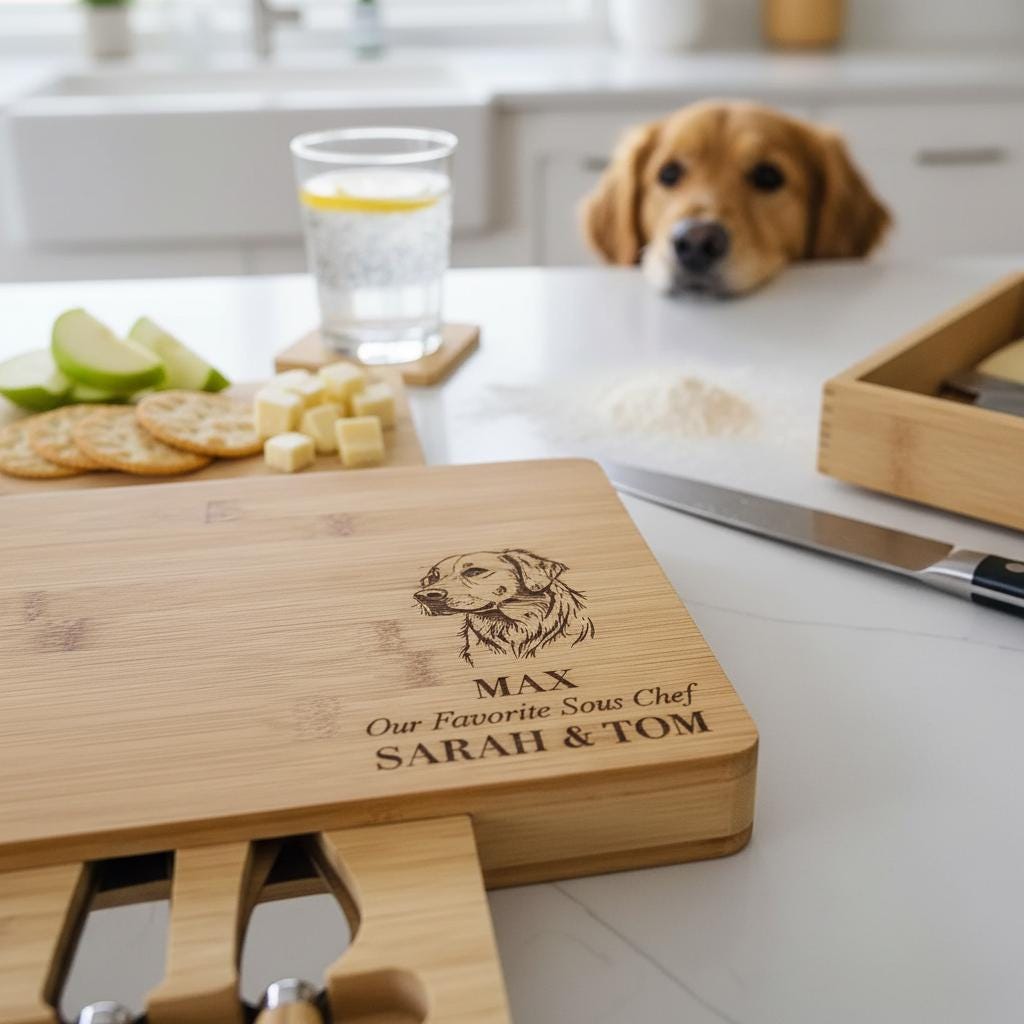Personalized Charcuterie Board – Dog Lovers: Custom Engraved Cheese Board, Personalized Dog Portrait, Pet Photo Engraved Cutting Board