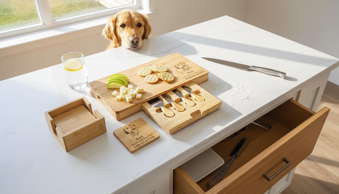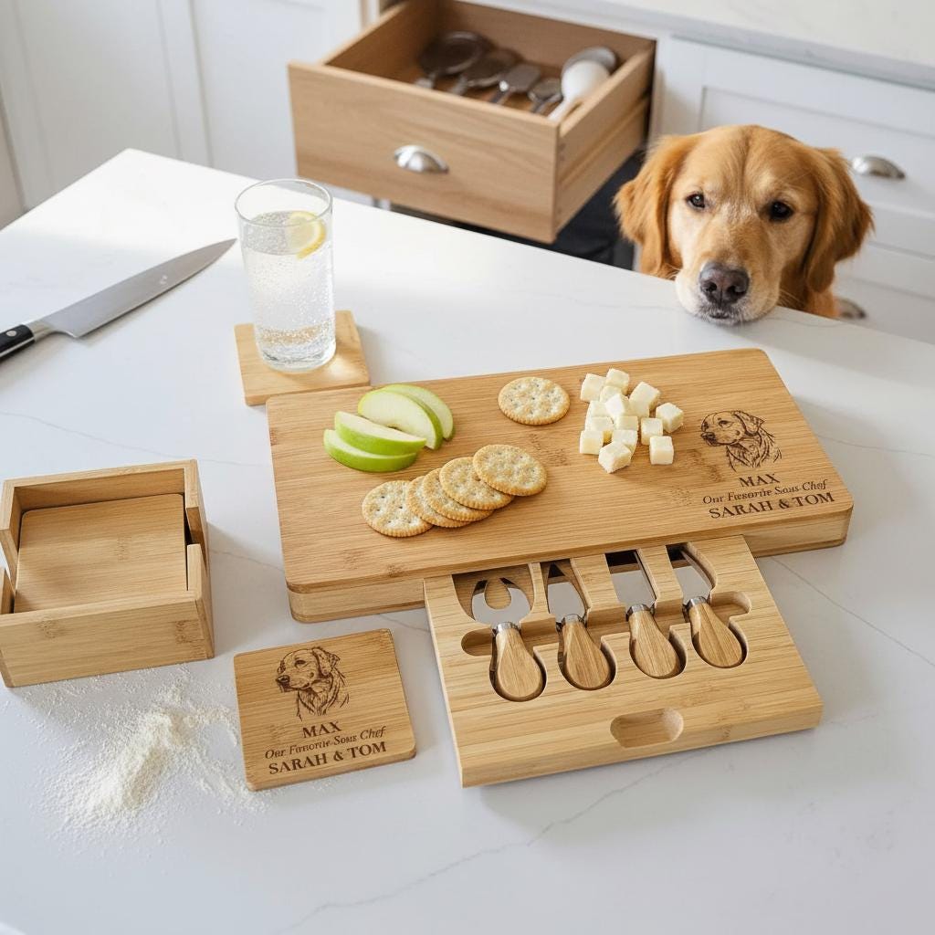 Elevate every occasion with this personalized cheese board set that effortlessly blends art, function, and sentiment. Click “Add to Cart” now to make your special moments unforgettable!