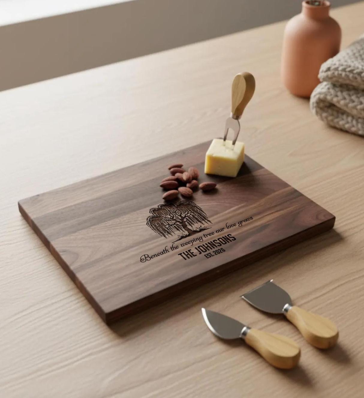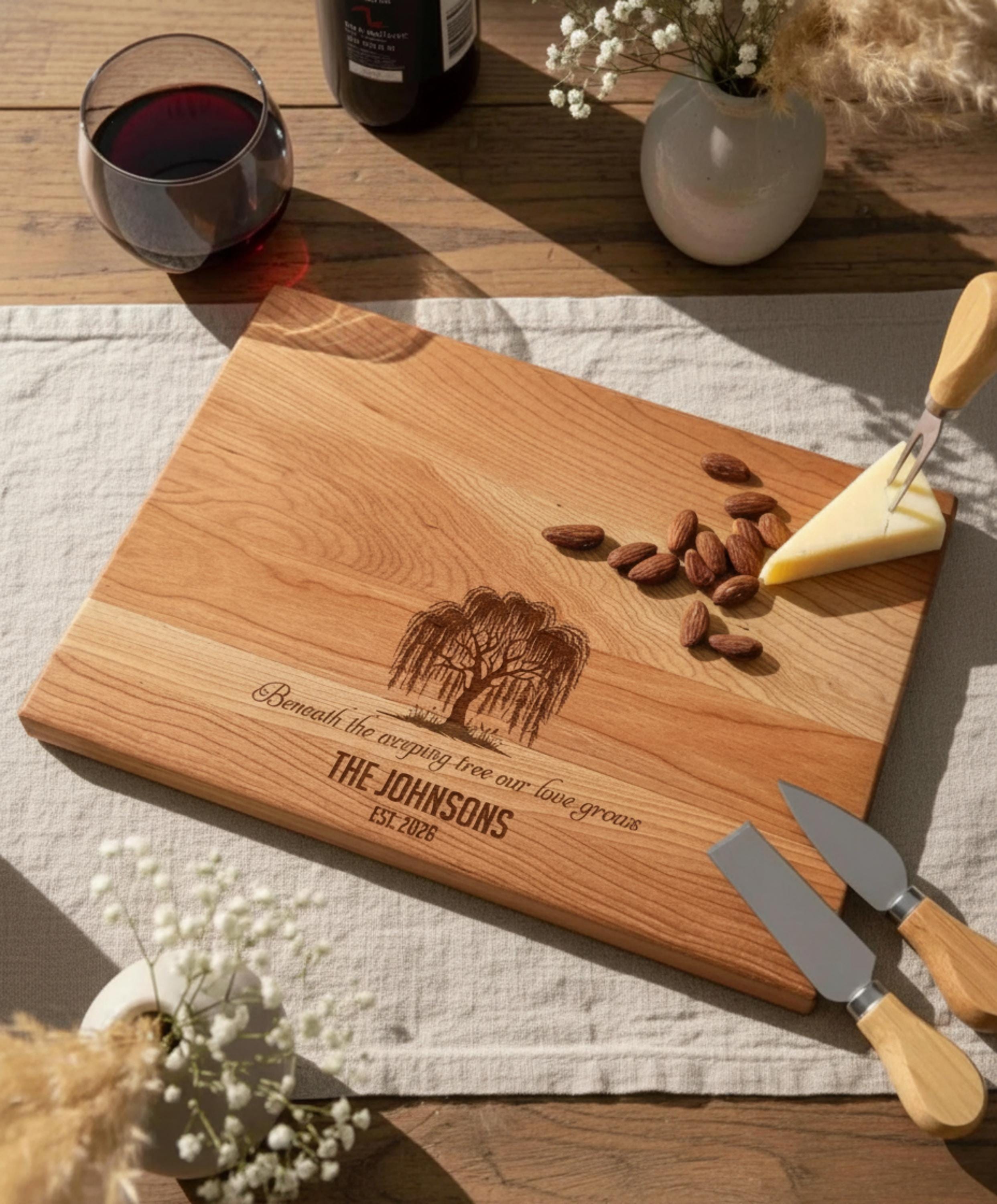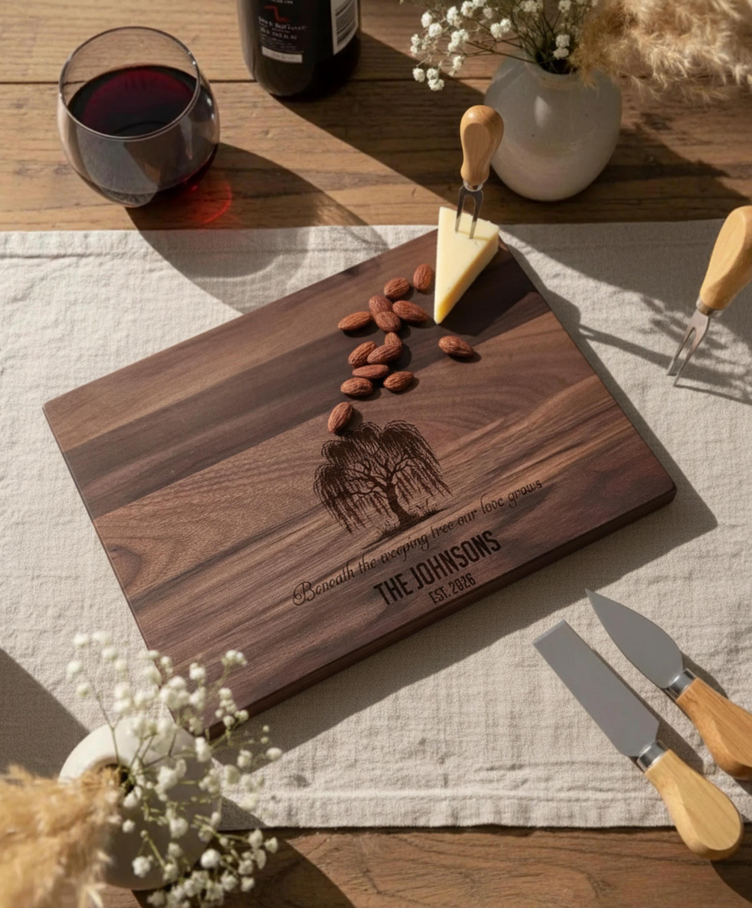 Personalized cutting board – Weeping Tree: Customized Charcuterie for Wedding, Willow Tree, Wedding Gift, Housewarming Gift, Engagement Gift