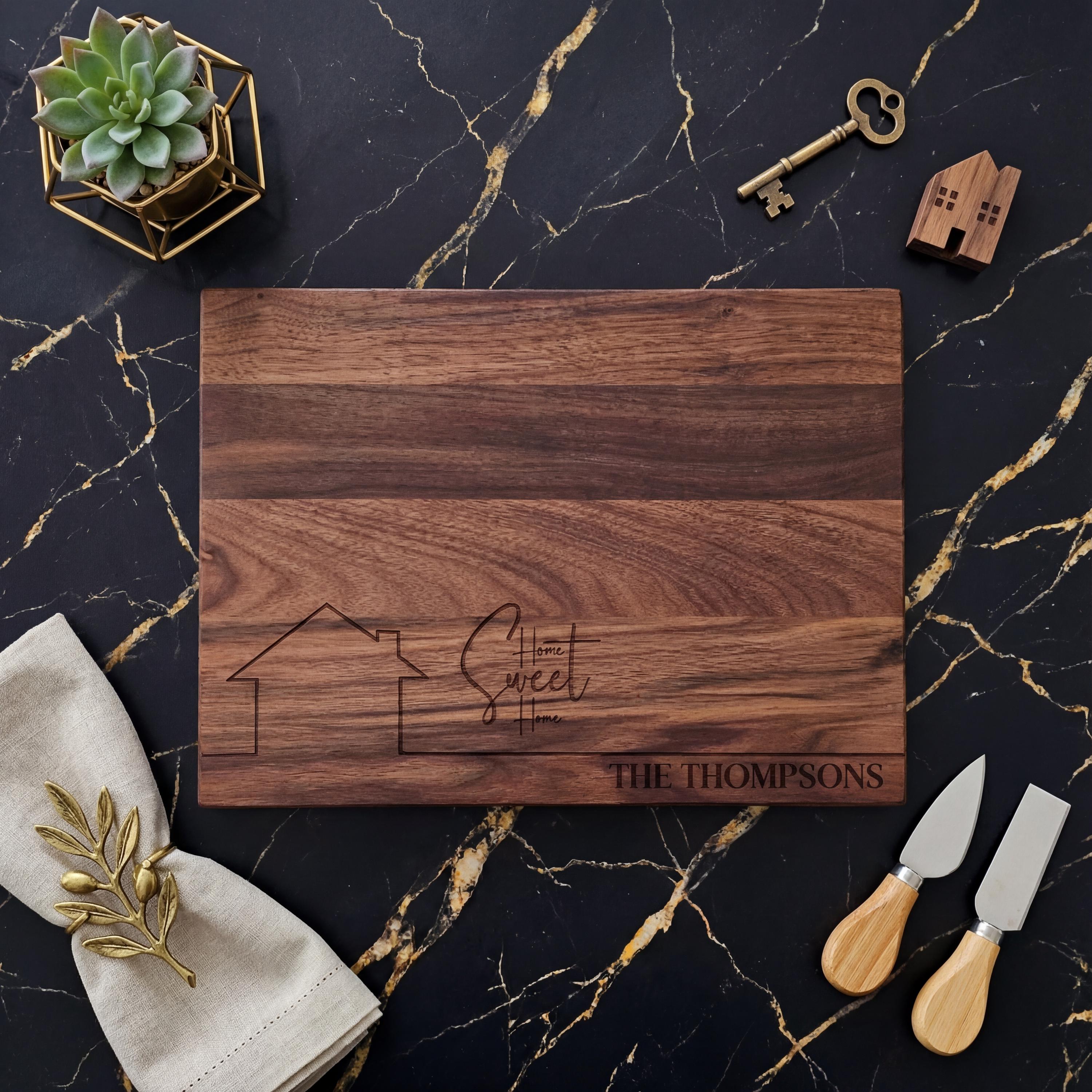 Personalized cutting board, Home Sweet Home: Custom Engraved Housewarming Gift for Realtor Closing, Wedding Gift, Engagement Gift