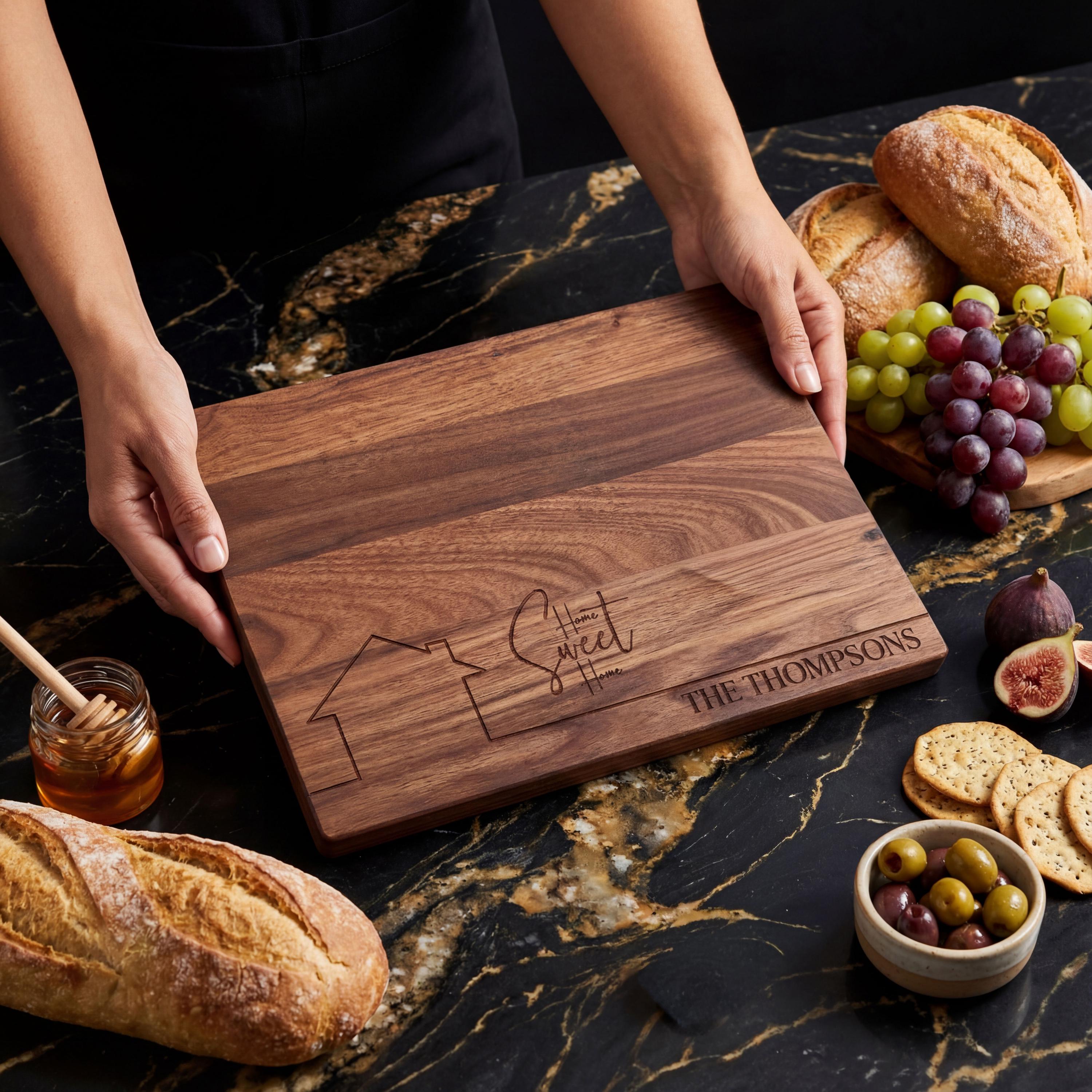 More than just a cutting tool—this engraved board serves as a stylish kitchen piece, perfect for serving, displaying, or welcoming loved ones into a new home.