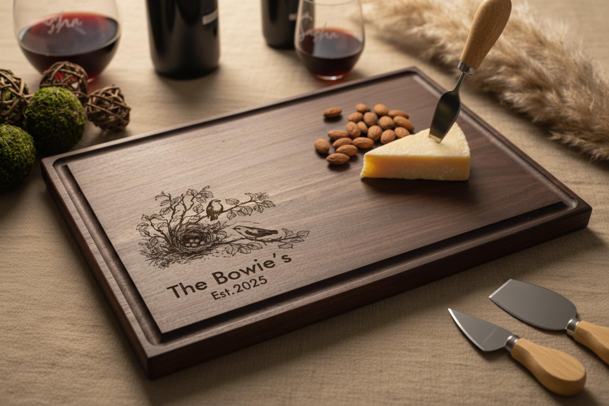 Personalized Cutting Board – Birds: Custom Engraved Charcuterie Board | Housewarming, Wedding, Engagement, Anniversary, Love Bird Gift
