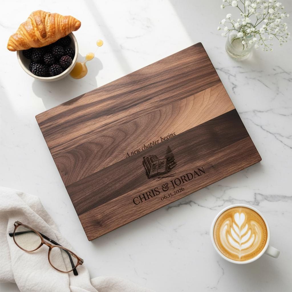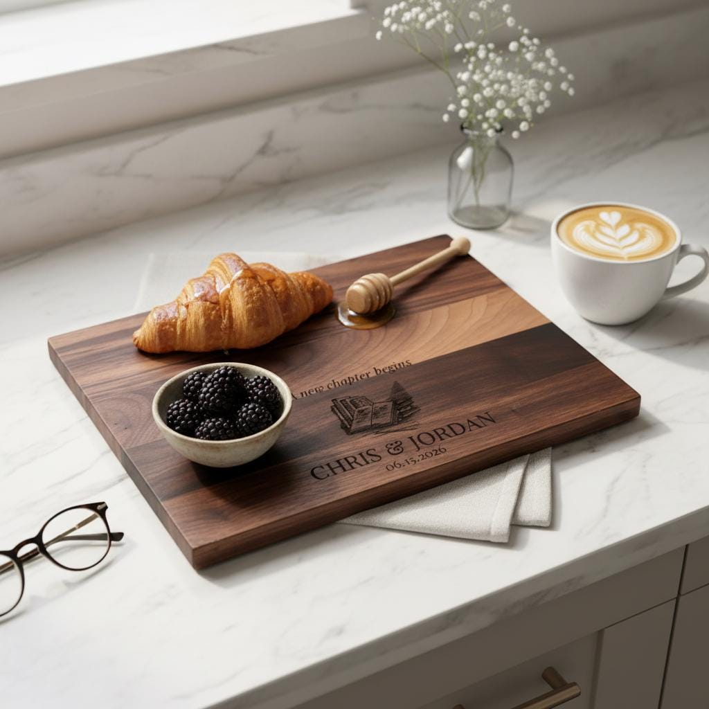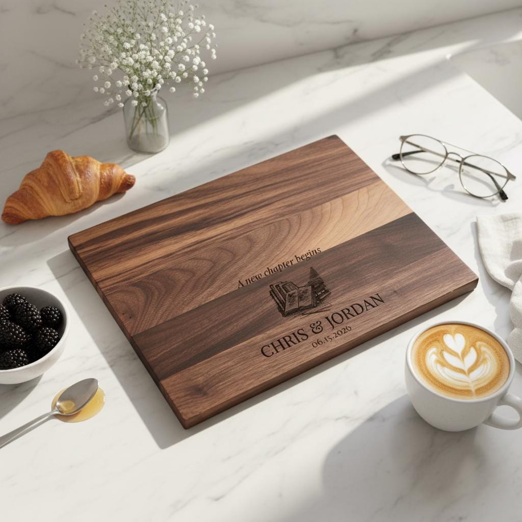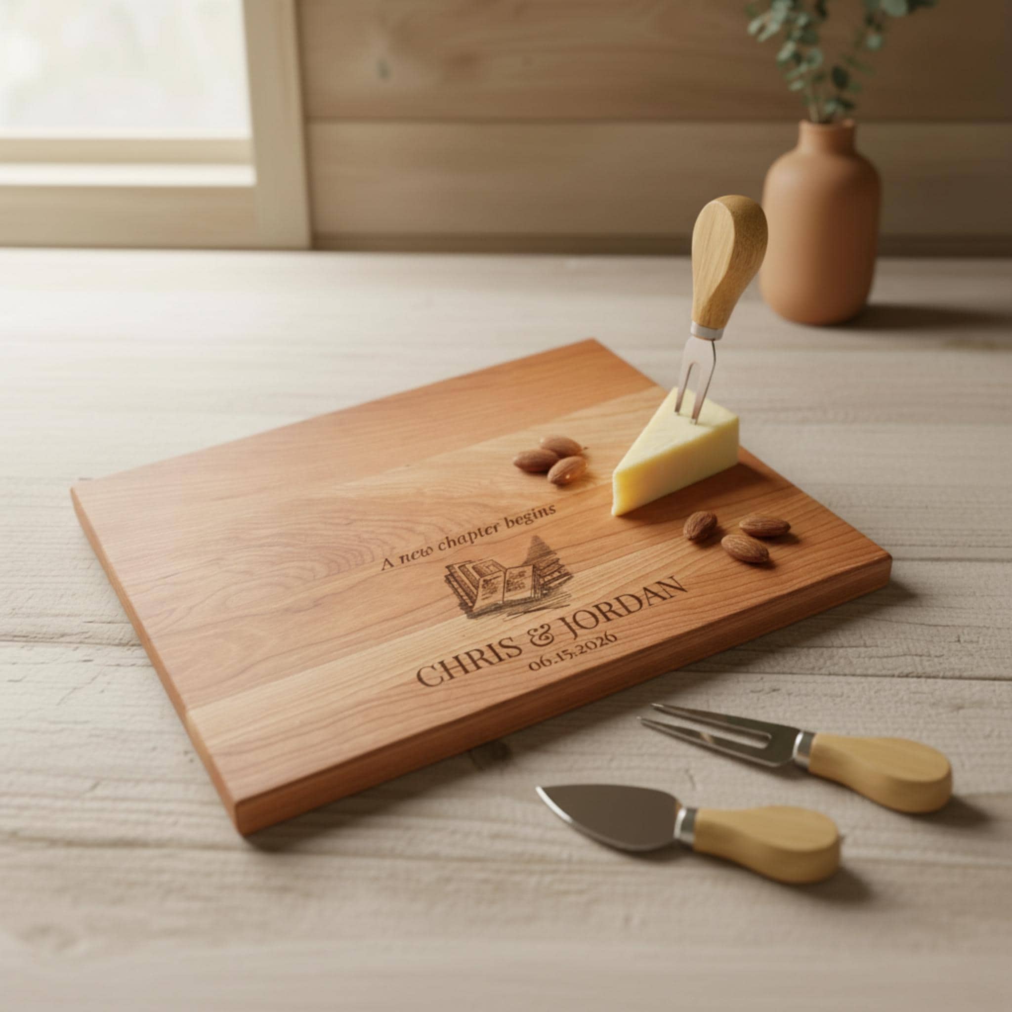 Personalized Cutting Board For Book Reader Couple: Customized Charcuterie Board, Housewarming, New Chapter Gift