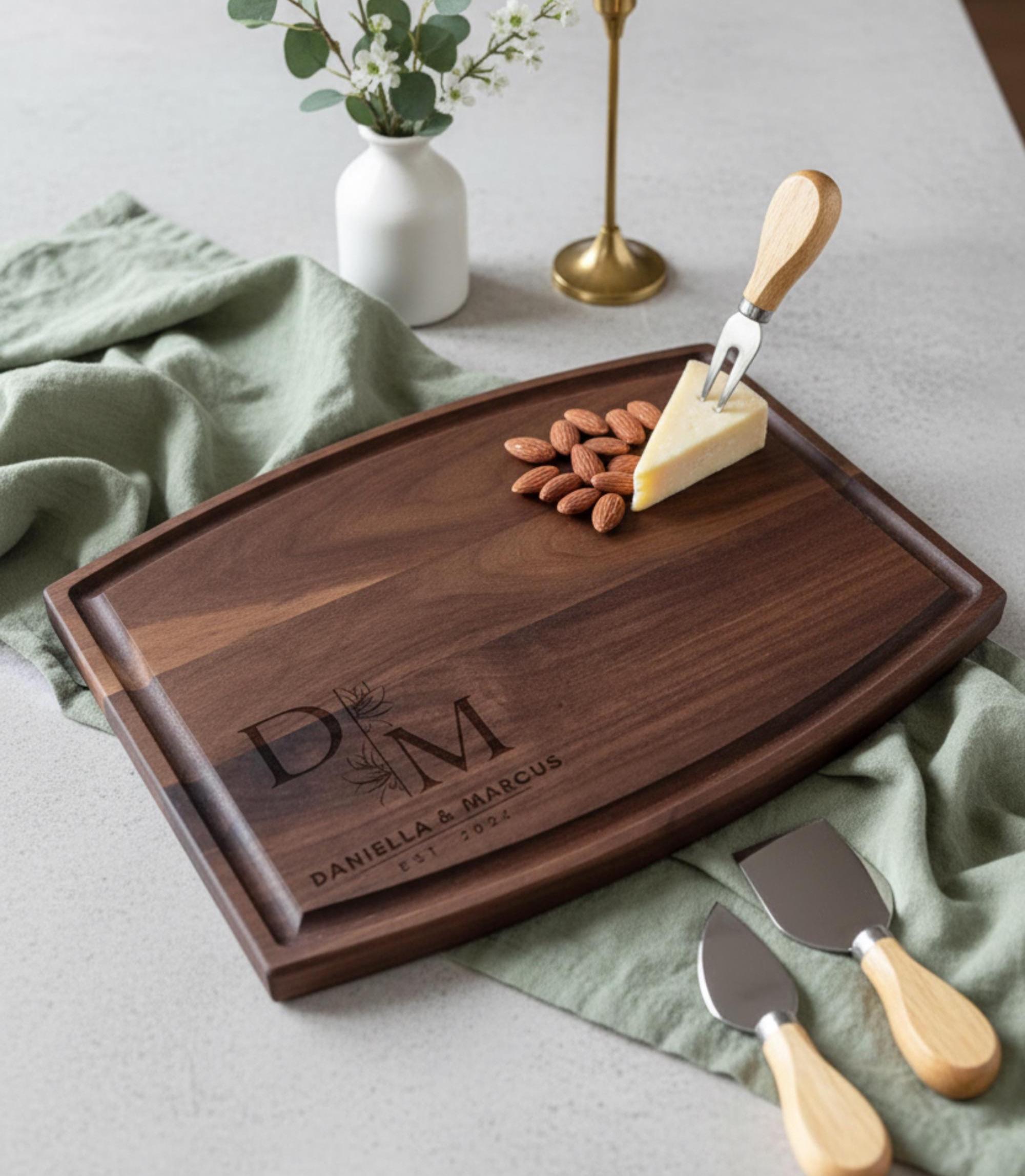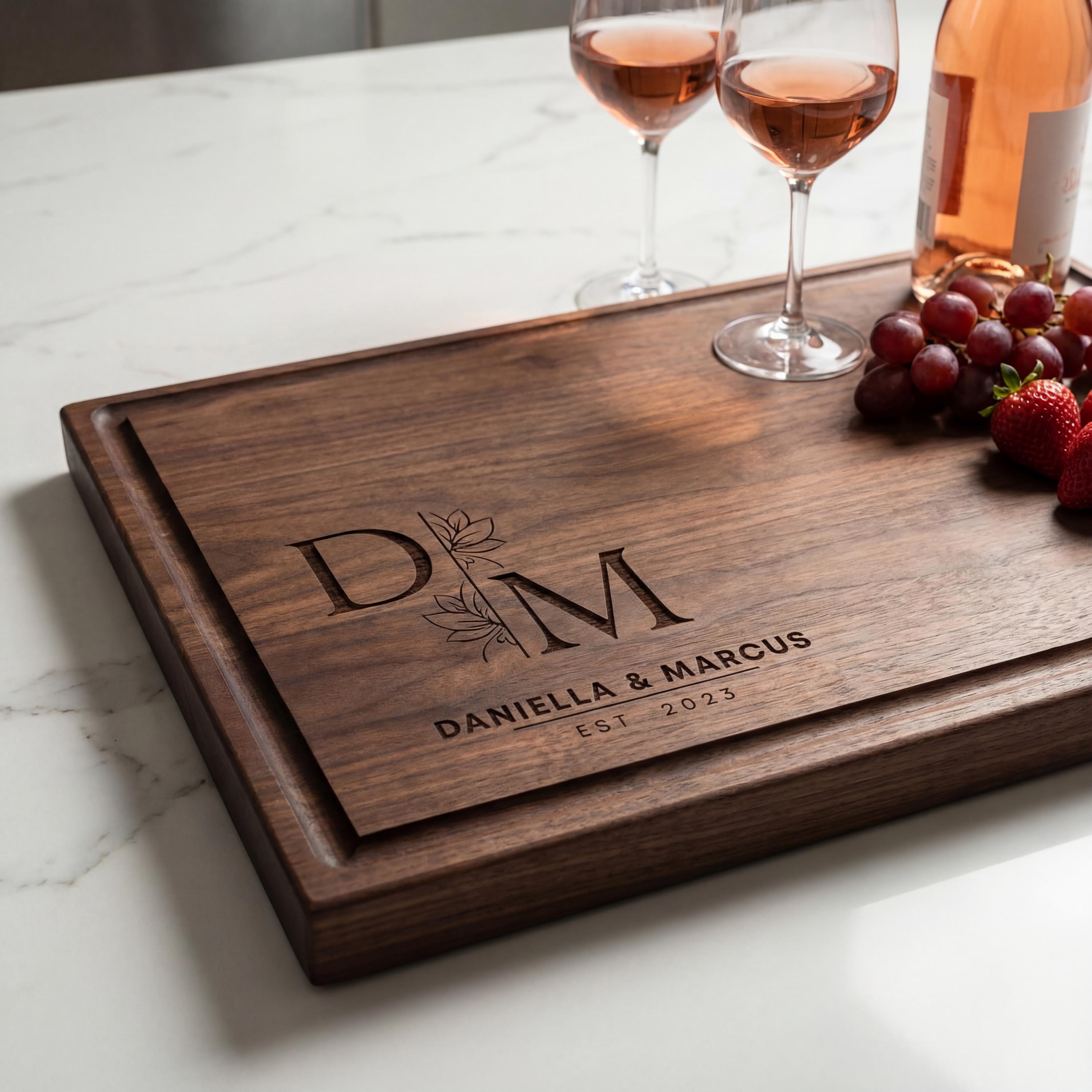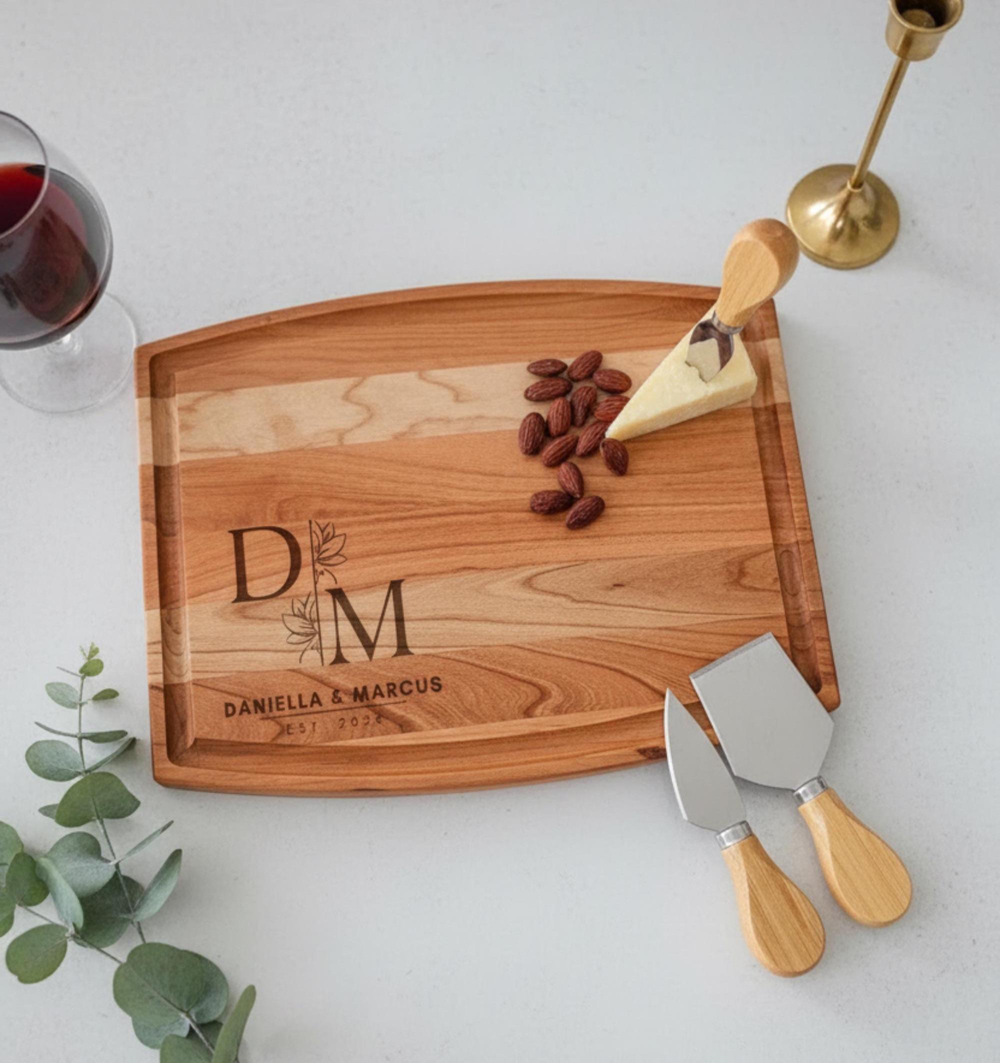 Celebrate love and new milestones with our Personalized couples Cutting Board. Featuring elegant initials, a floral design, and a personalized engraving, this beautifully crafted board makes a meaningful gift for weddings, housewarmings, and realtor closing gifts.