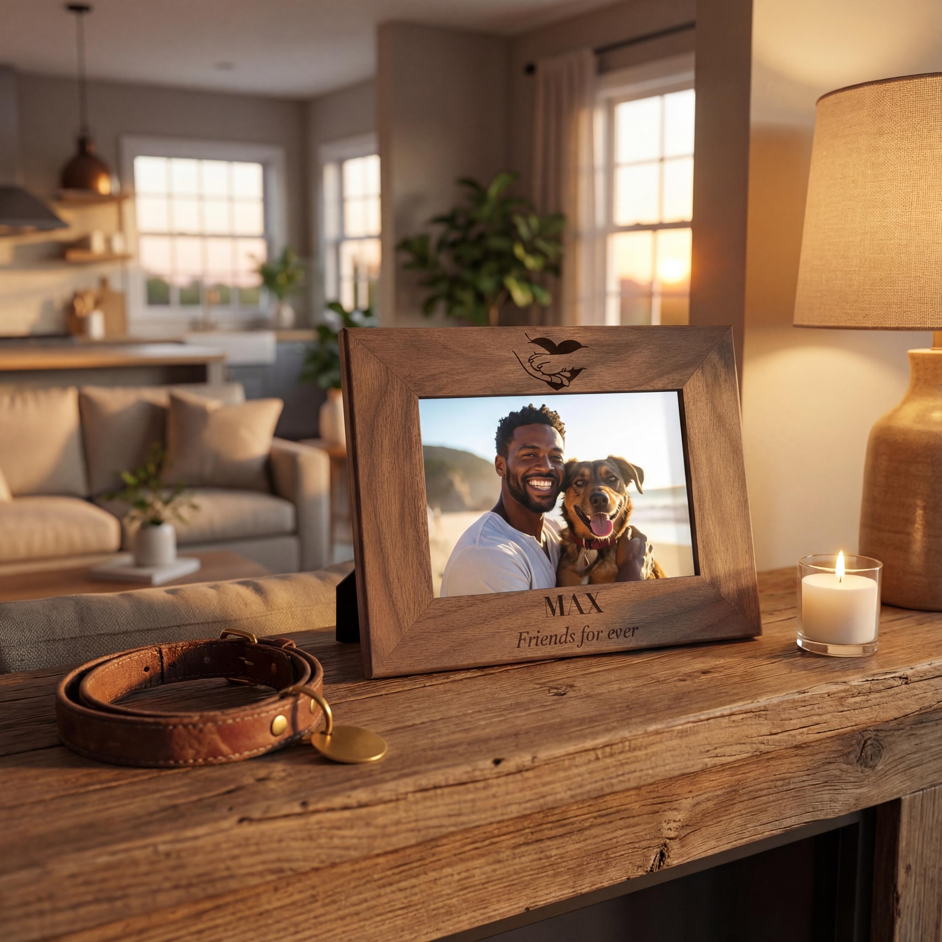 These personalized wooden frames are designed to celebrate every milestone in life. Handcrafted with care, they provide a unique way to display your cherished memories. Whether you're marking a graduation, anniversary, housewarming, Father's Day, Mother's Day, welcoming a newborn, celebrating a baptism, or paying tribute to a beloved pet, these frames serve as a timeless keepsake.