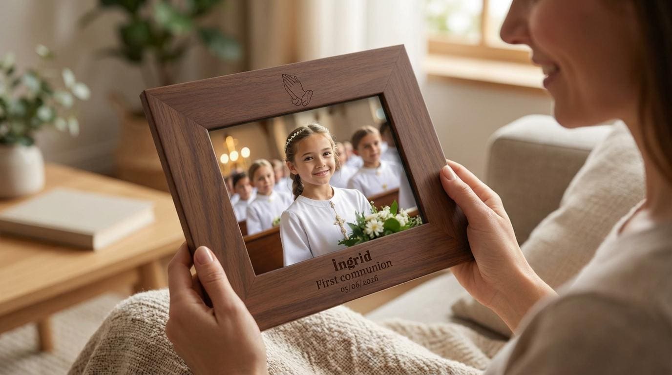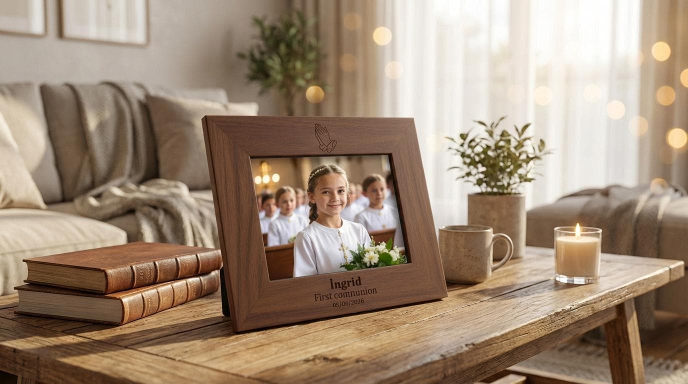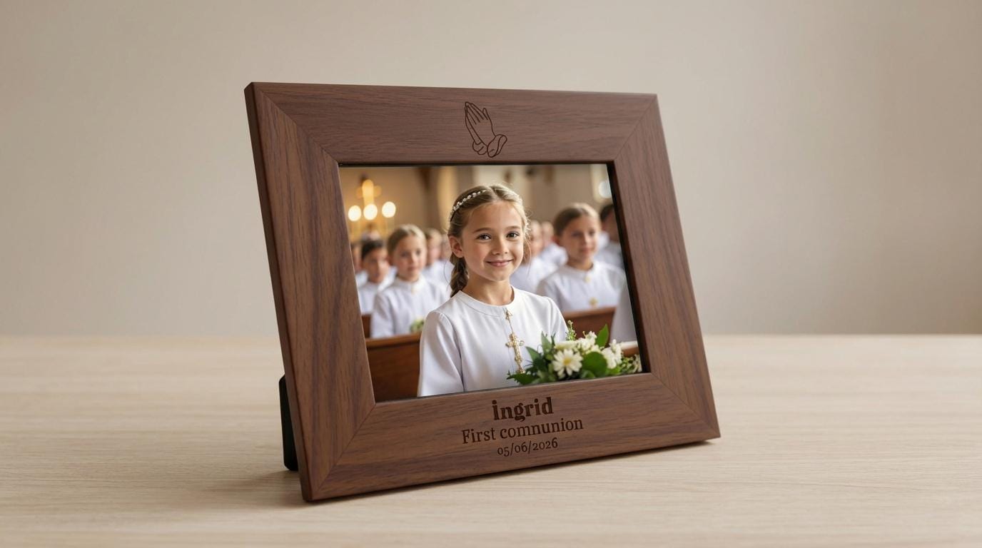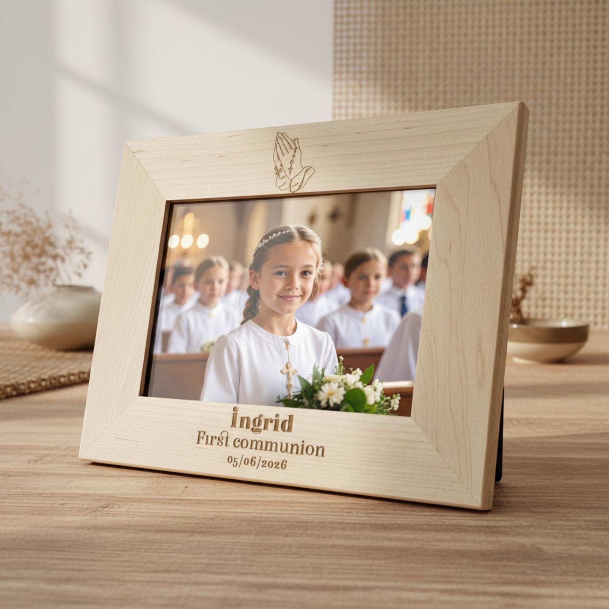 Personalized First Communion Picture Frame, Custom Engraved Wooden Photo Frame, Religious Gift for Boy or Girl, Godchild Keepsake