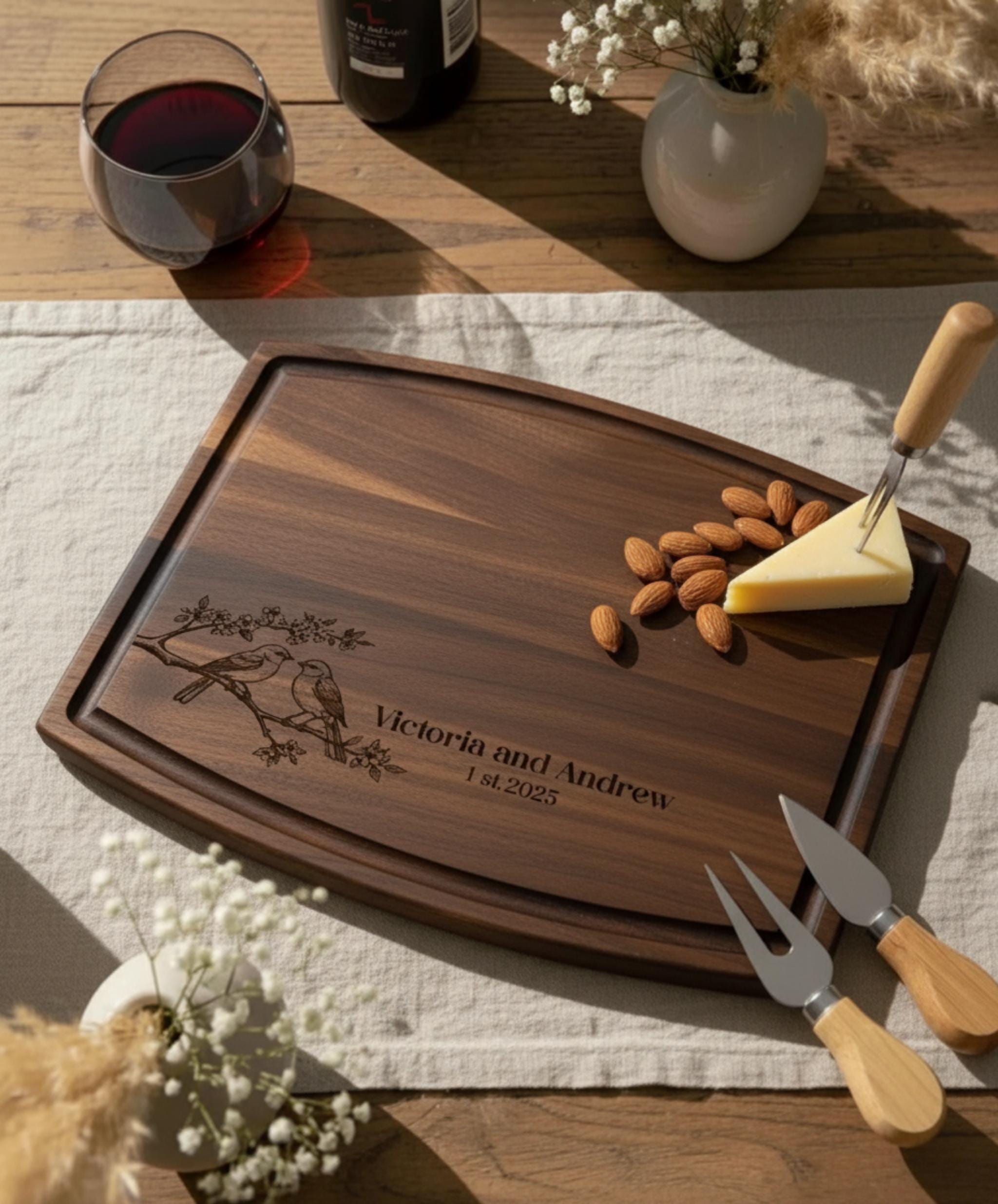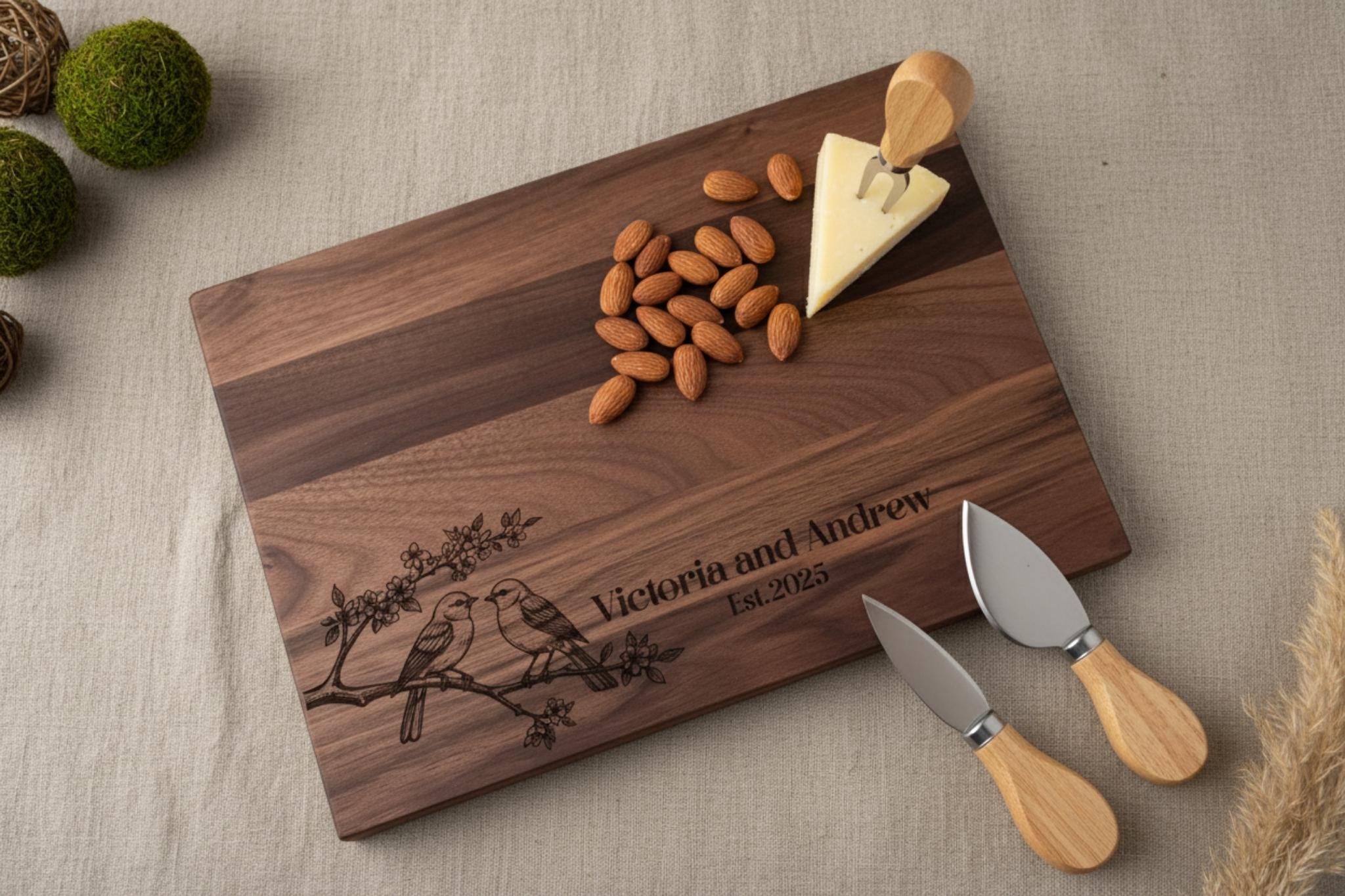 Personalized Cutting Board – Birds Theme: Customized Cutting Board, Housewarming, Wedding Gift, Birds Lover gift, Couples Gift, Hosting Gift