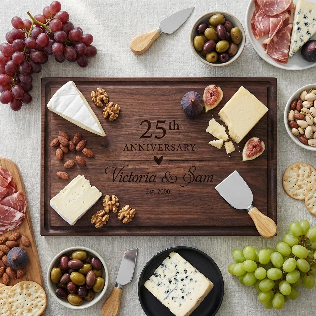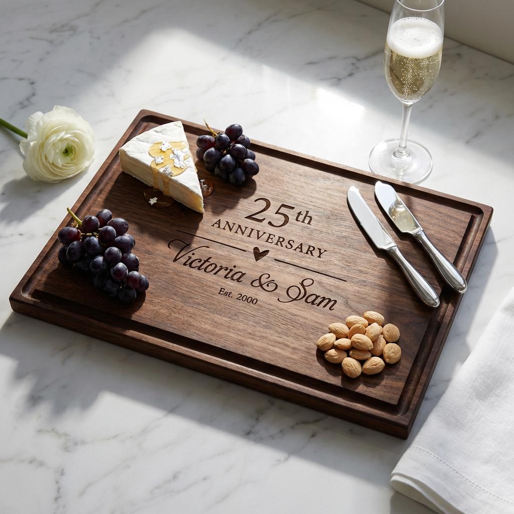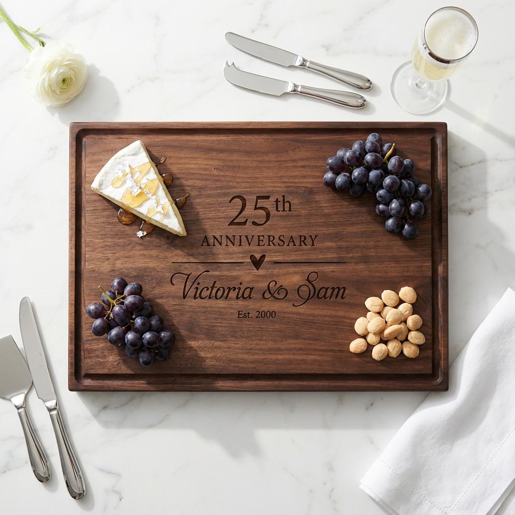 Personalized Cutting Board – 25th Anniversary Gift: Customized Cutting Board, Wedding Anniversary Charcuterie Board, Gift For Parents