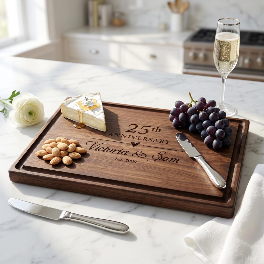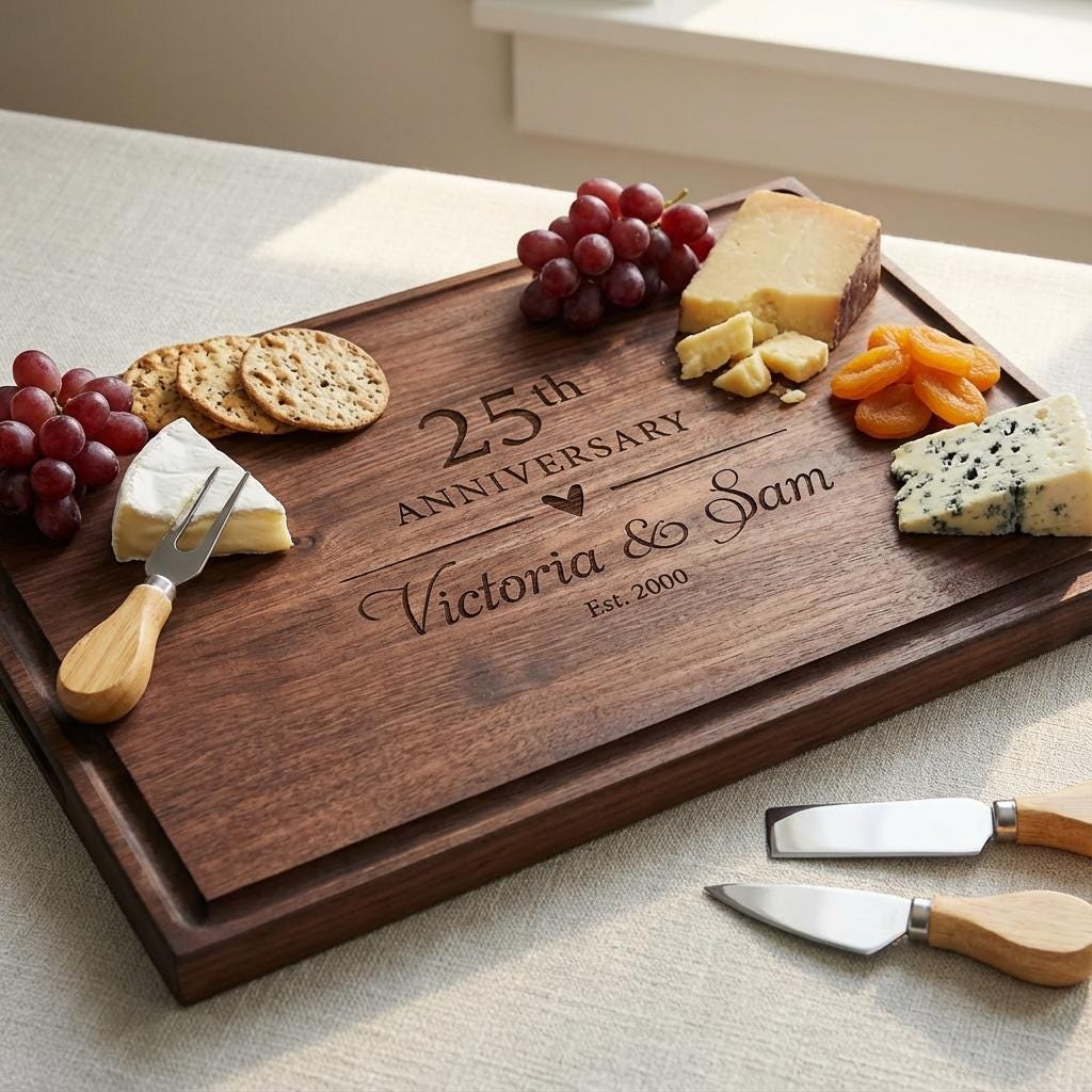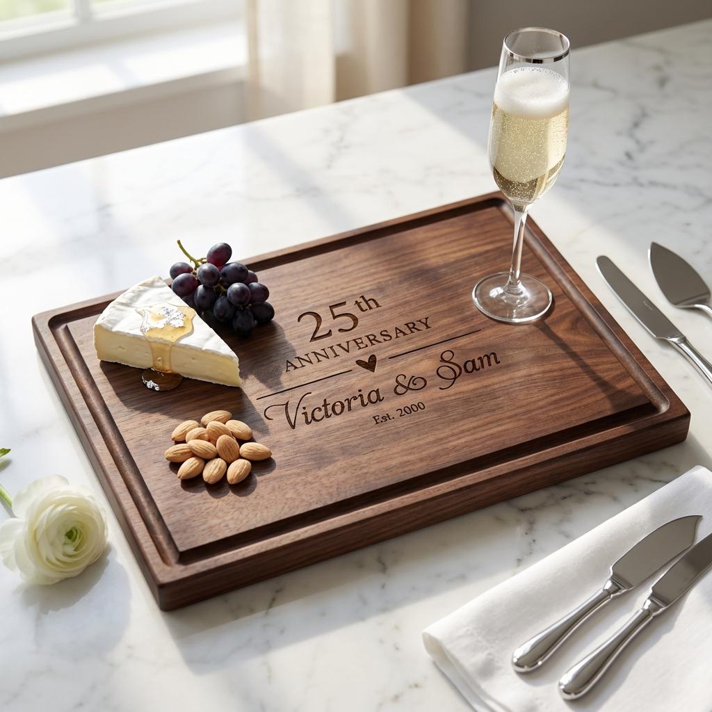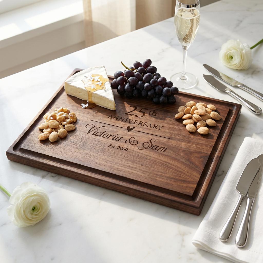 Personalized Cutting Board – 25th Anniversary Gift: Customized Cutting Board, Wedding Anniversary Charcuterie Board, Gift For Parents