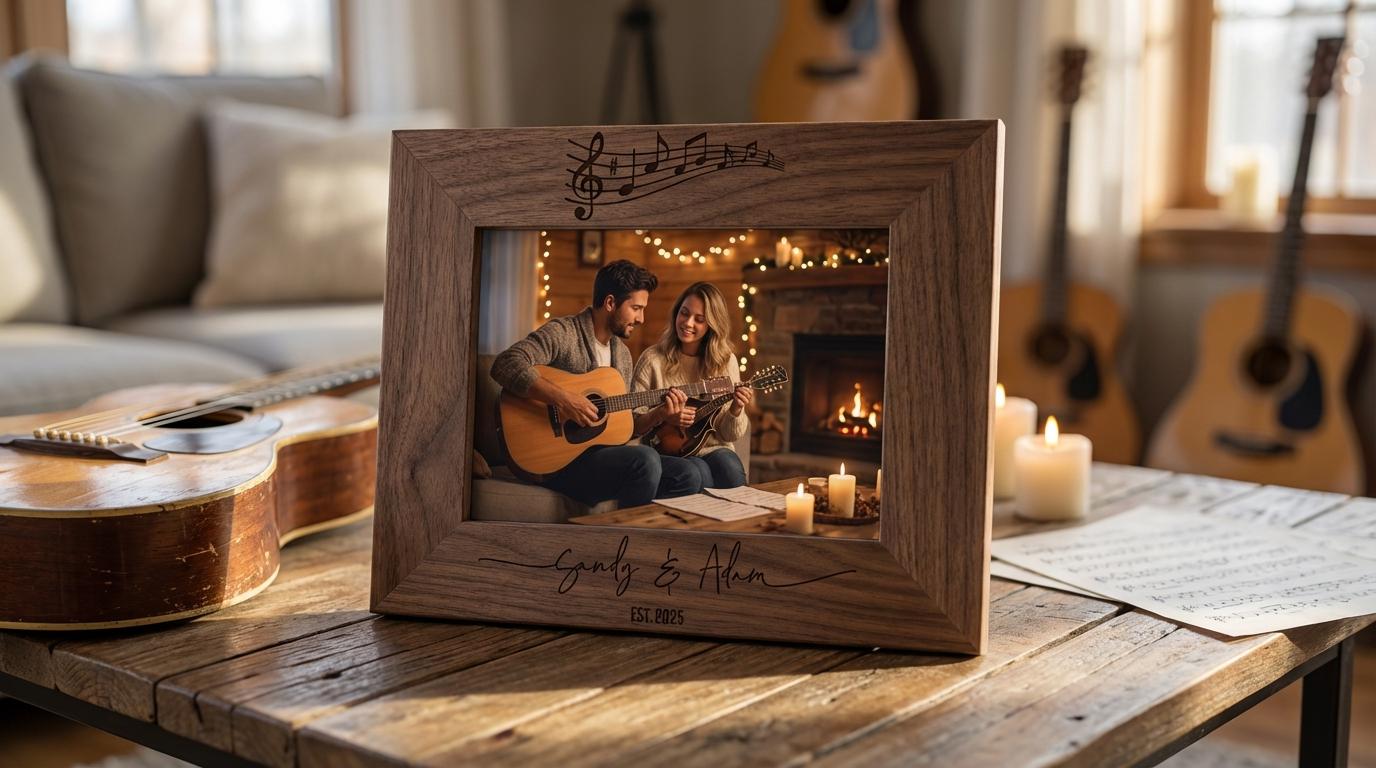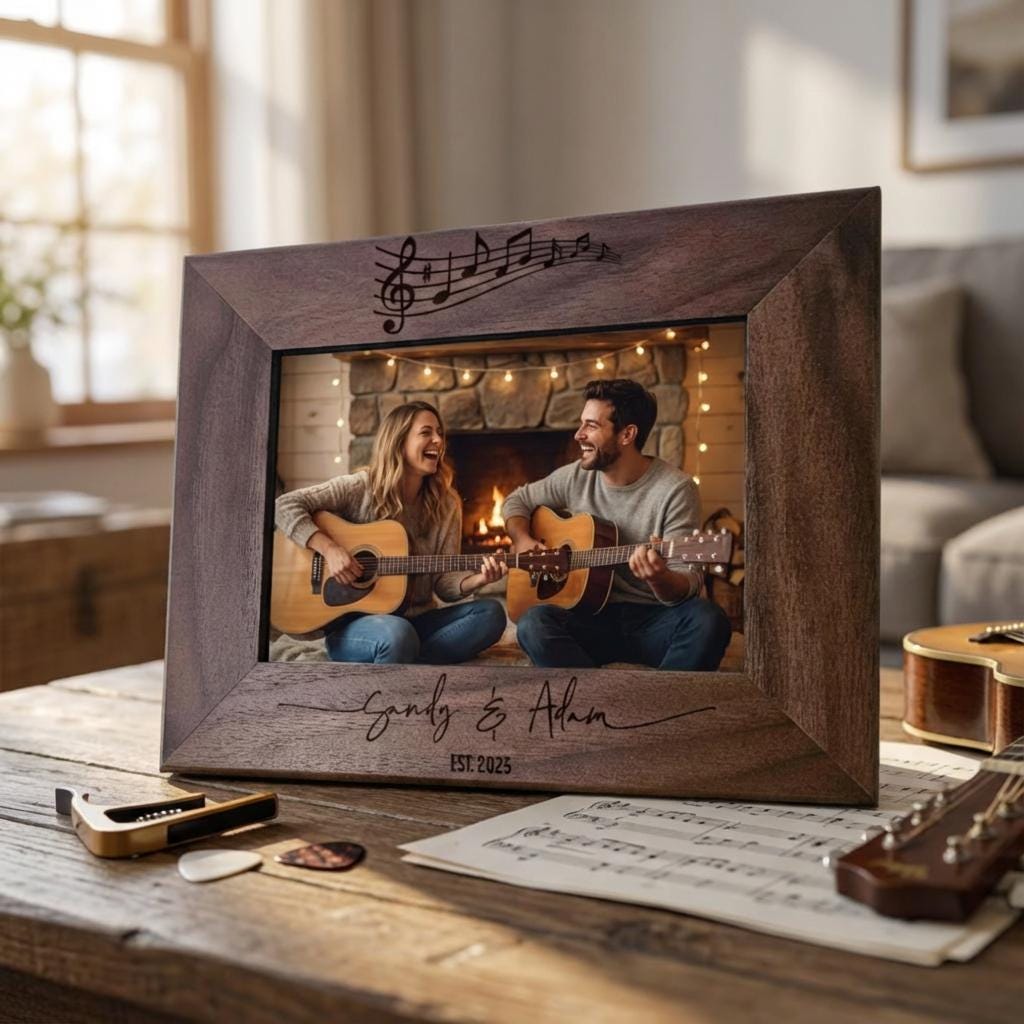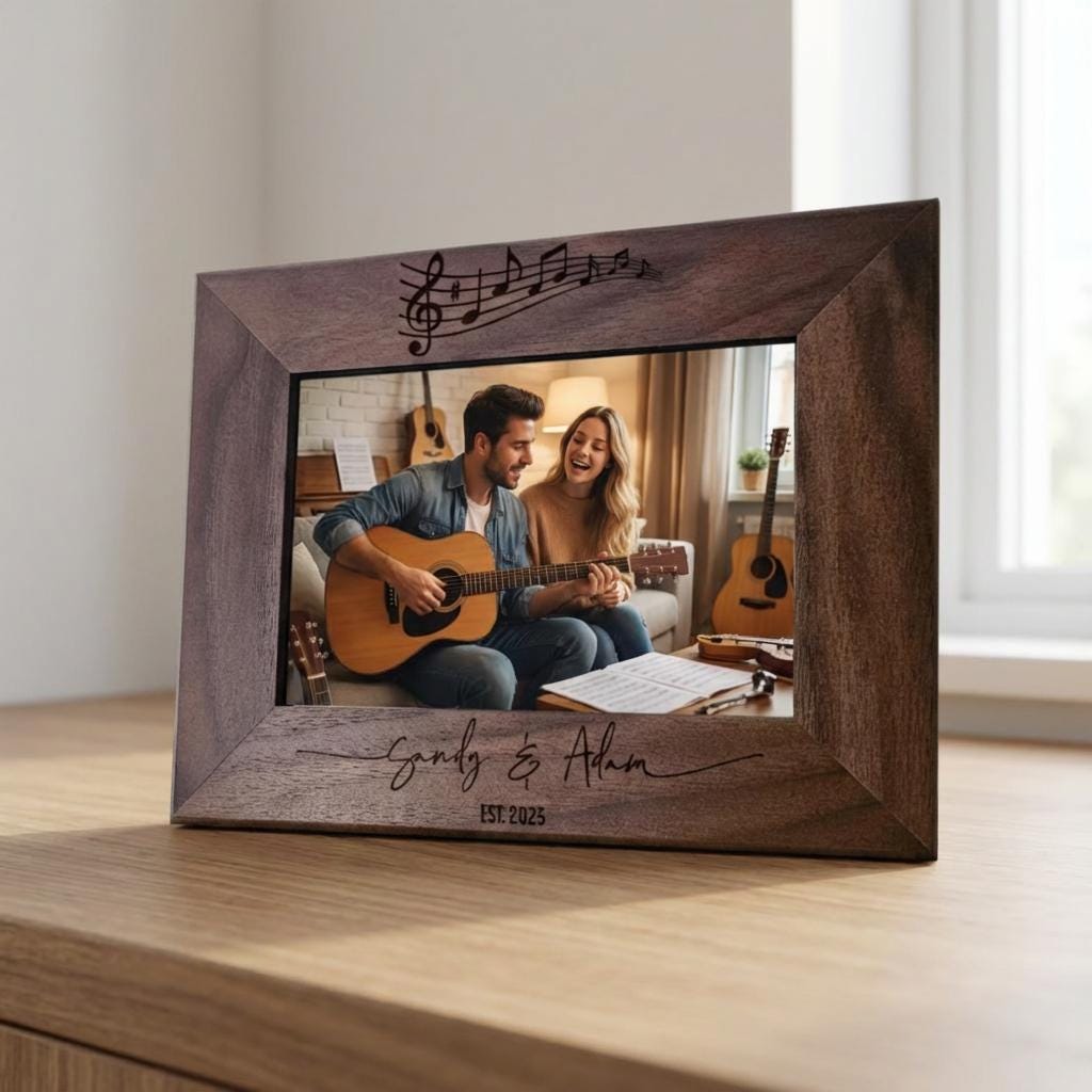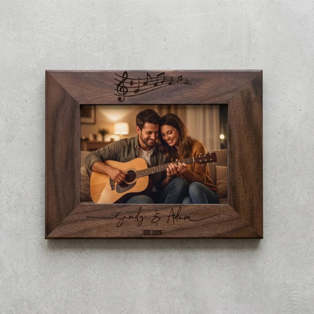 Personalized Music Note Picture Frame, Custom Wooden Photo Frame, Musician Gift, Couples Keepsake, Wedding Gift for Music Lovers