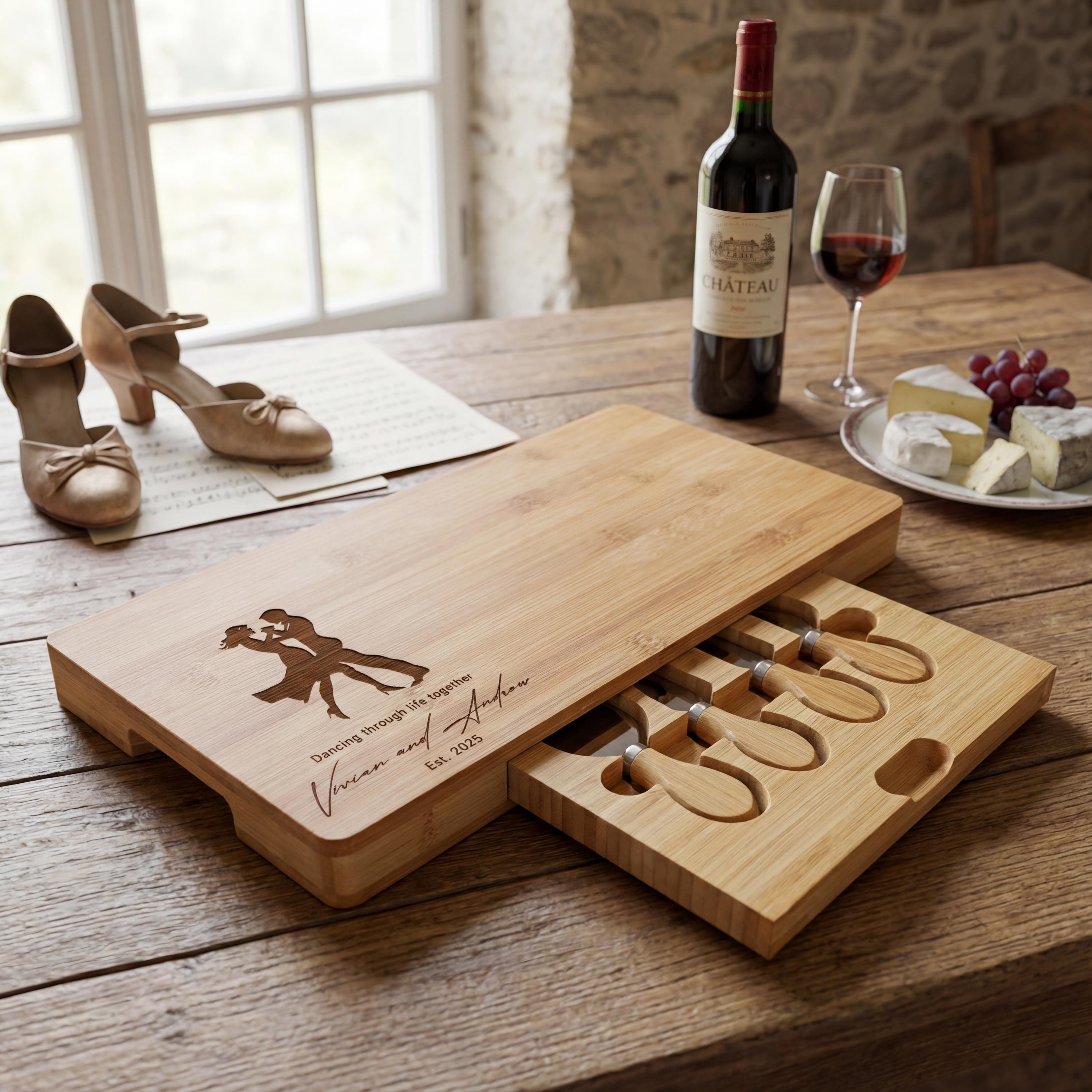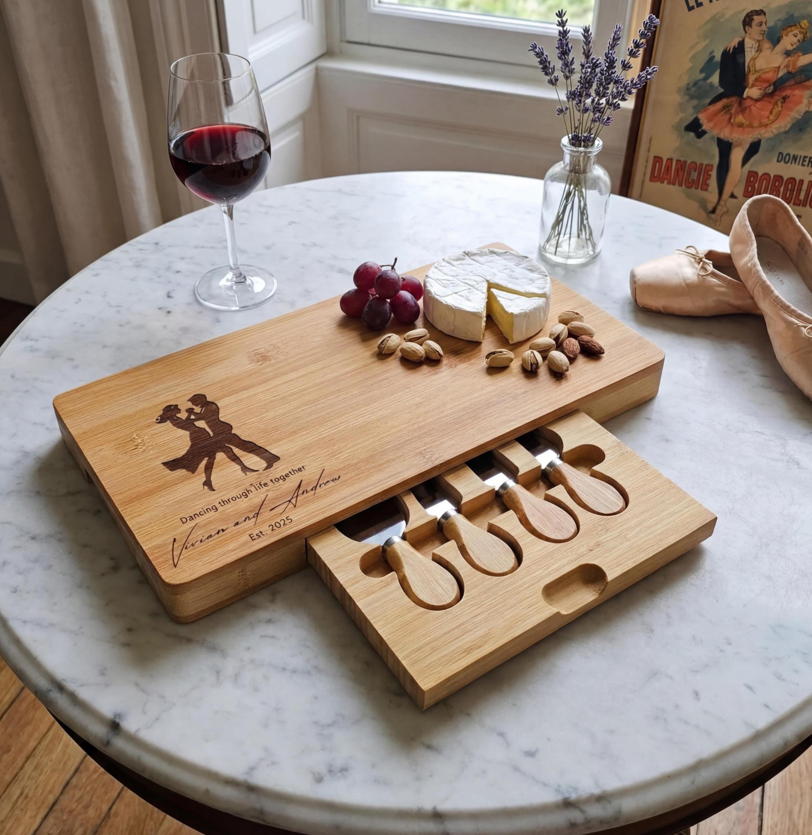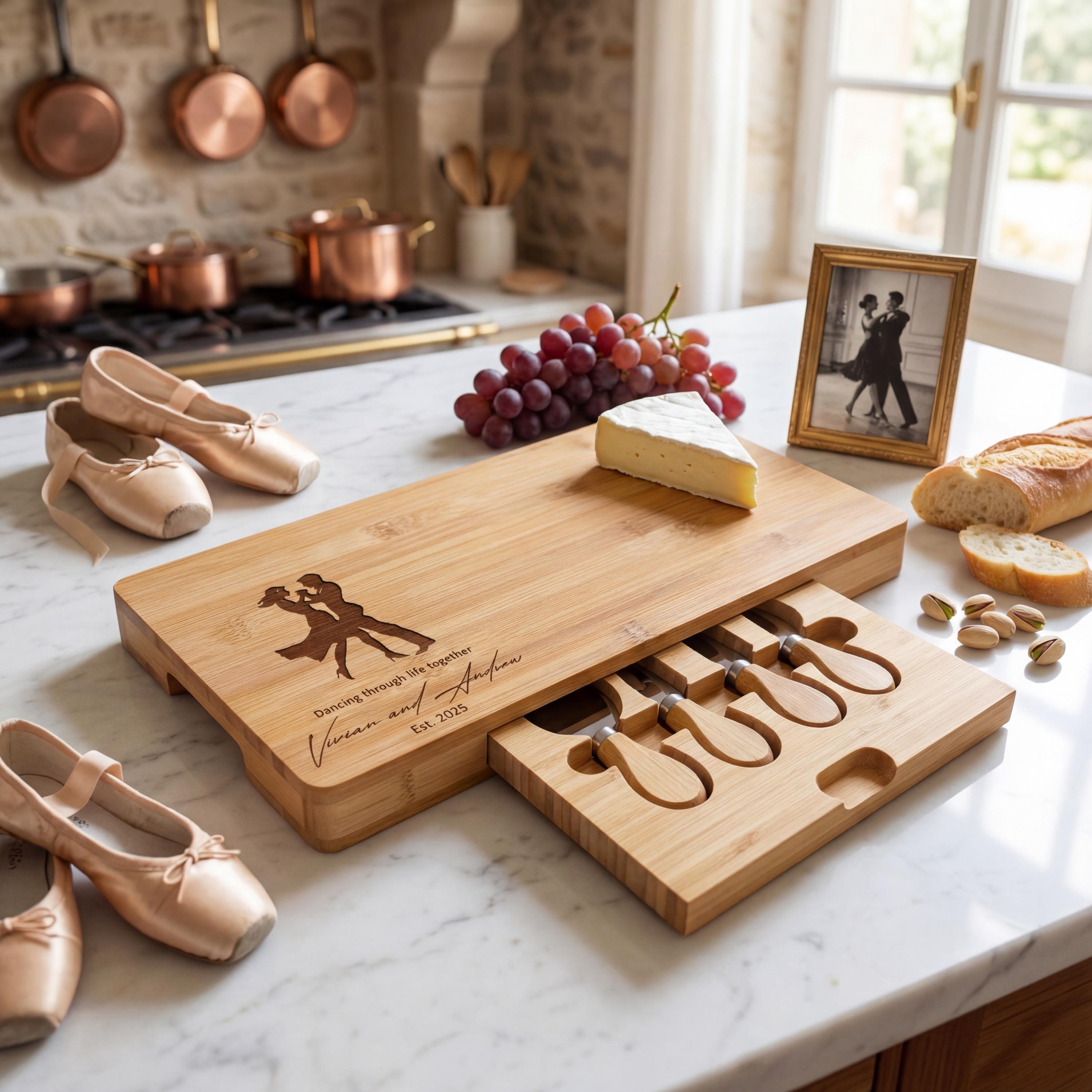 Personalized Dancing Couple Charcuterie Board: Engraved Bamboo Cheese Board