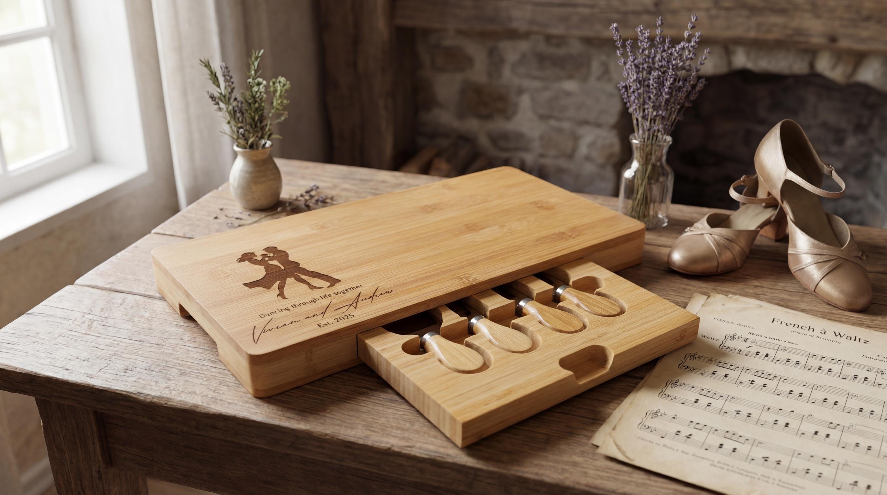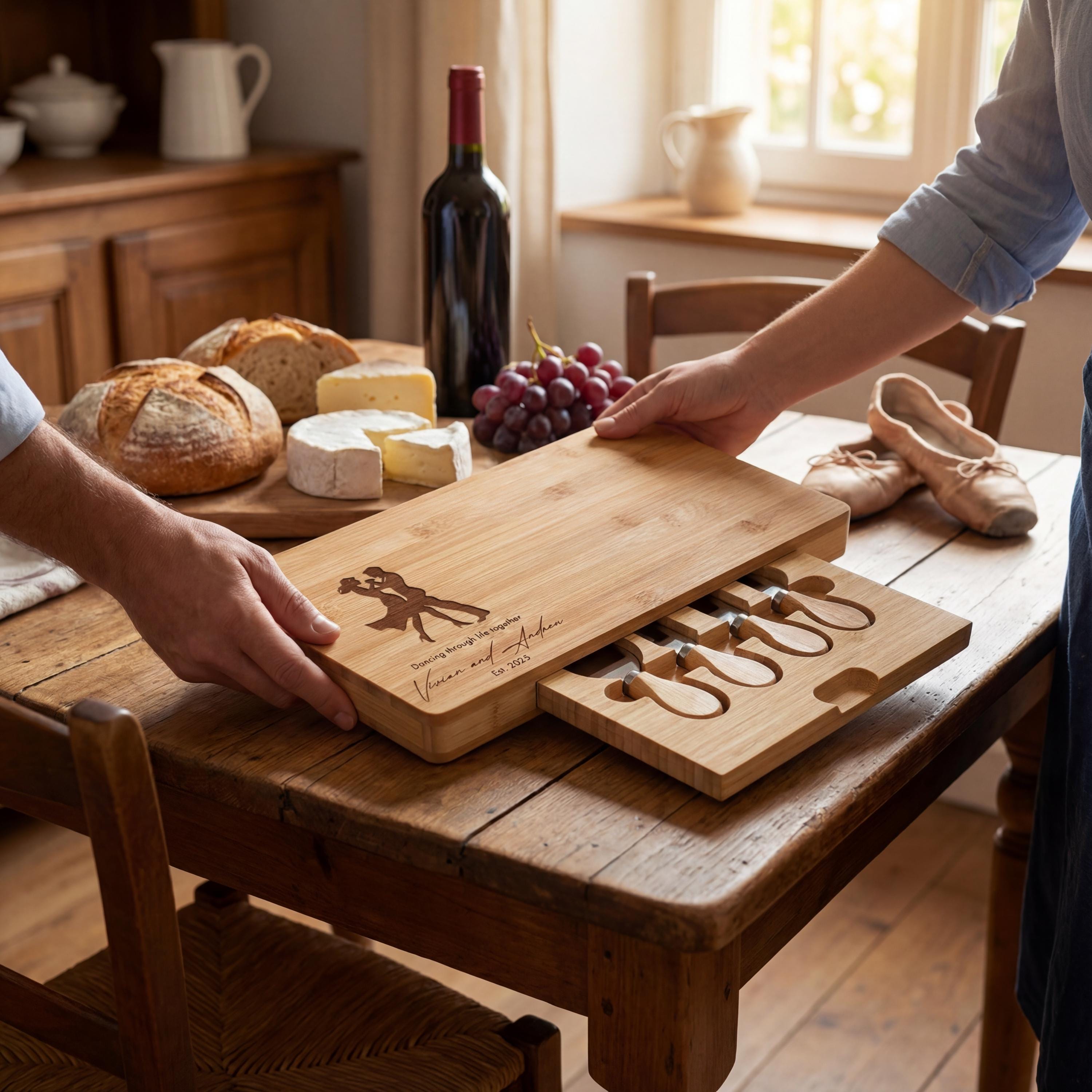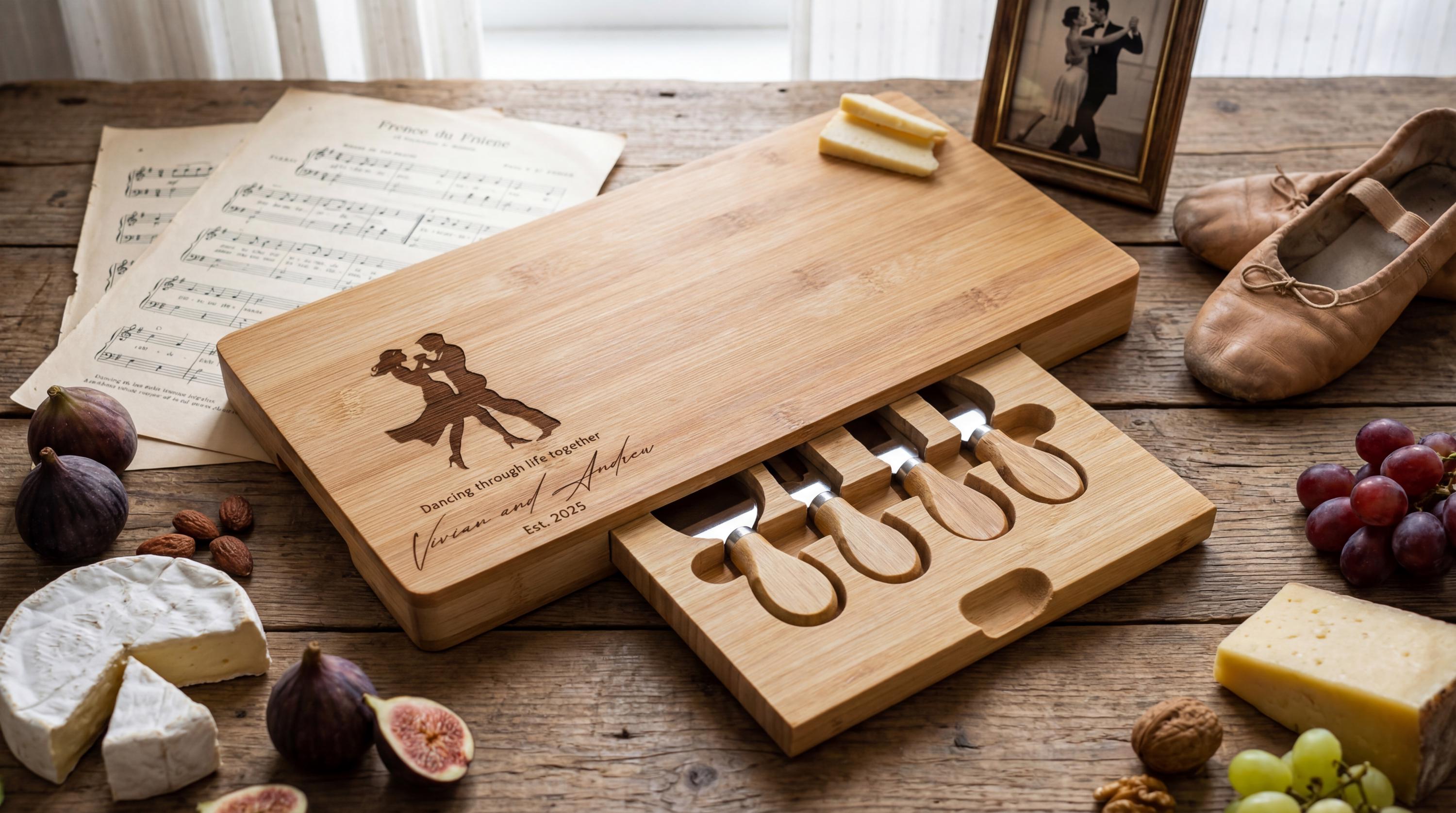 Personalized Dancing Couple Charcuterie Board: Engraved Bamboo Cheese Board