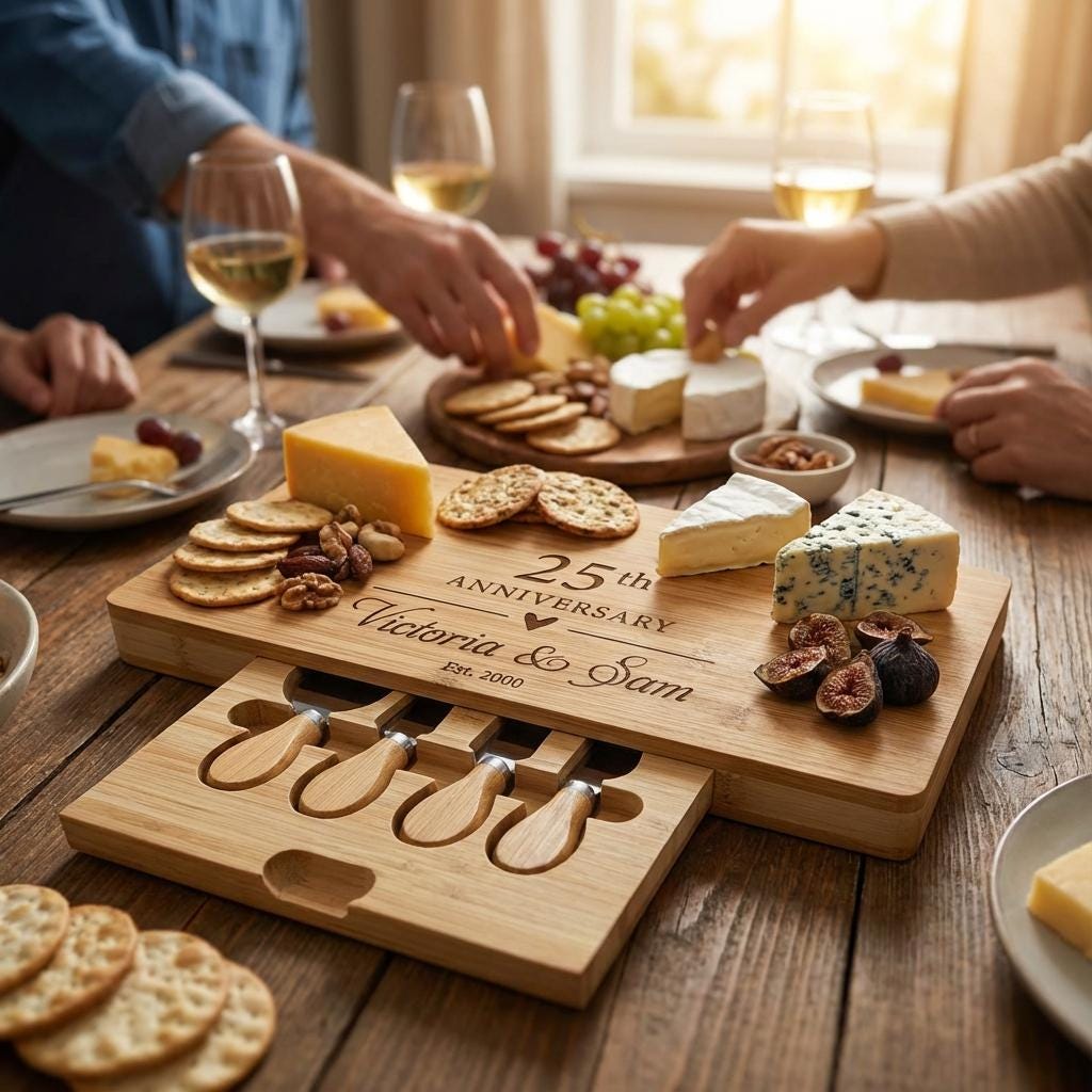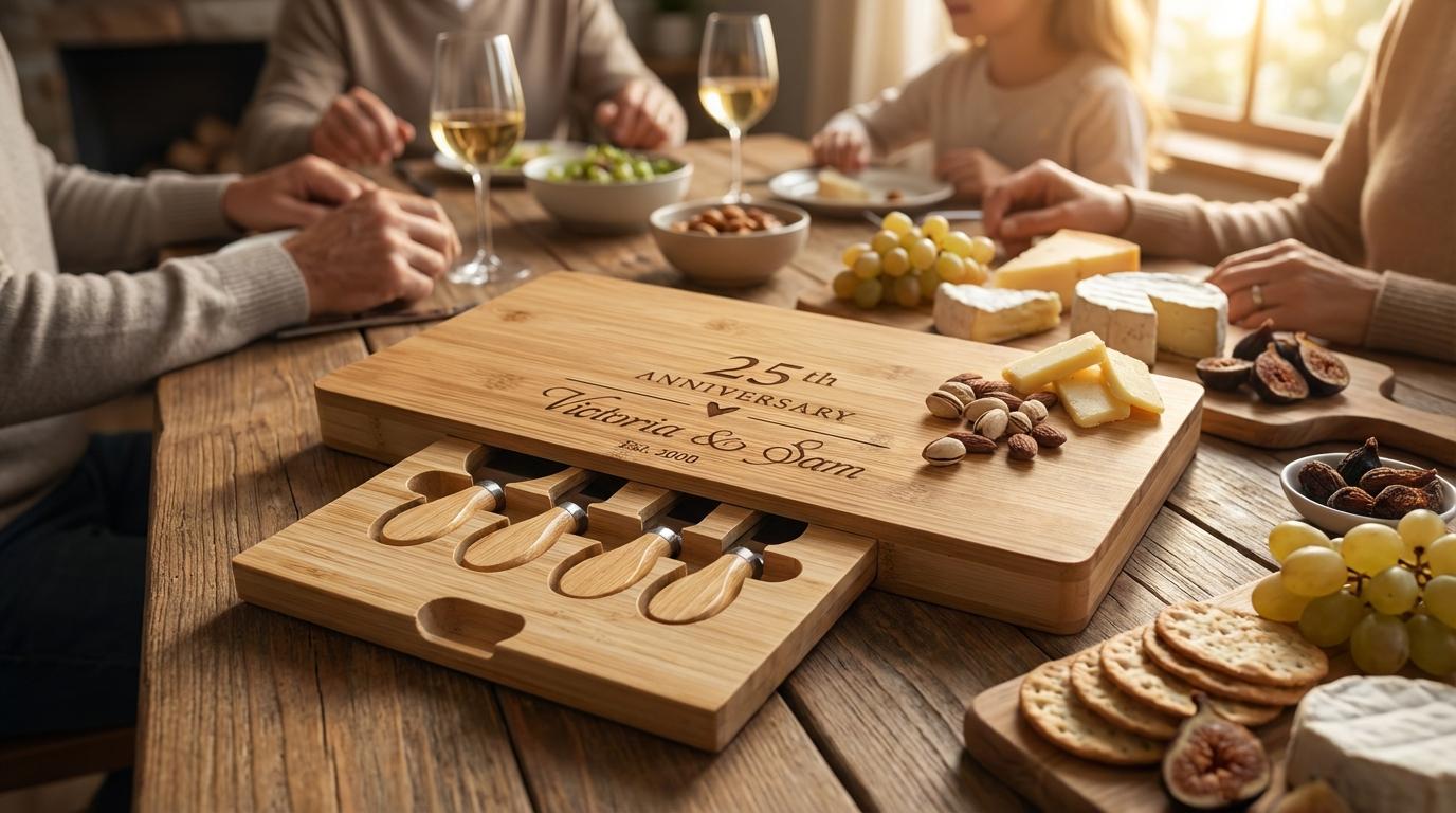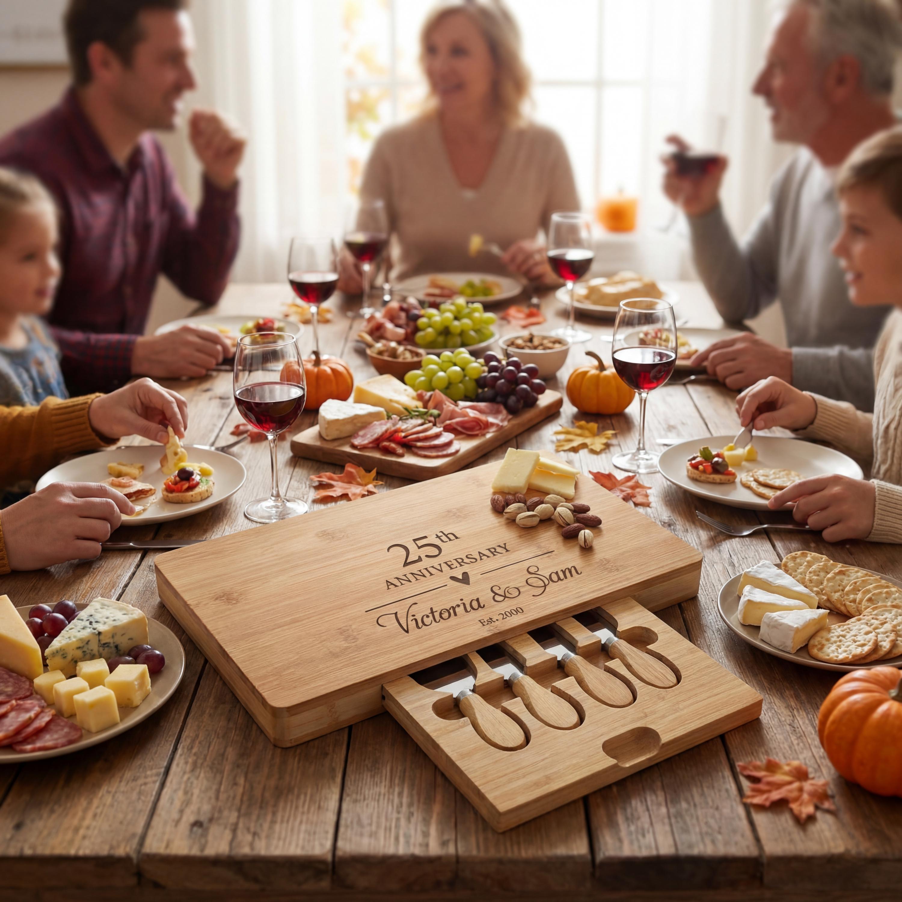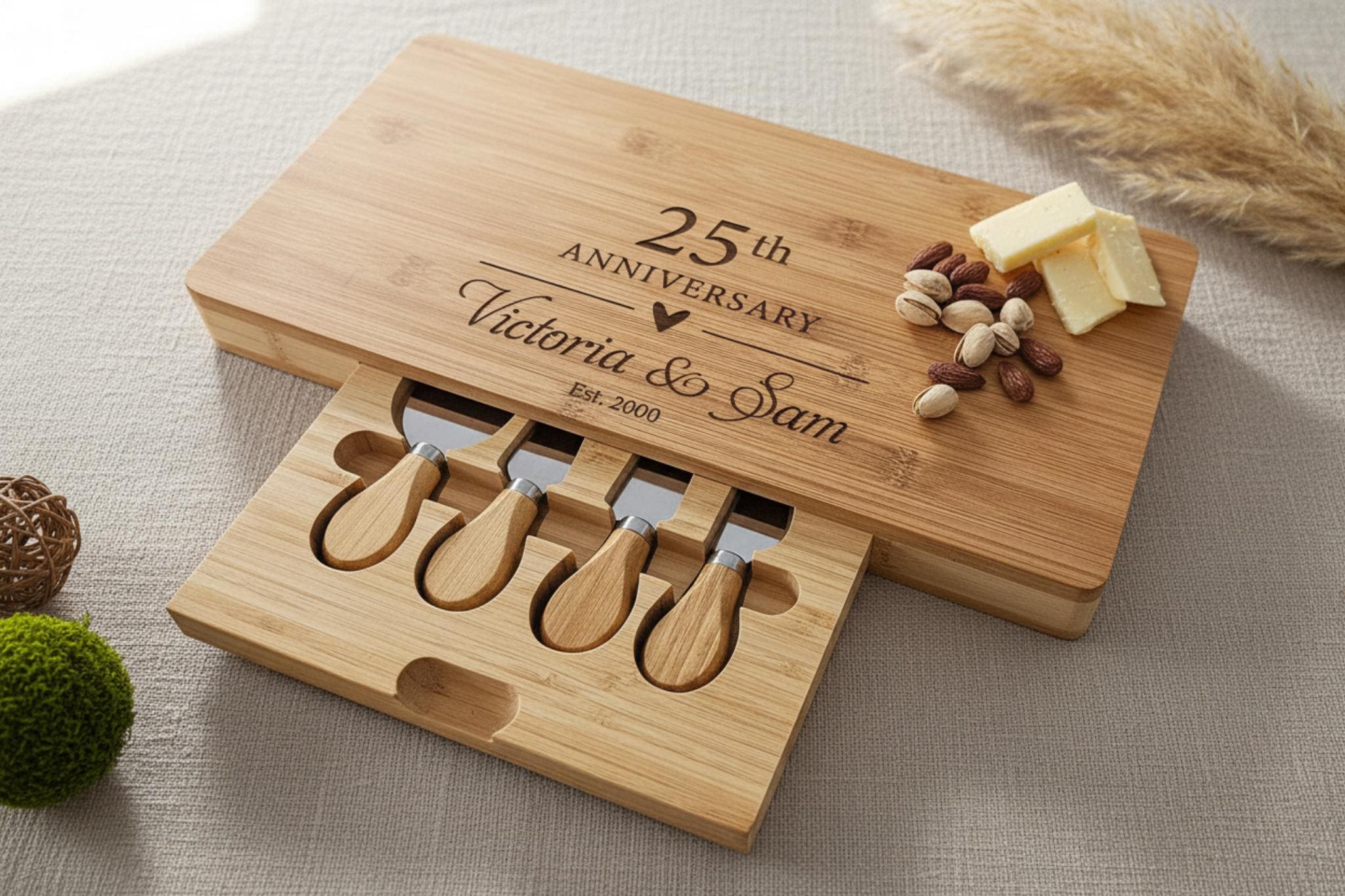 Personalized Charcuterie Board – 25th Wedding Anniversary: Custom Engraved Cheese Board, Gift for Parents, 25 Years Couple Gift