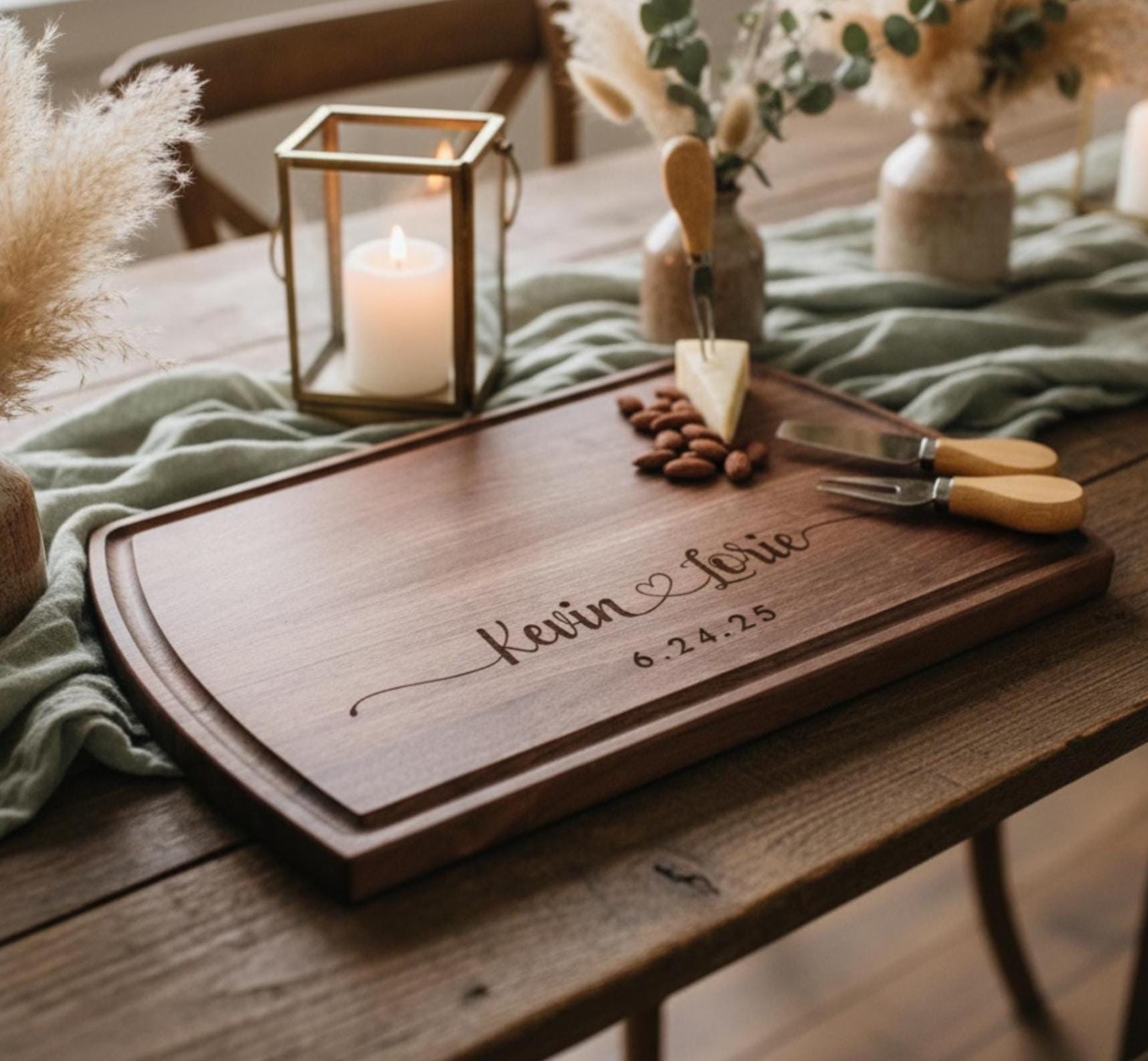 The Ultimate Couple’s Gift: Perfect for weddings, anniversaries, or even as a heartfelt gesture on a special date, this personalized cutting board makes an unforgettable gift. It’s a unique way to mark a milestone and celebrate a love that’s meant to last.