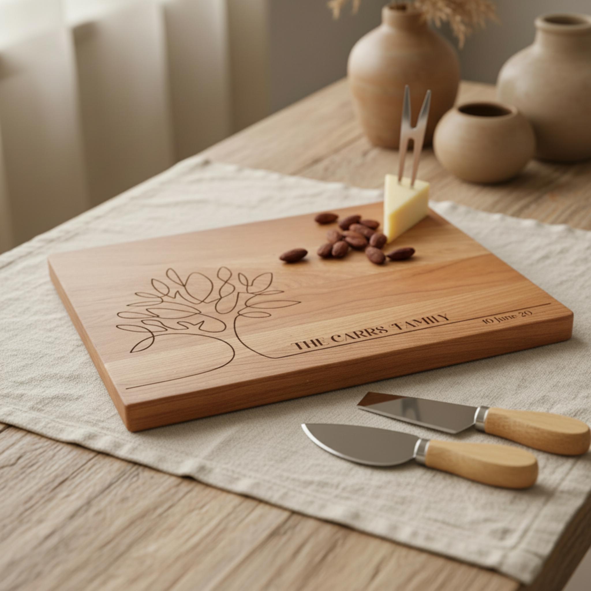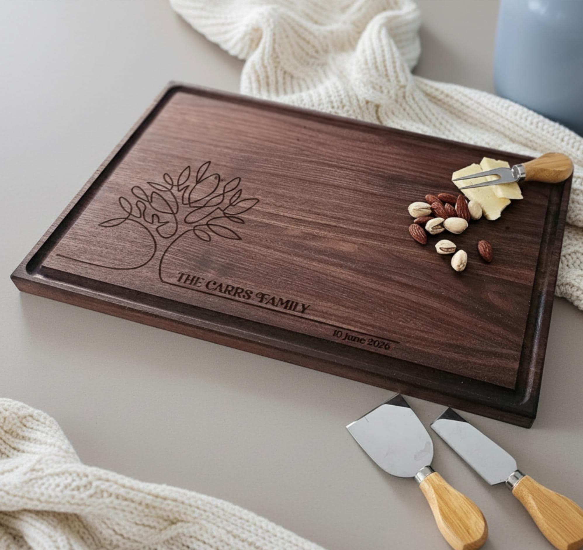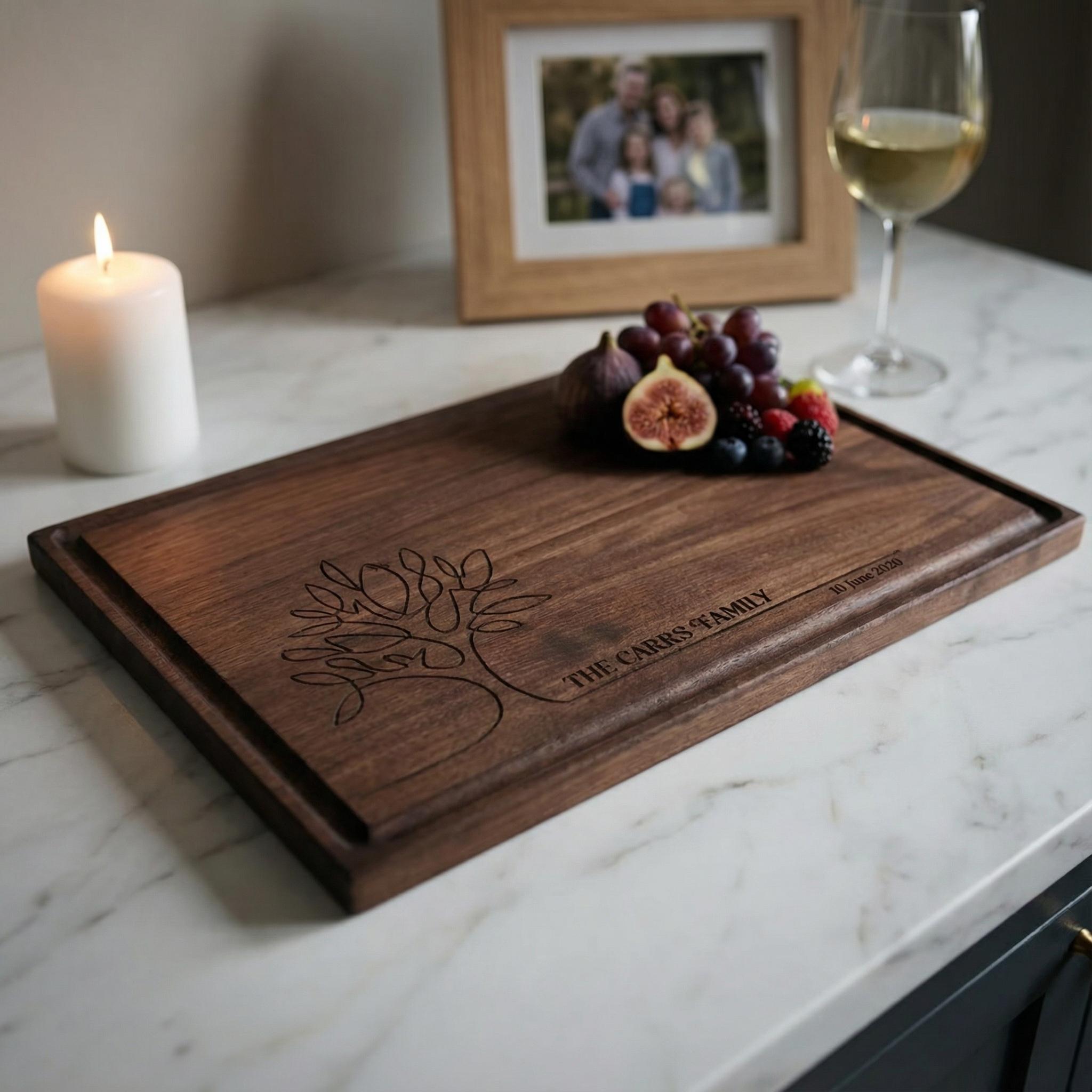 The family tree design and personalized engraving create a lasting memento, turning this customized board into a timeless family heirloom.