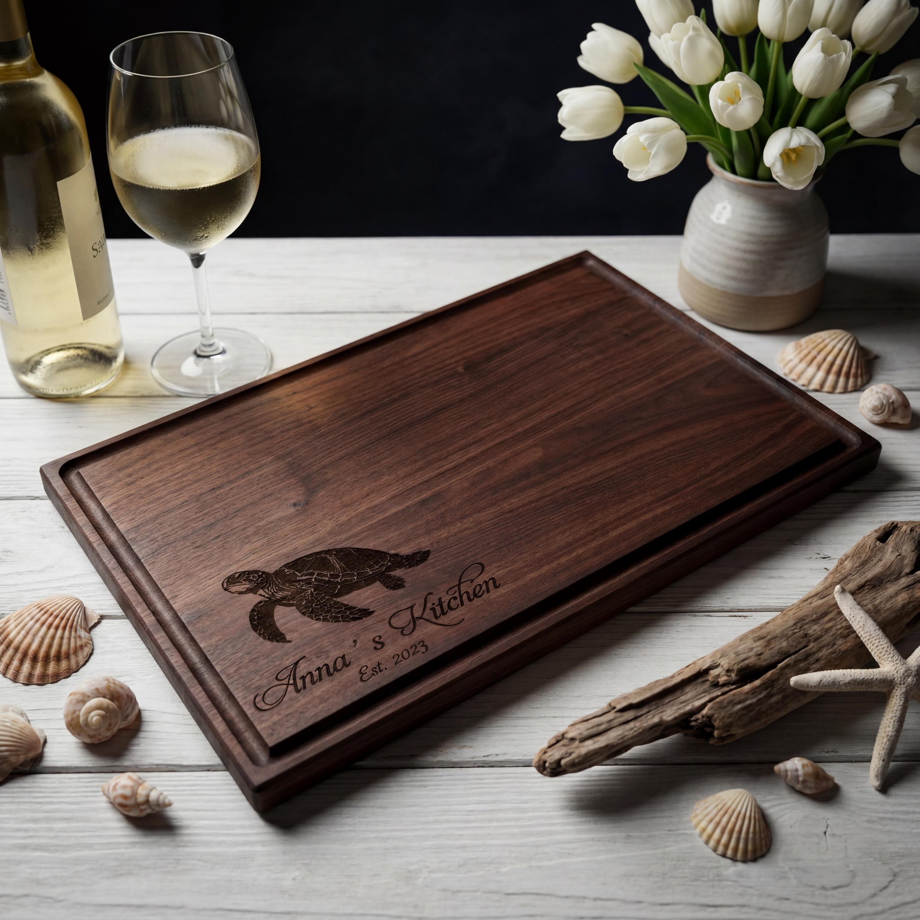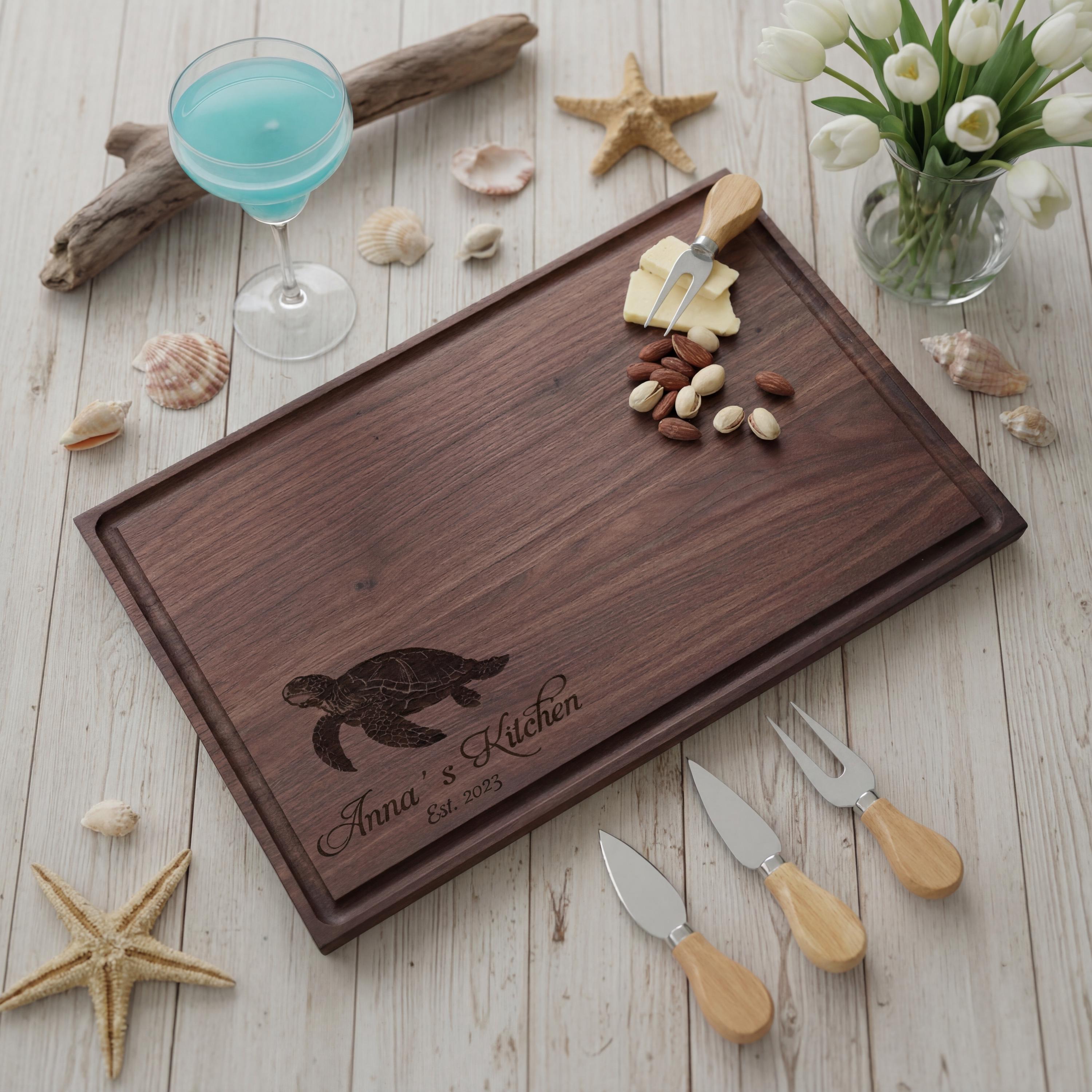 Personalized Coastal Cutting Board, Custom Engraved Charcuterie Board, Beach House Decor, Wedding Gift for Couple, Kitchen Gift
