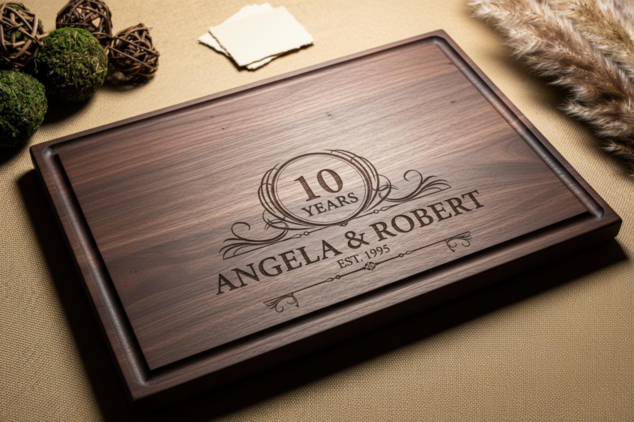 Personalized Cutting Board, 10 Years Anniversary: Custom Engraved Charcuterie Board, Couples Gift, Parent Gift, 10th Wedding Anniversary