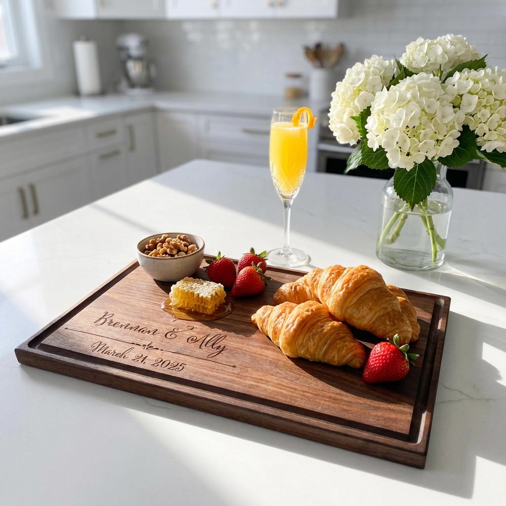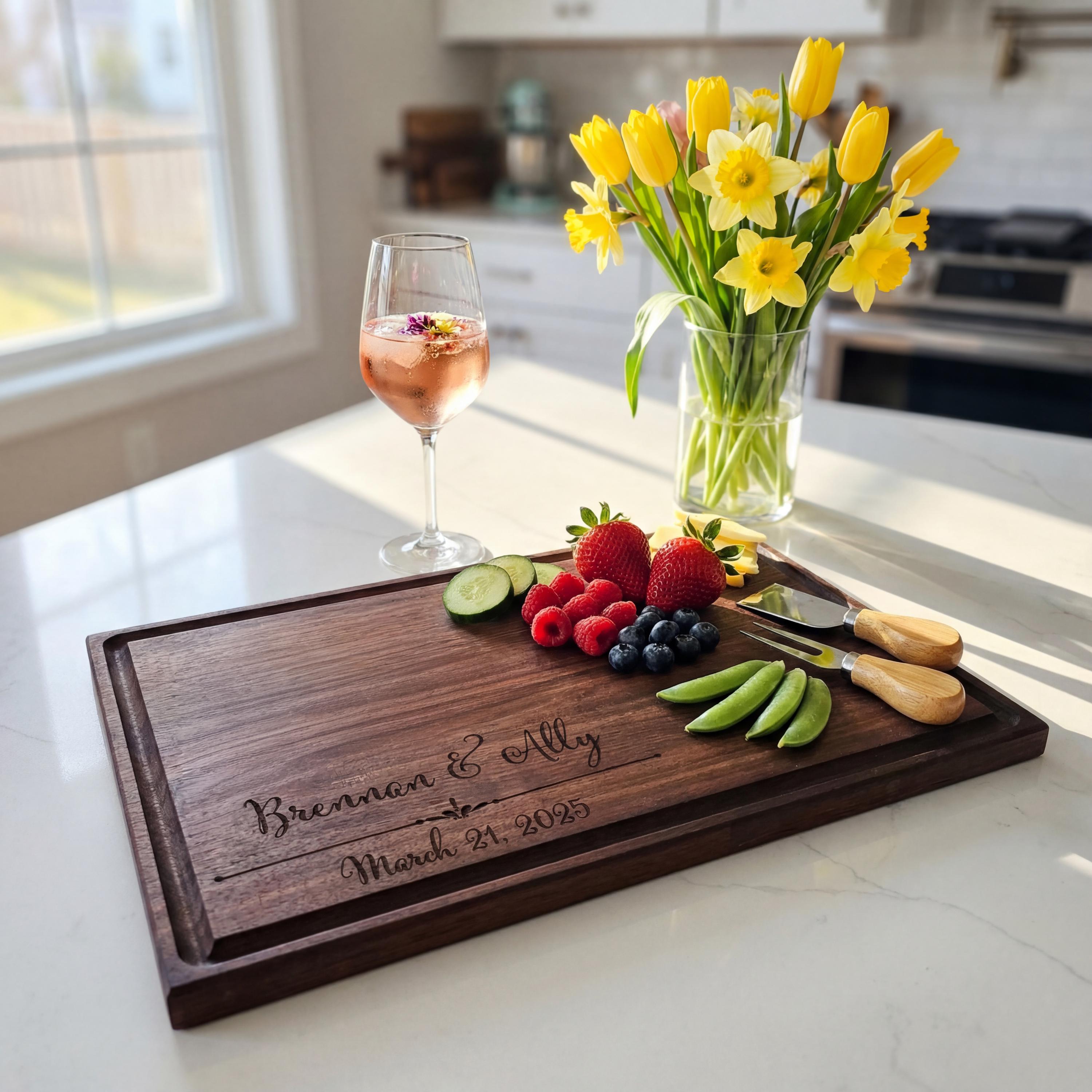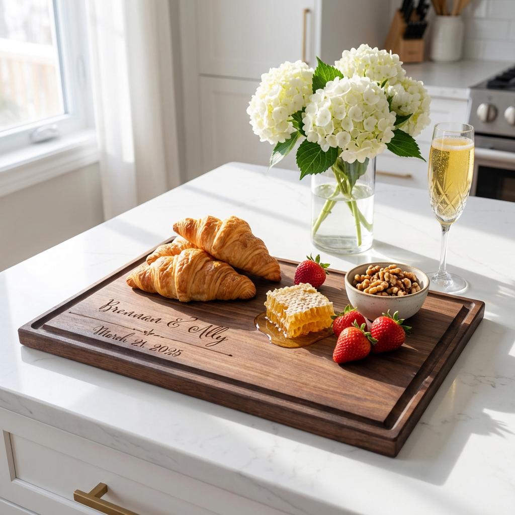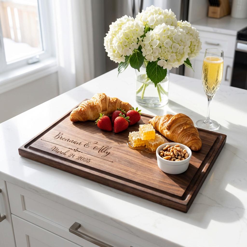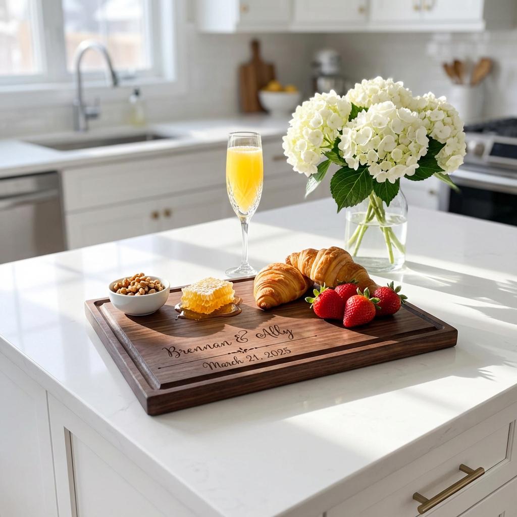 More than just a cutting tool—this engraved board doubles as a work of art for your kitchen, symbolizing new beginnings and love.