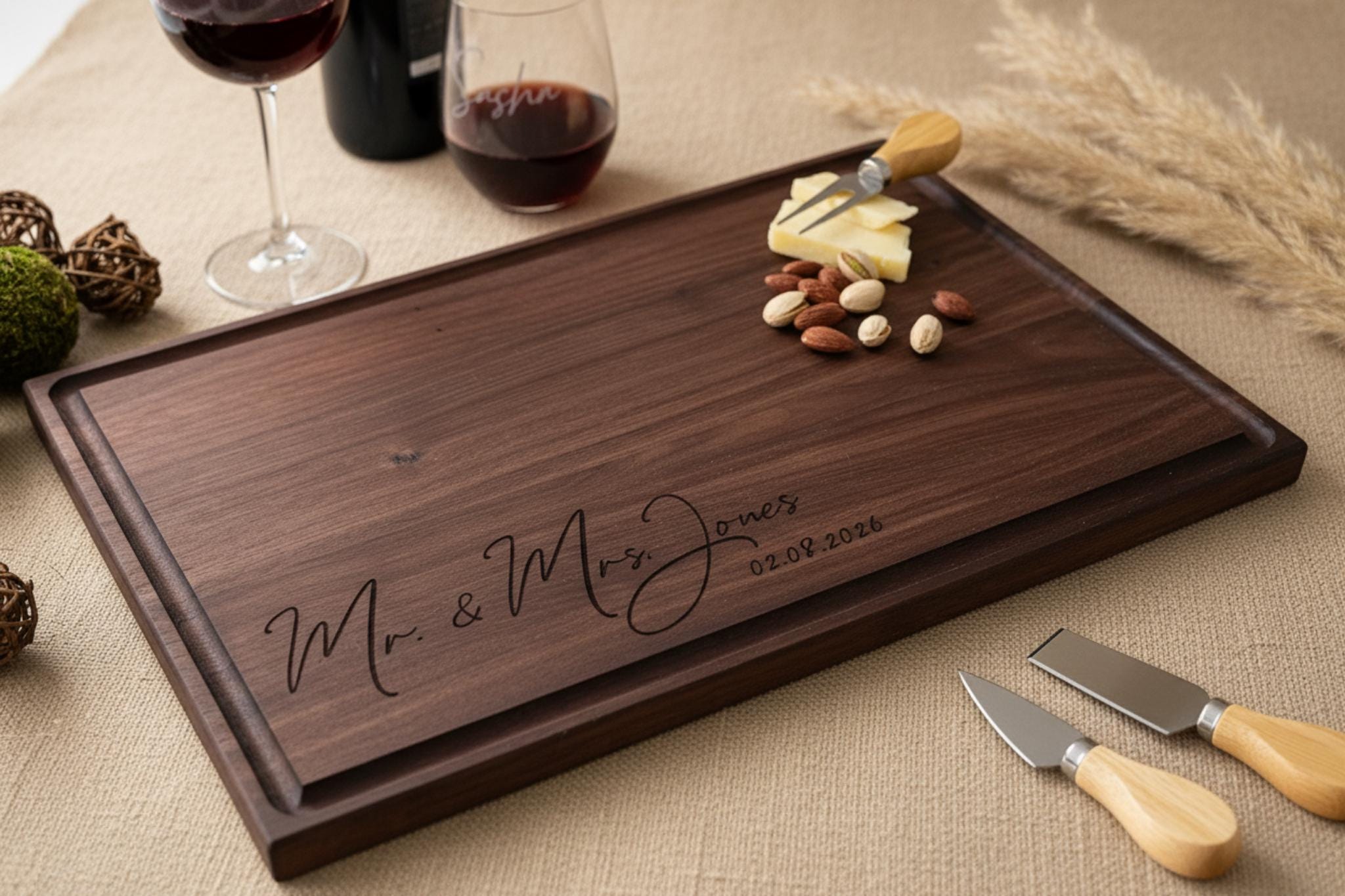 Personalized cutting board, Newlywed Gift: Custom Engraved Charcuterie Board, Housewarming Gift, Couples Gift, Wedding Gift, Christmas Gift