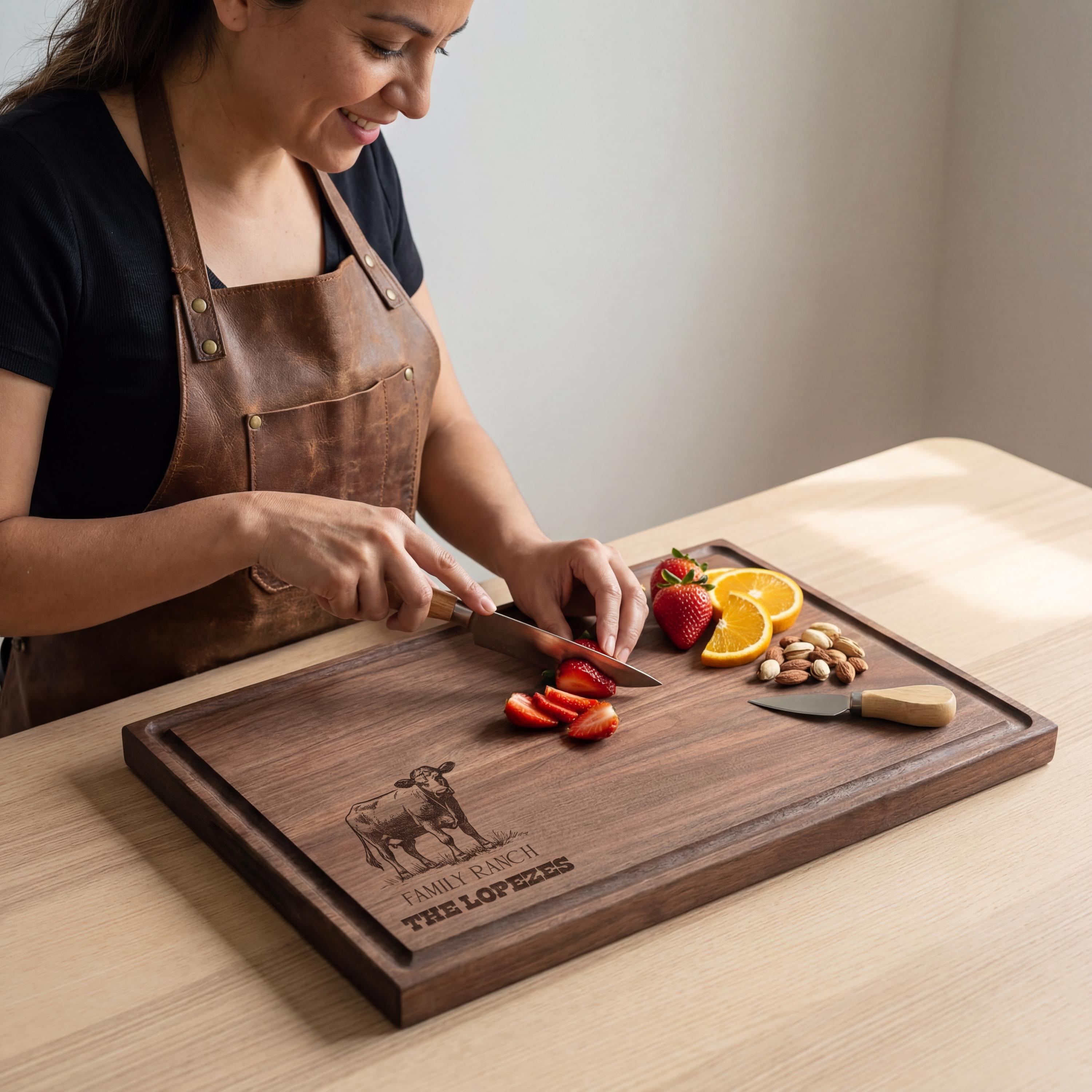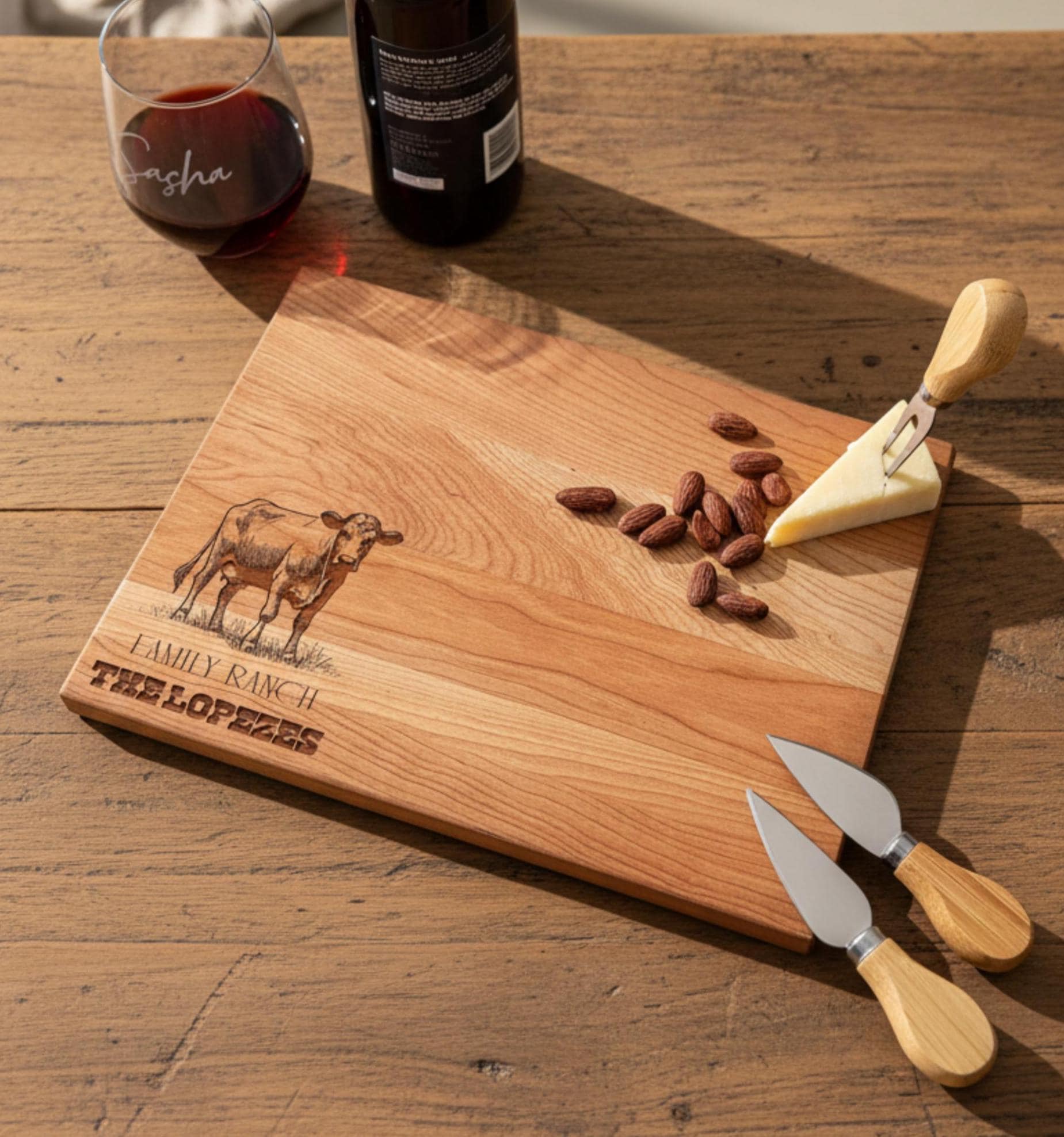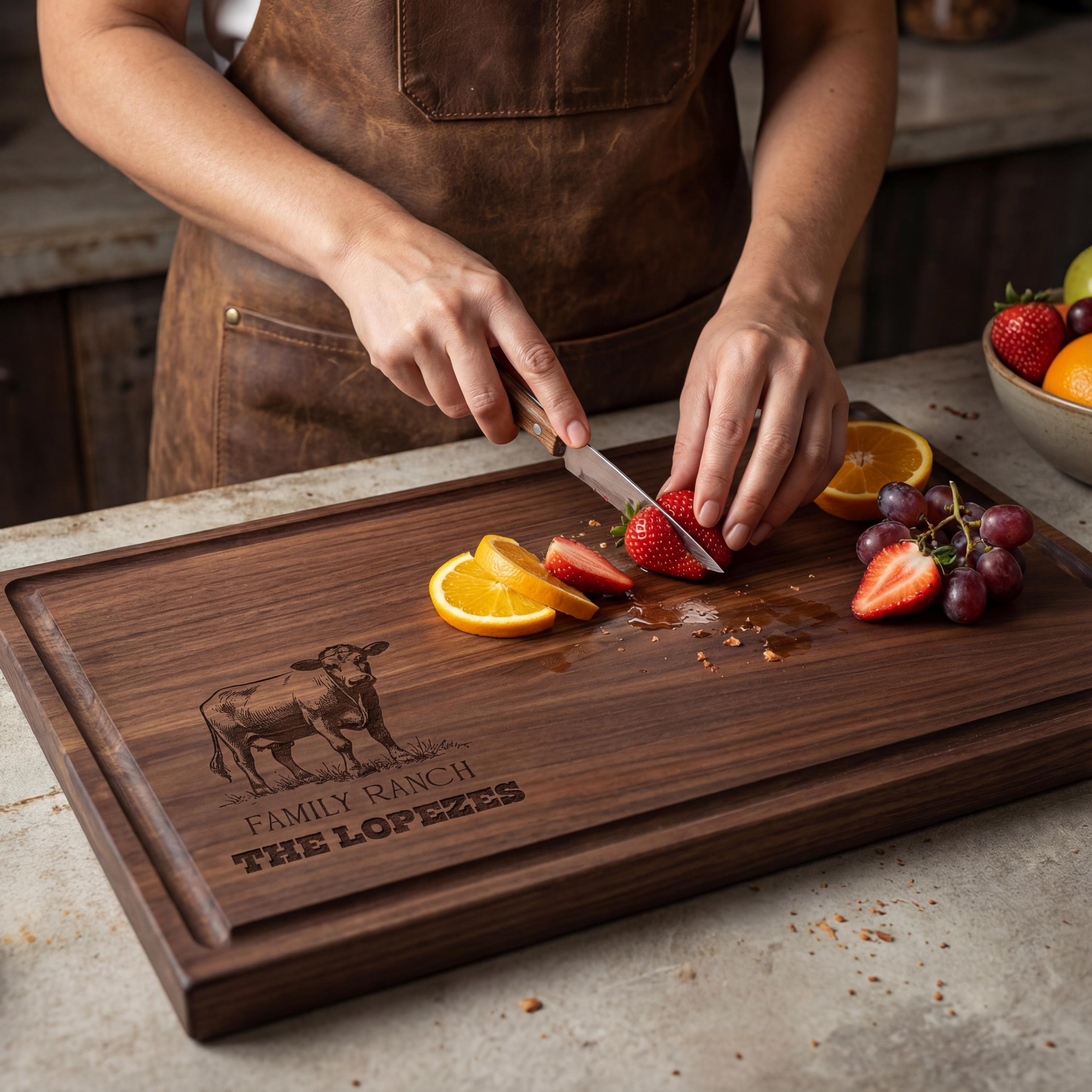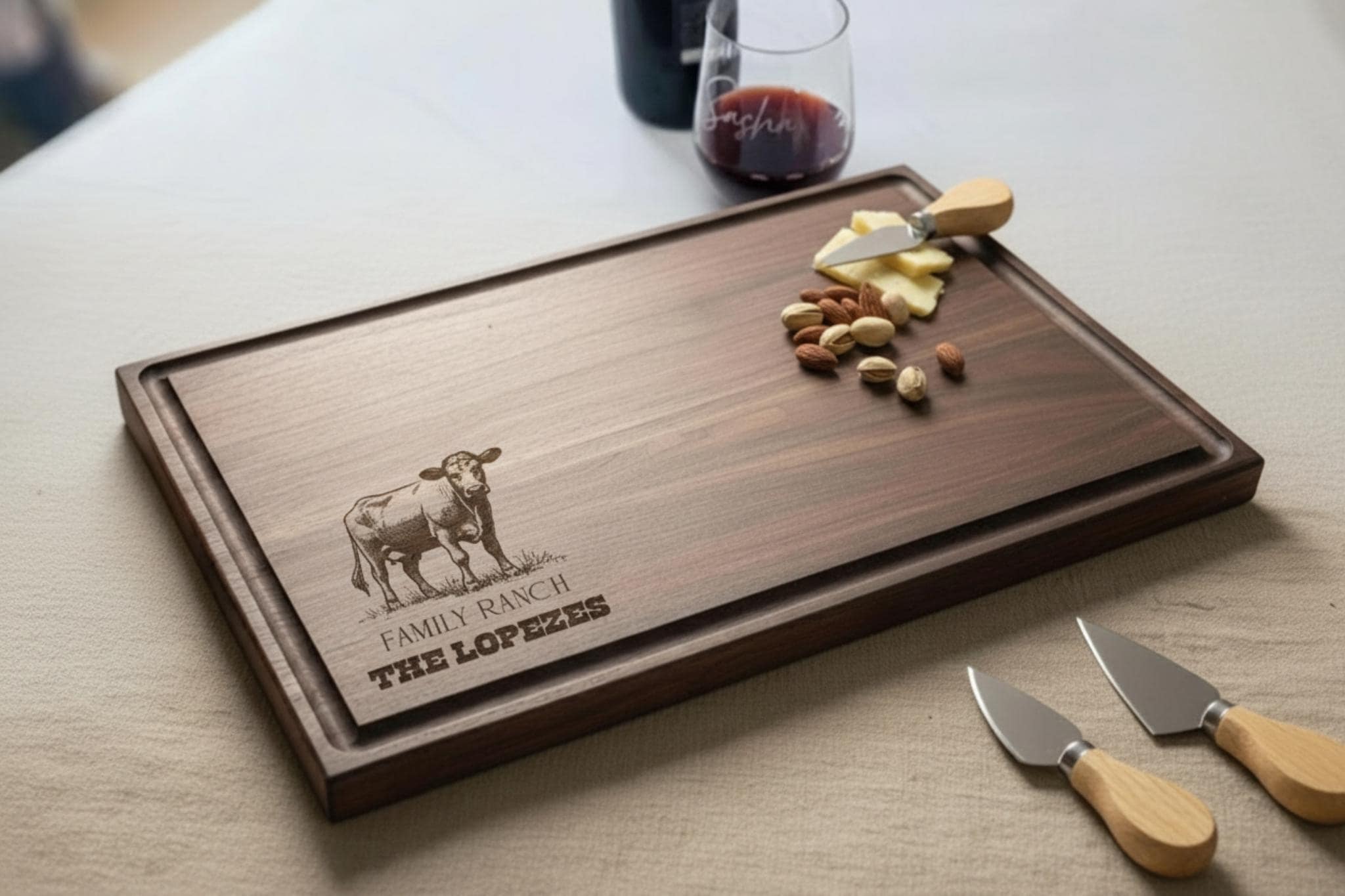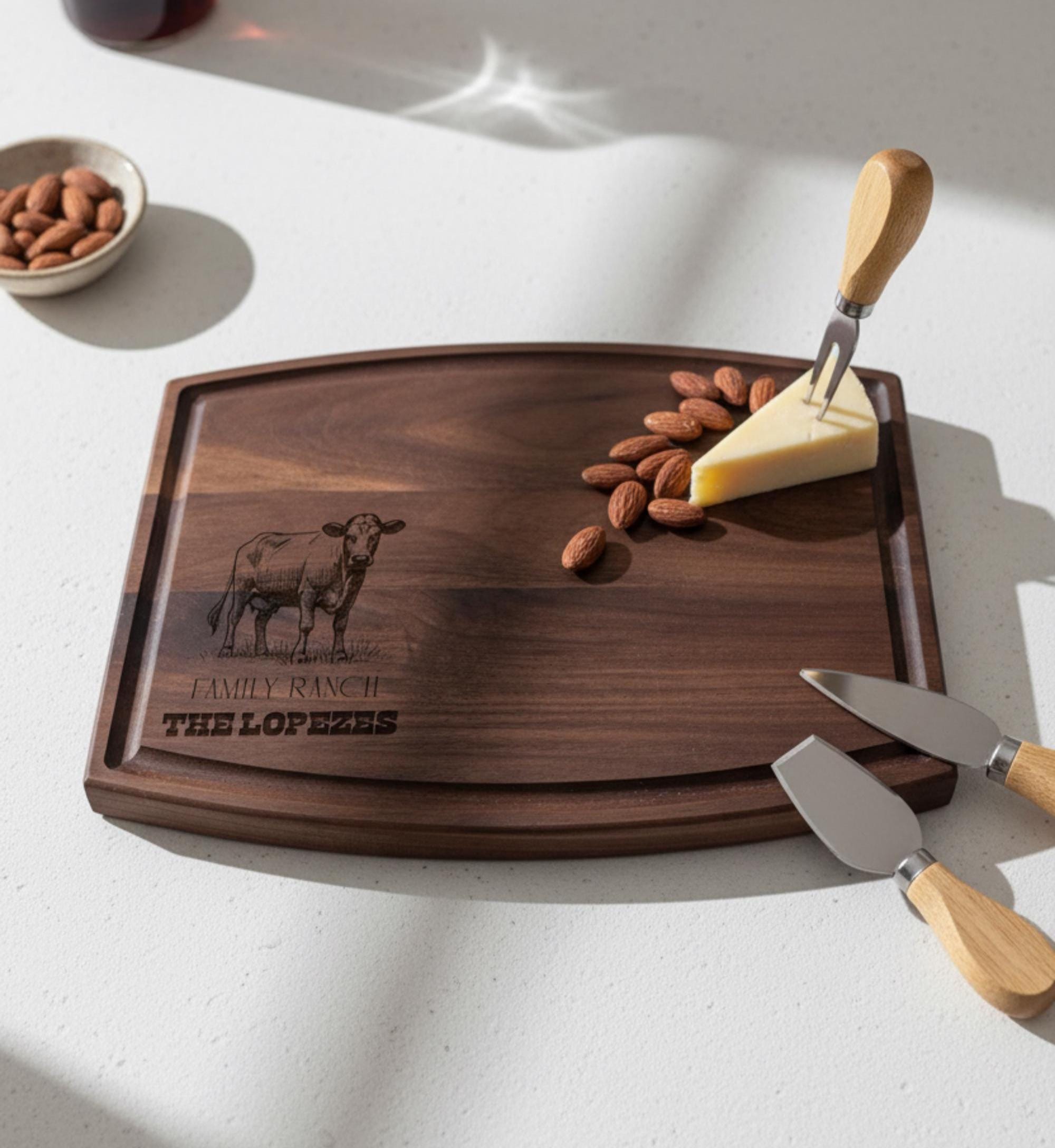 Personalized cutting board, Ranch: Custom Engraved Charcuterie Board, Family Farm Gift, Cow, Farm Decor, Kitchen Gift, Family Gift