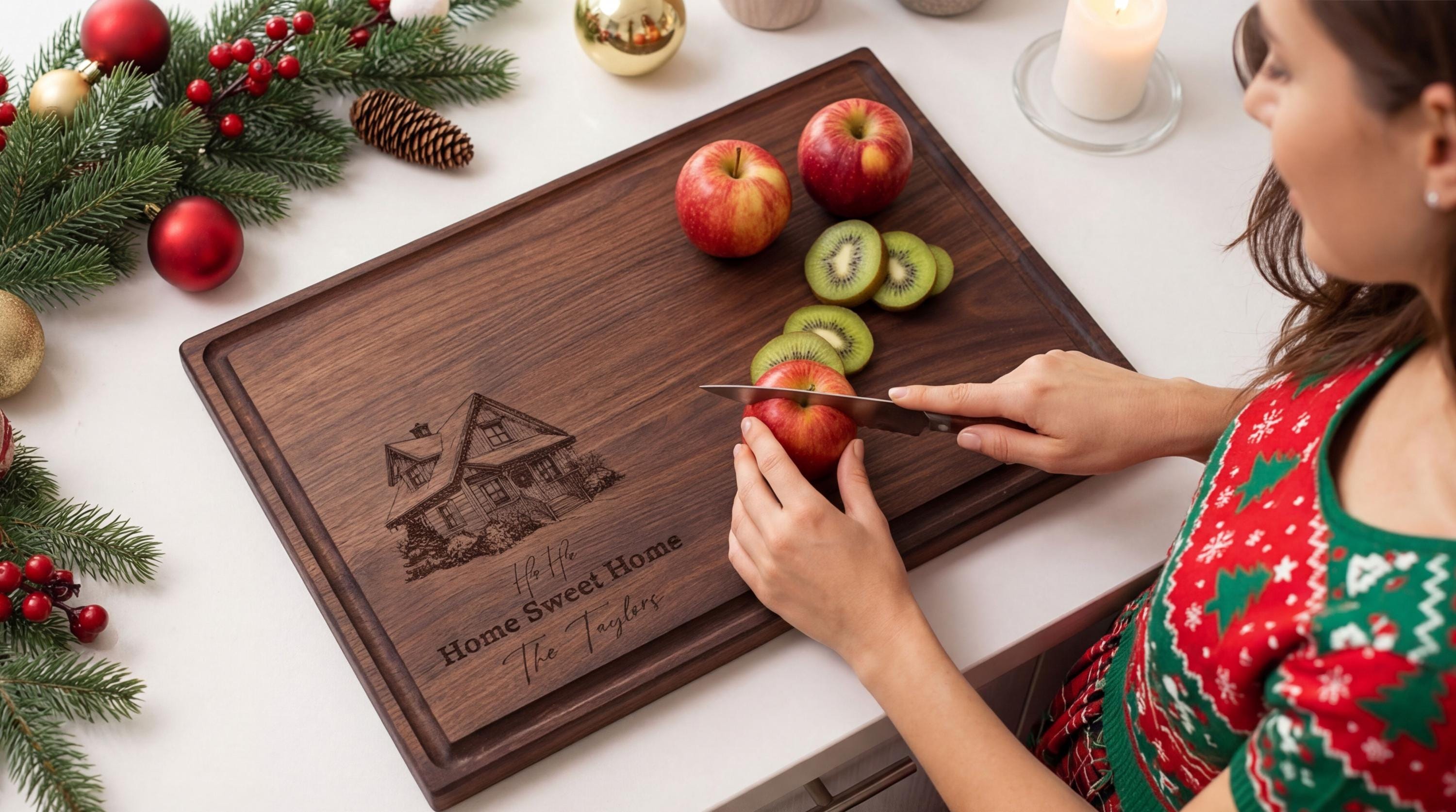 This personalized, laser-engraved cutting board makes the perfect Christmas gift.