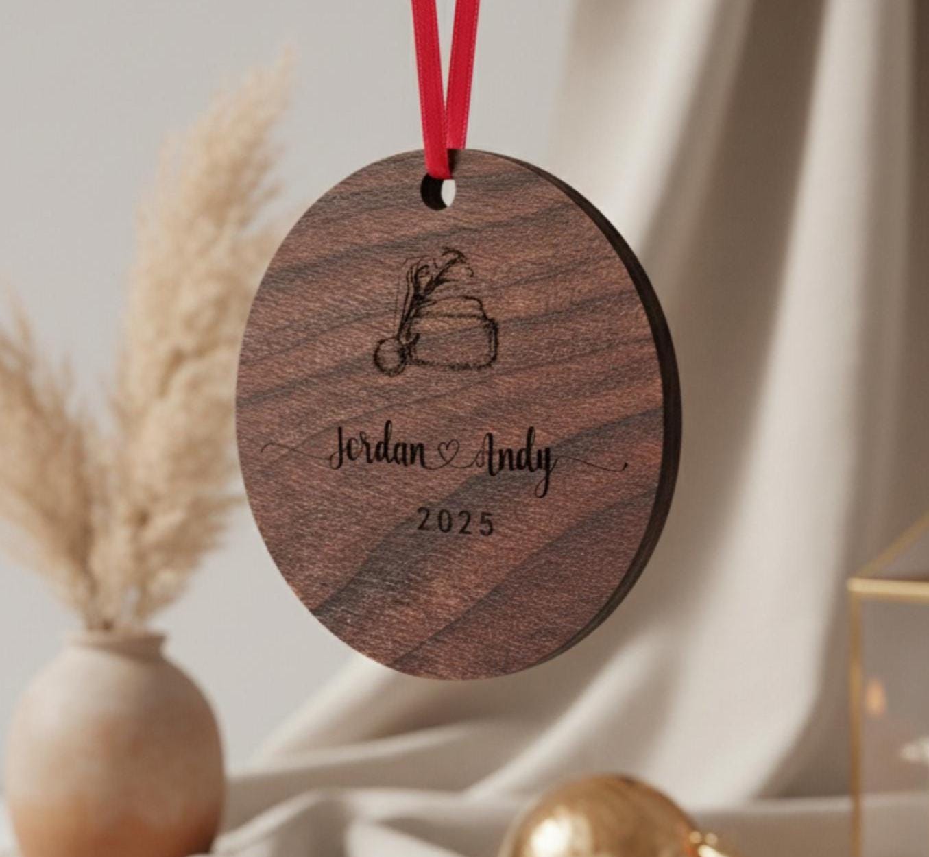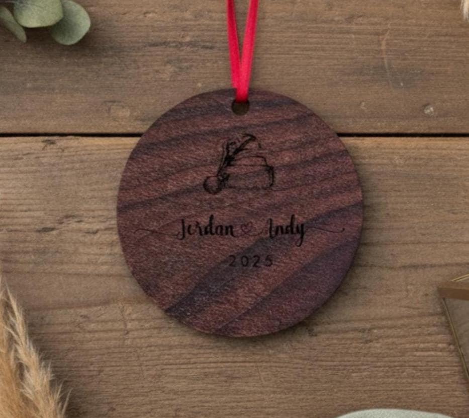 Whether you’re commemorating a first Christmas together, celebrating a newborn’s arrival, or gifting a cherished friend, these wooden ornaments make unforgettable holiday presents. Crafted from premium walnut for a warm, natural finish, they’re lightweight yet durable—designed to hang gracefully on any tree branch or wreath.