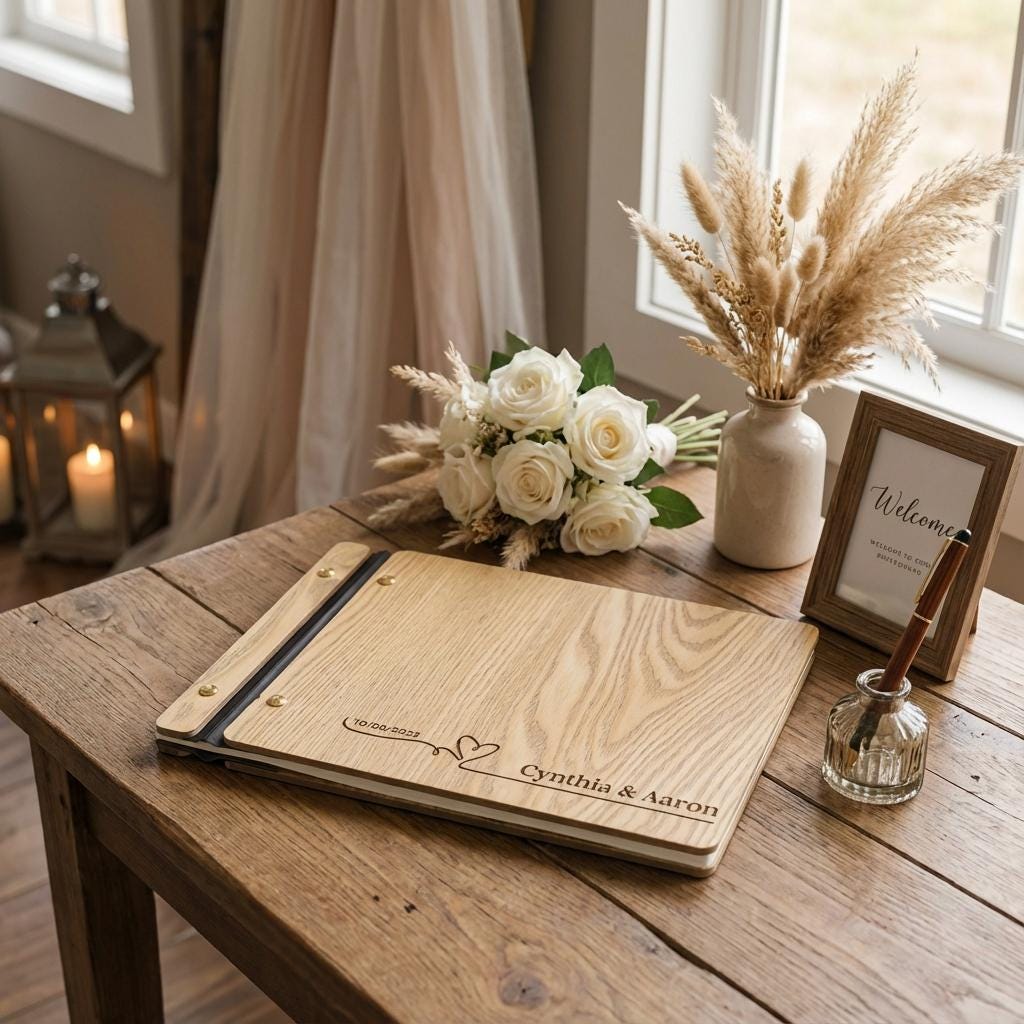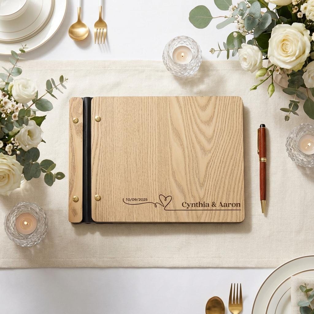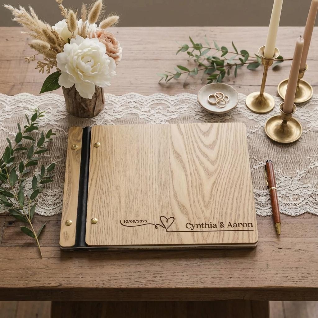 Personalized Wedding Guest Book | Custom Wood Photo Album & Minimalist Reception Sign-In
