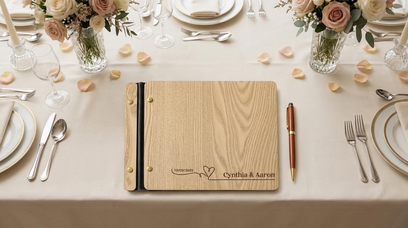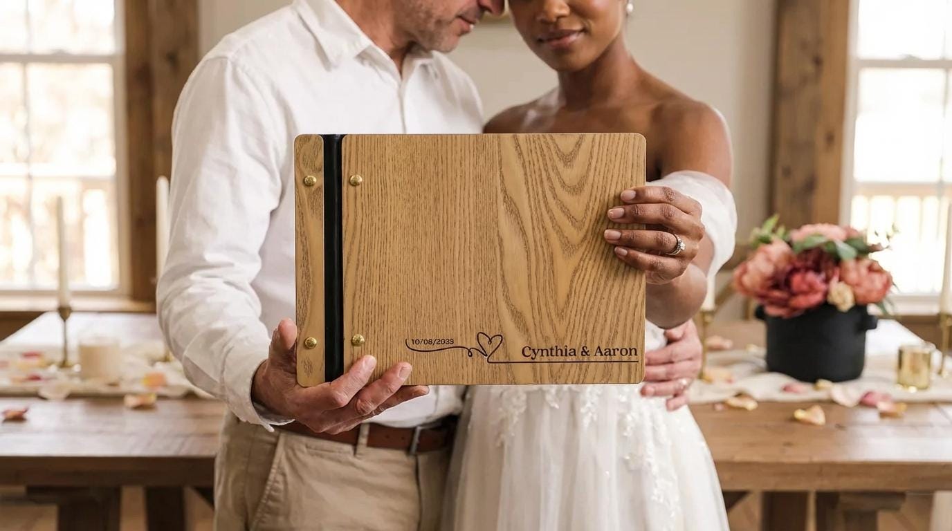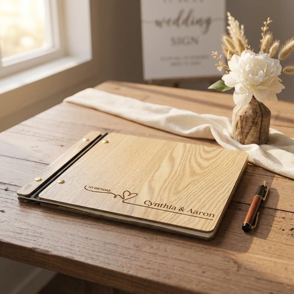 Personalized Wedding Guest Book | Custom Wood Photo Album & Minimalist Reception Sign-In