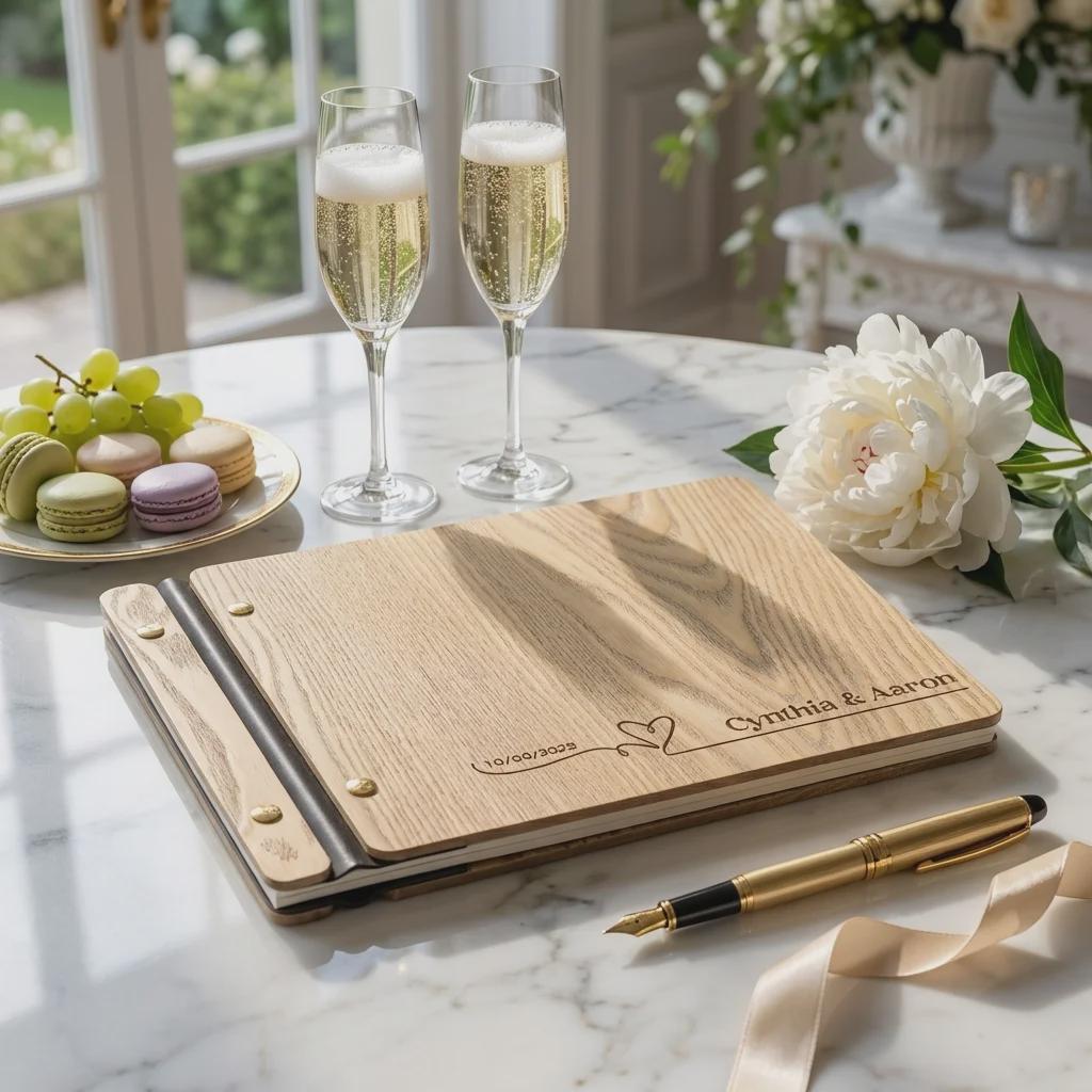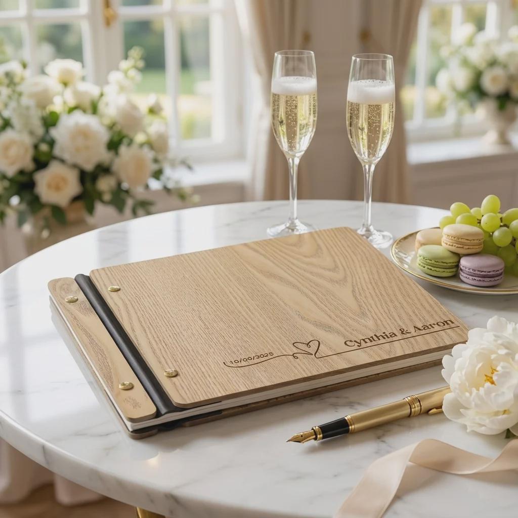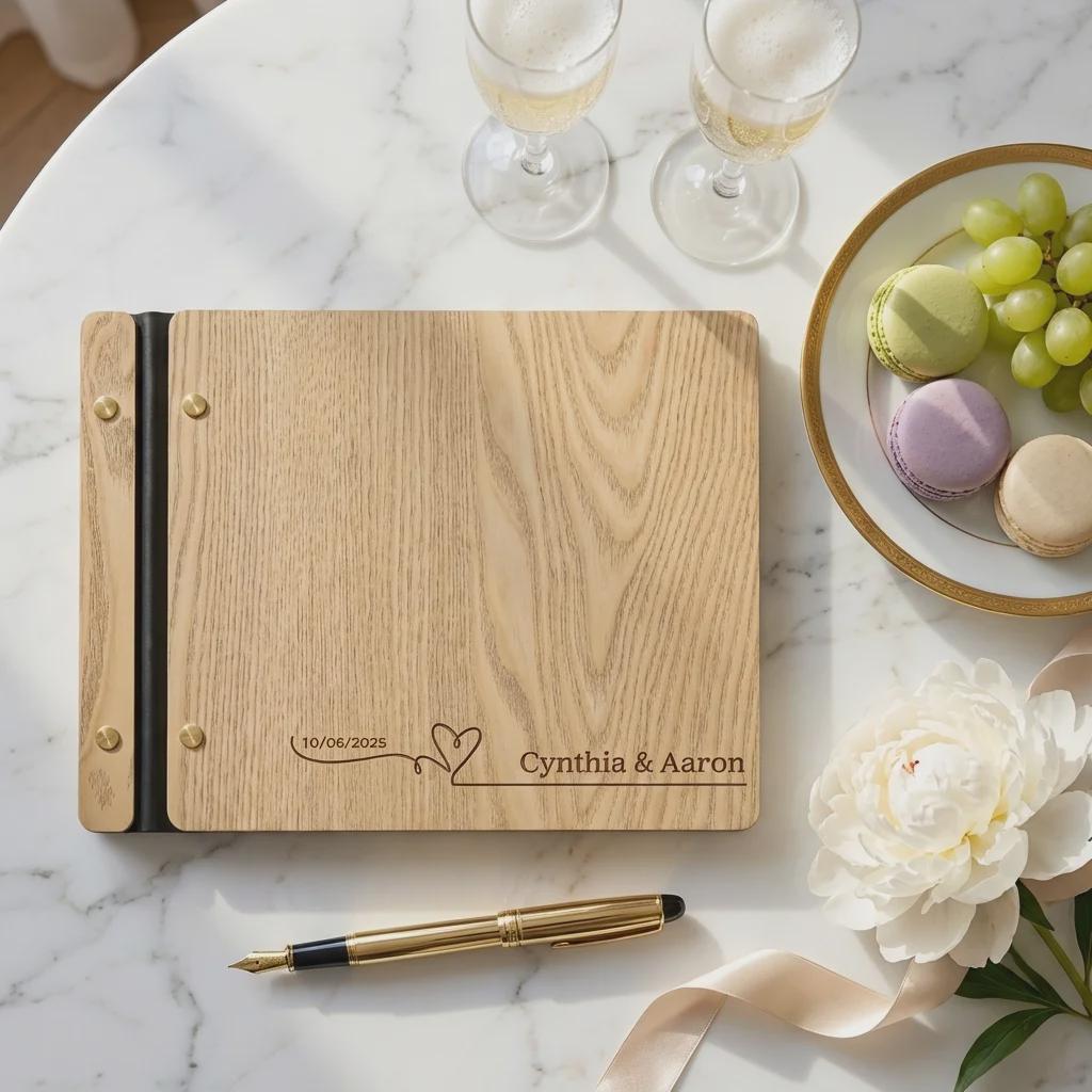Personalized Wood Wedding Guest Book, Custom Engraved Signature Album for Couples
