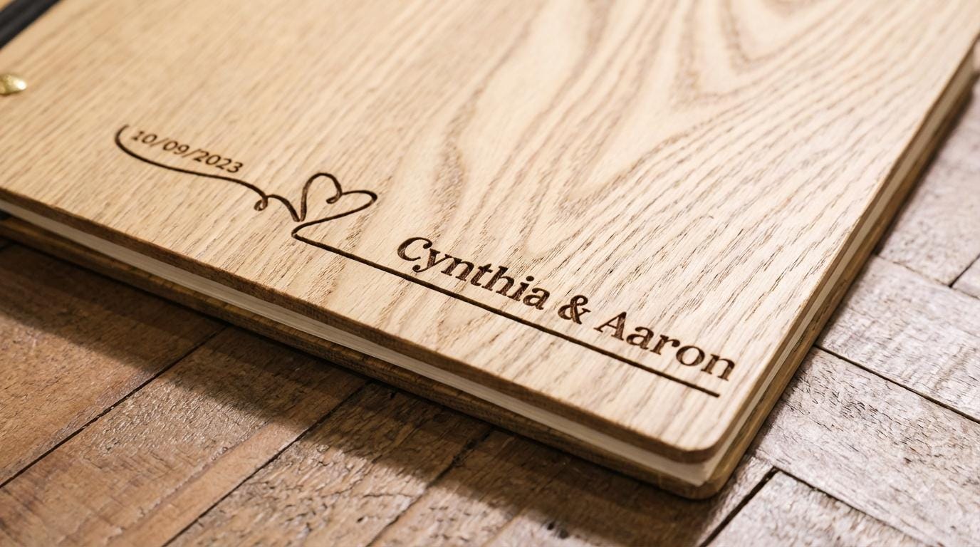 Our guestbooks are laser-engraved with precision, ensuring a beautiful and lasting finish. With dimensions of 8.5 x 11 inches, our guestbooks are the perfect size to capture memories from your wedding day.