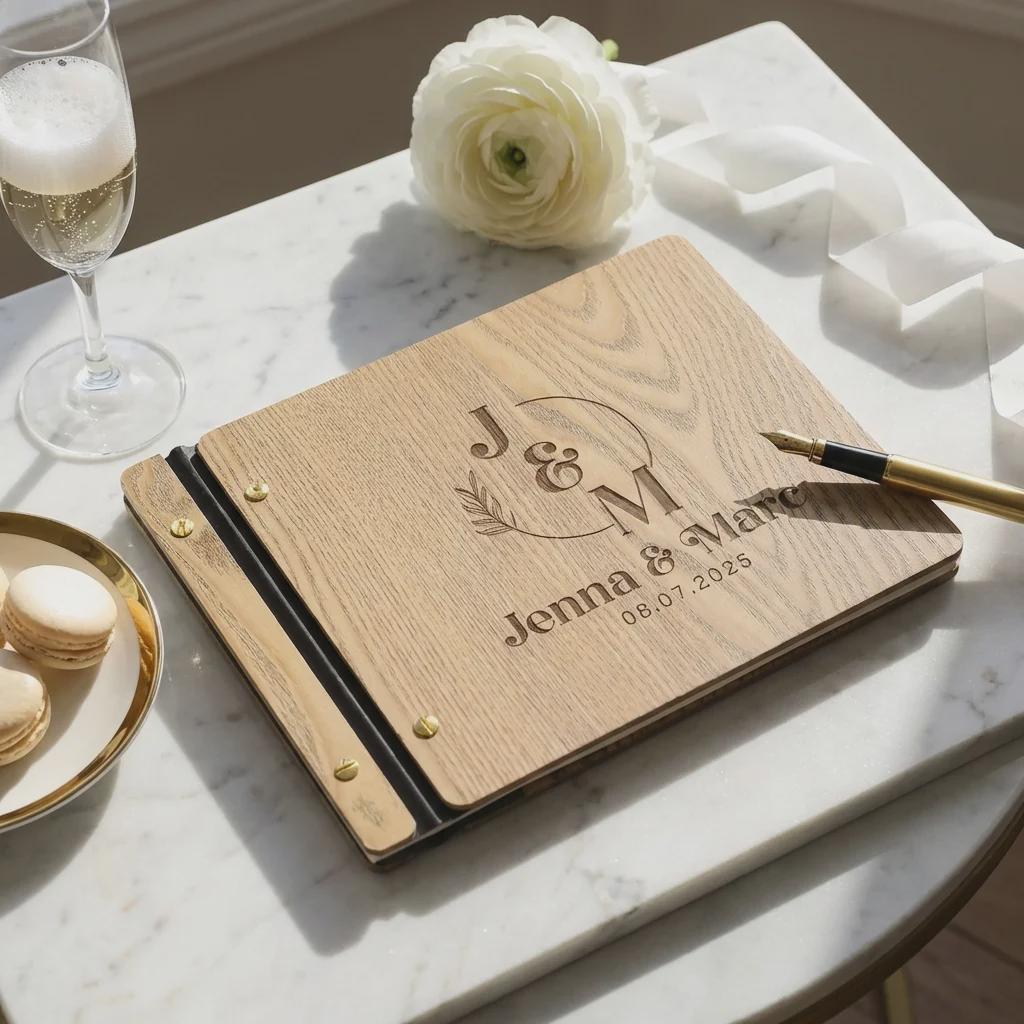 Make your wedding unforgettable with a personalized touch that will be cherished for years. Whether you're planning a rustic outdoor celebration or an elegant indoor affair, our wooden guestbooks add a touch of warmth and charm to any wedding theme.