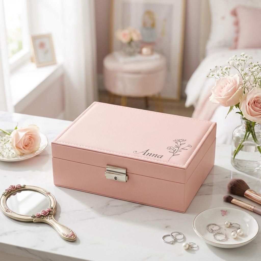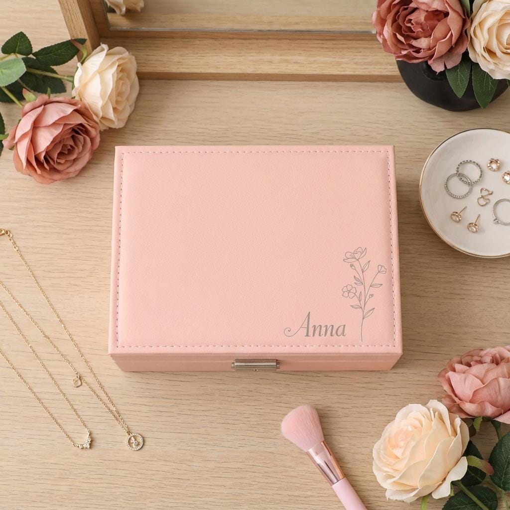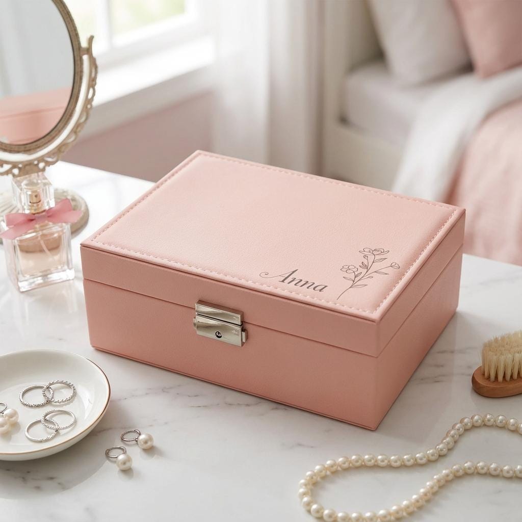 Each box is custom-engraved on demand, creating a unique personalized jewelry box for her.