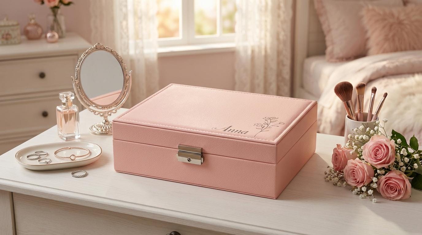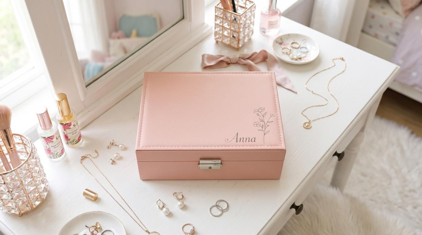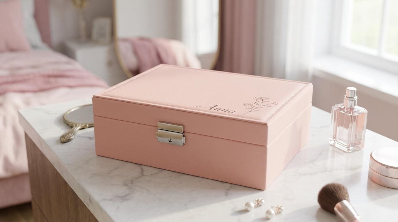 Each box is custom-engraved on demand, creating a unique personalized jewelry box for her.