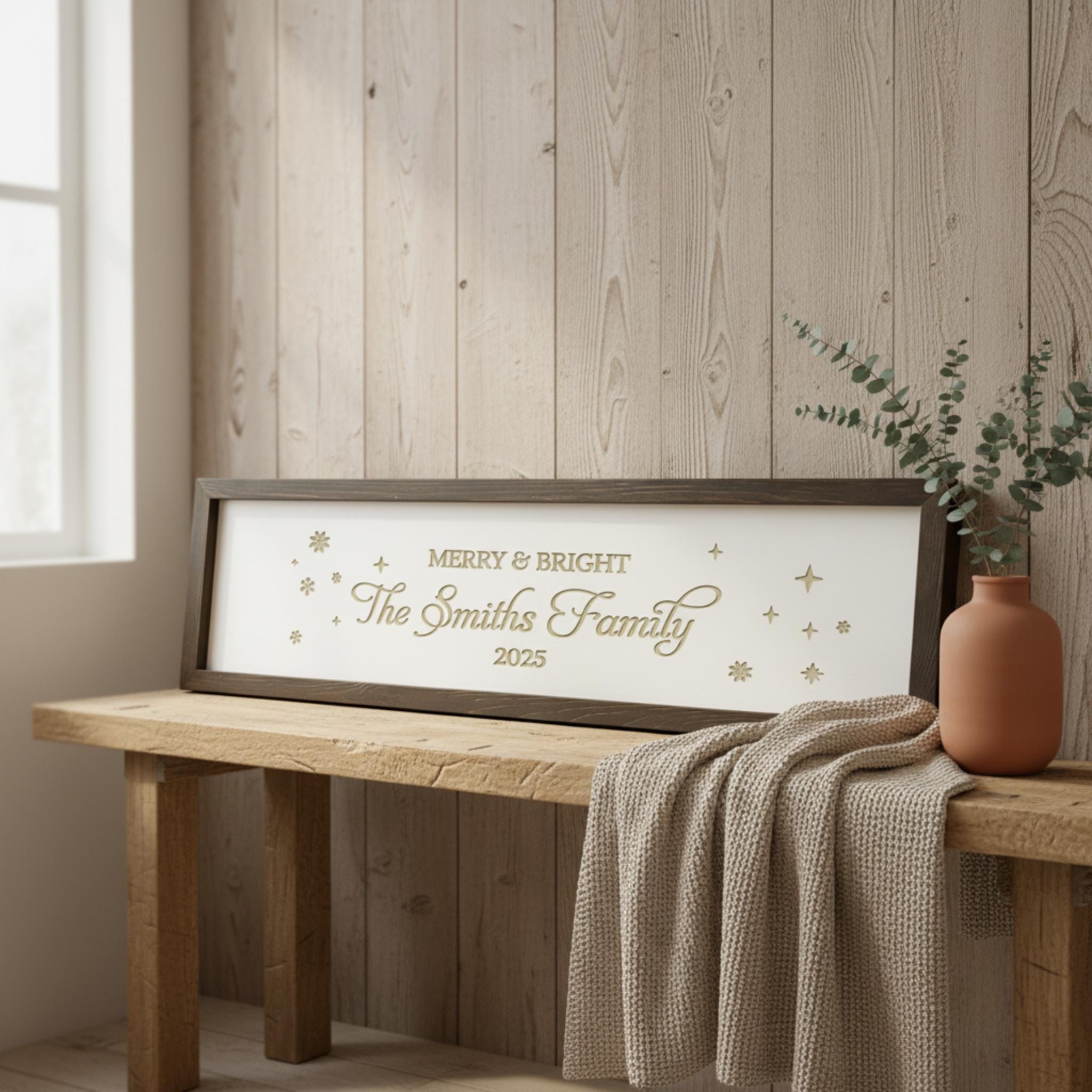 Add charm, warmth, and elegance to any space with our personalized farmhouse wooden signs. Expertly crafted and laser-engraved, these signs combine the beauty of modern farmhouse style with timeless quality. Perfect for couples, housewarmings, and Christmas, they make a thoughtful and heartfelt gift for any occasion.