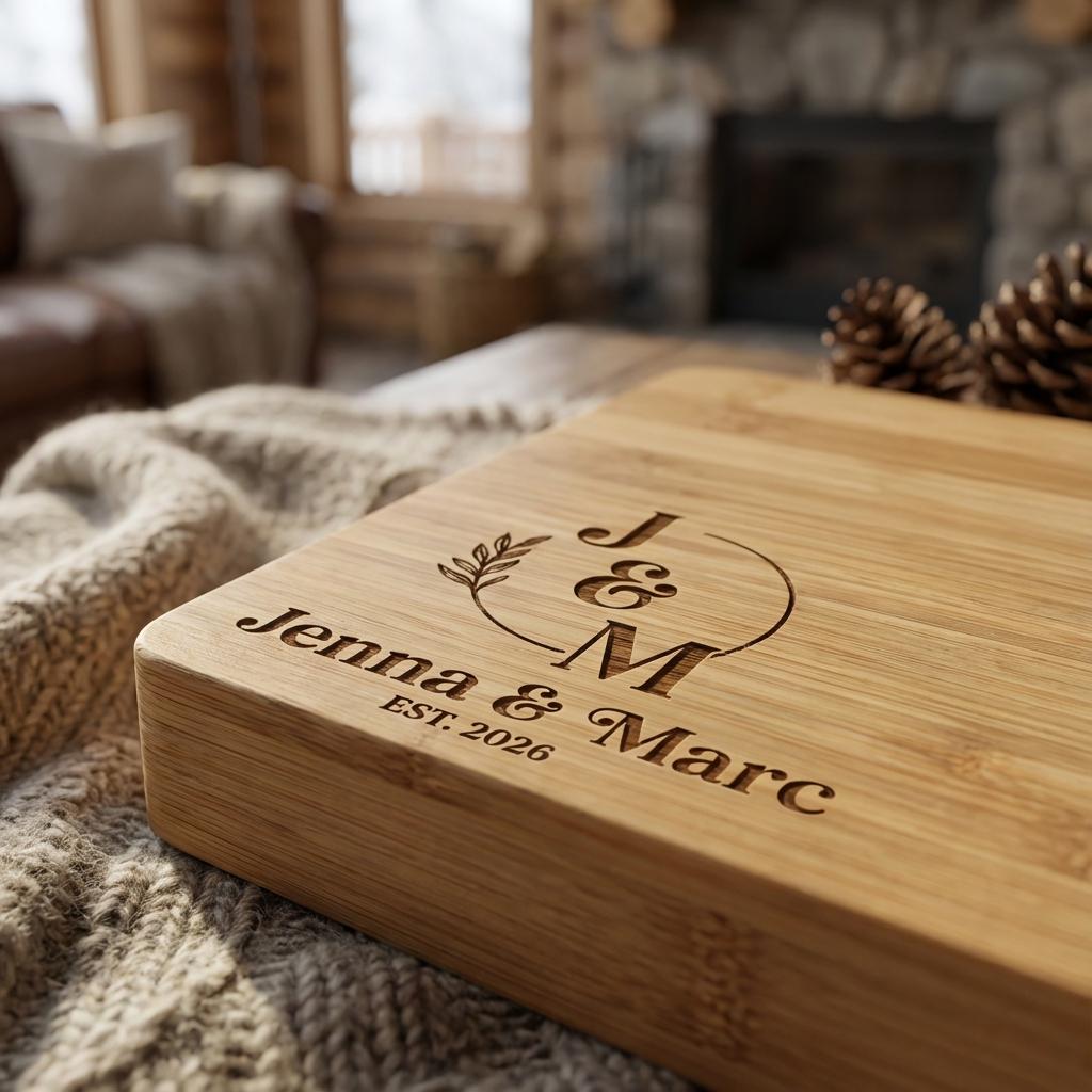 Handcrafted from eco-friendly bamboo, this personalized serving board makes every occasion memorable. Whether it is a wedding, bridal shower, or a cozy night by the fire, this board is the centerpiece of the party.