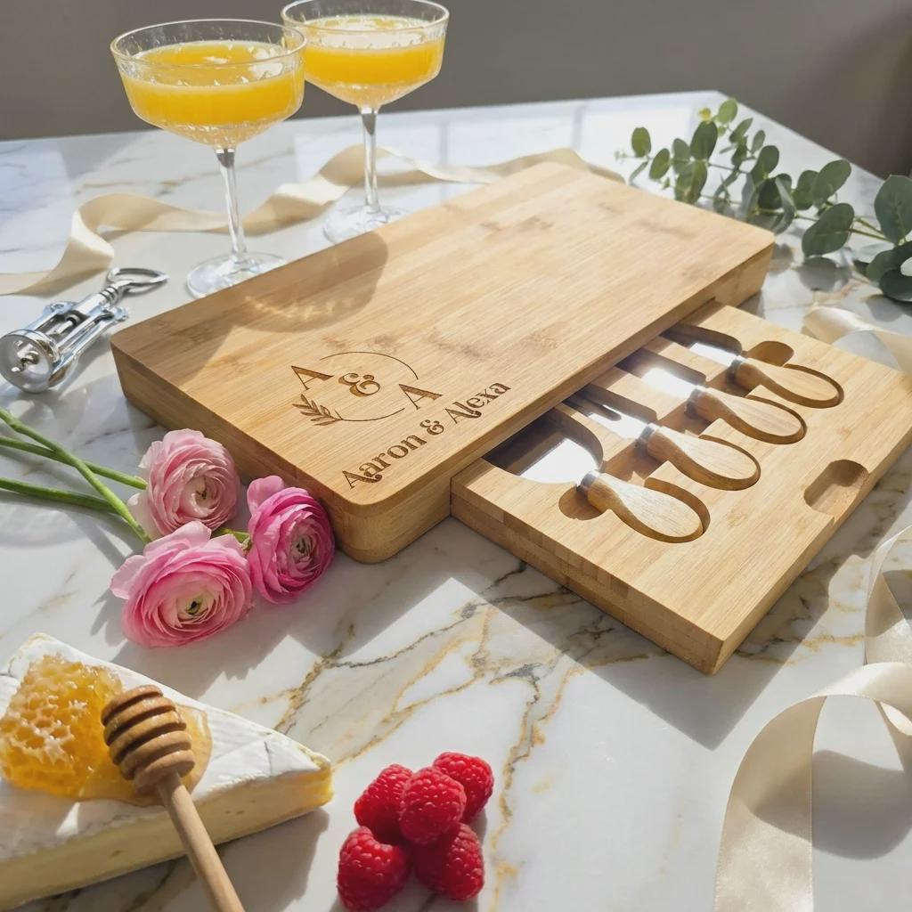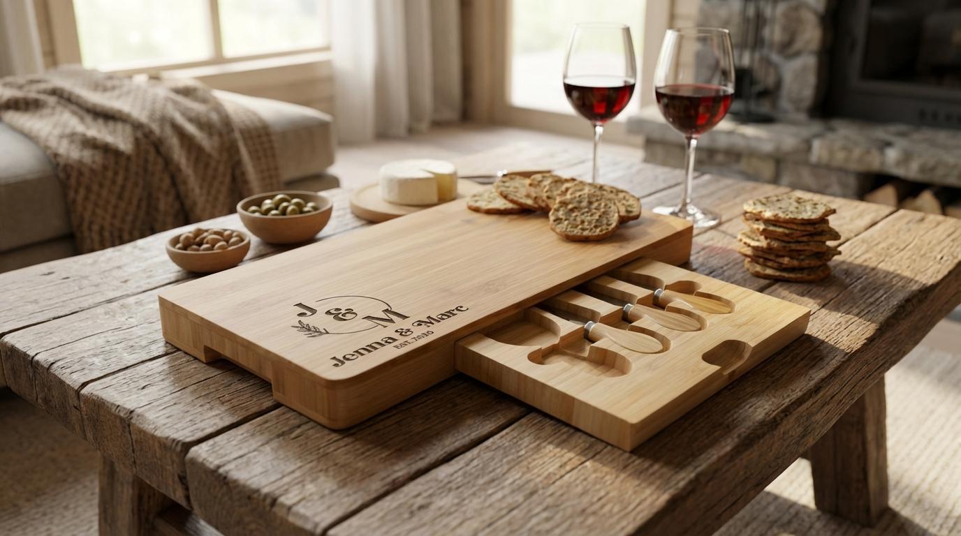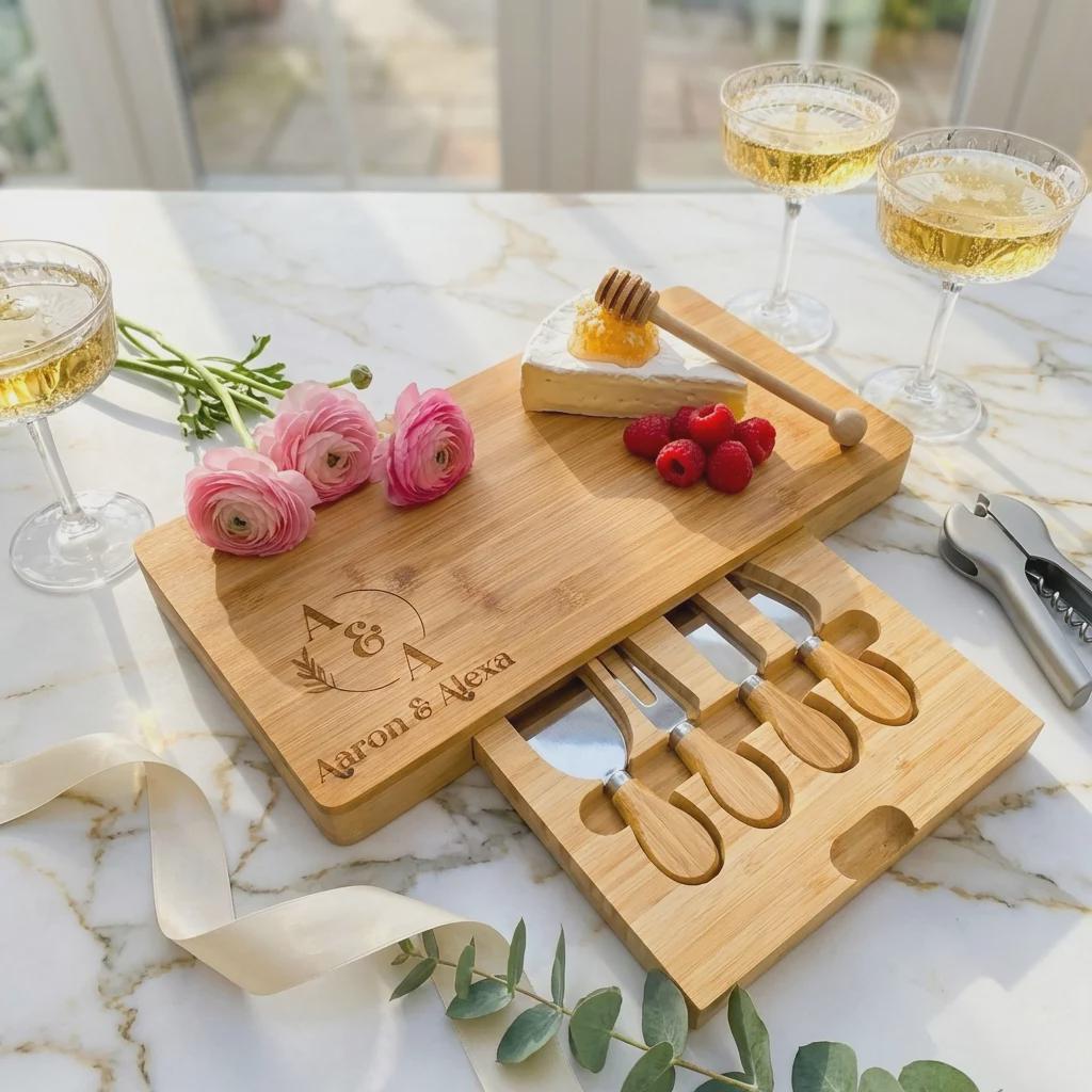 Elevate Your Entertaining with a Custom Engraved Cheese Board Set.