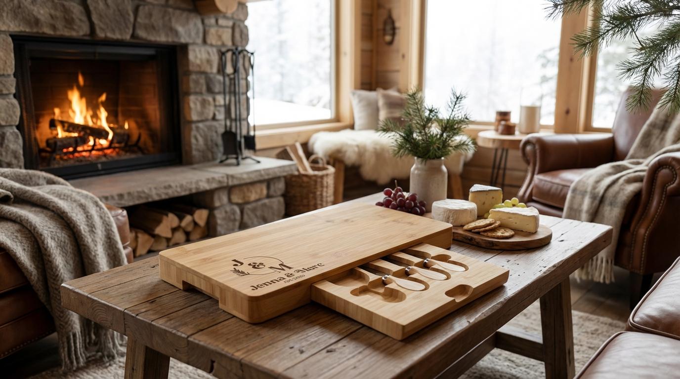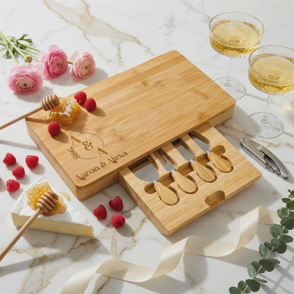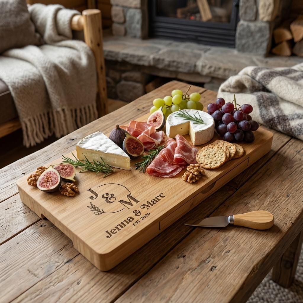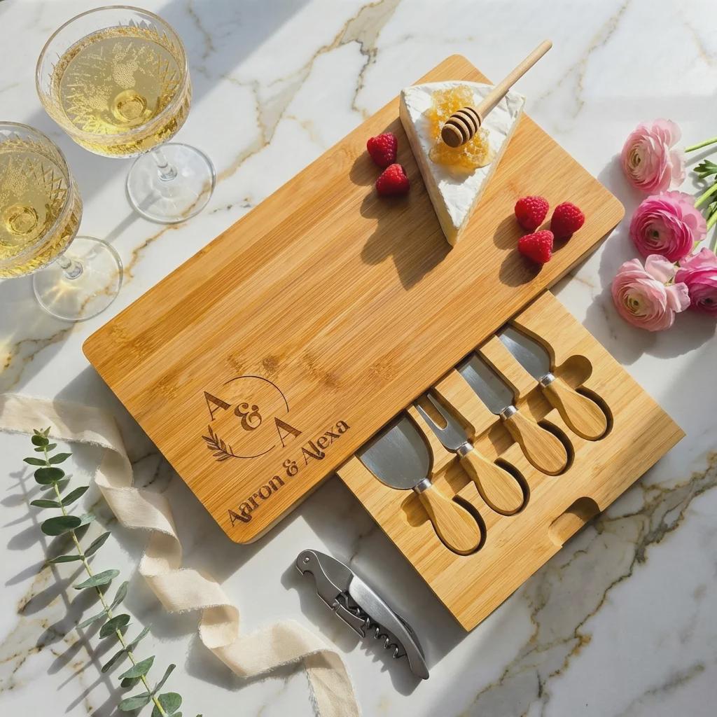 Elevate Your Entertaining with a Custom Engraved Cheese Board Set.