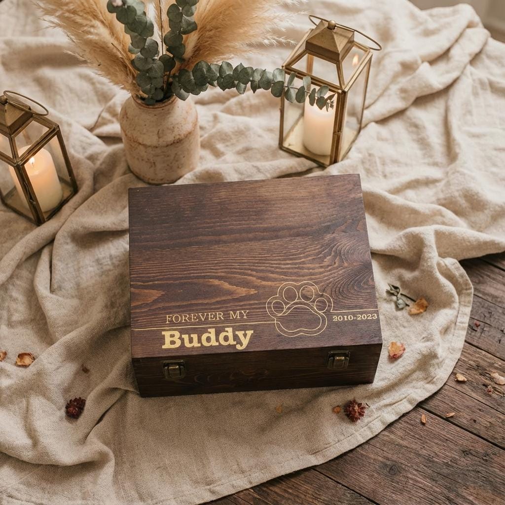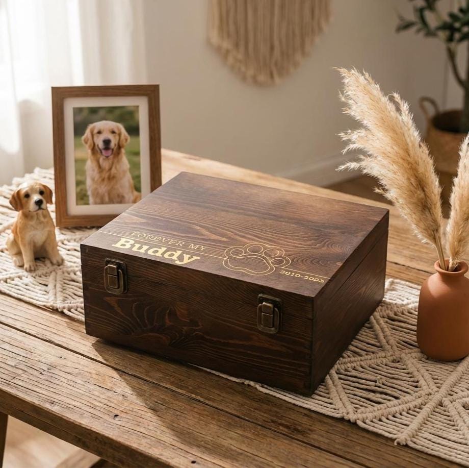 Personalized Pet Memorial Keepsake Box: Engraved Wooden Remembrance Trinket