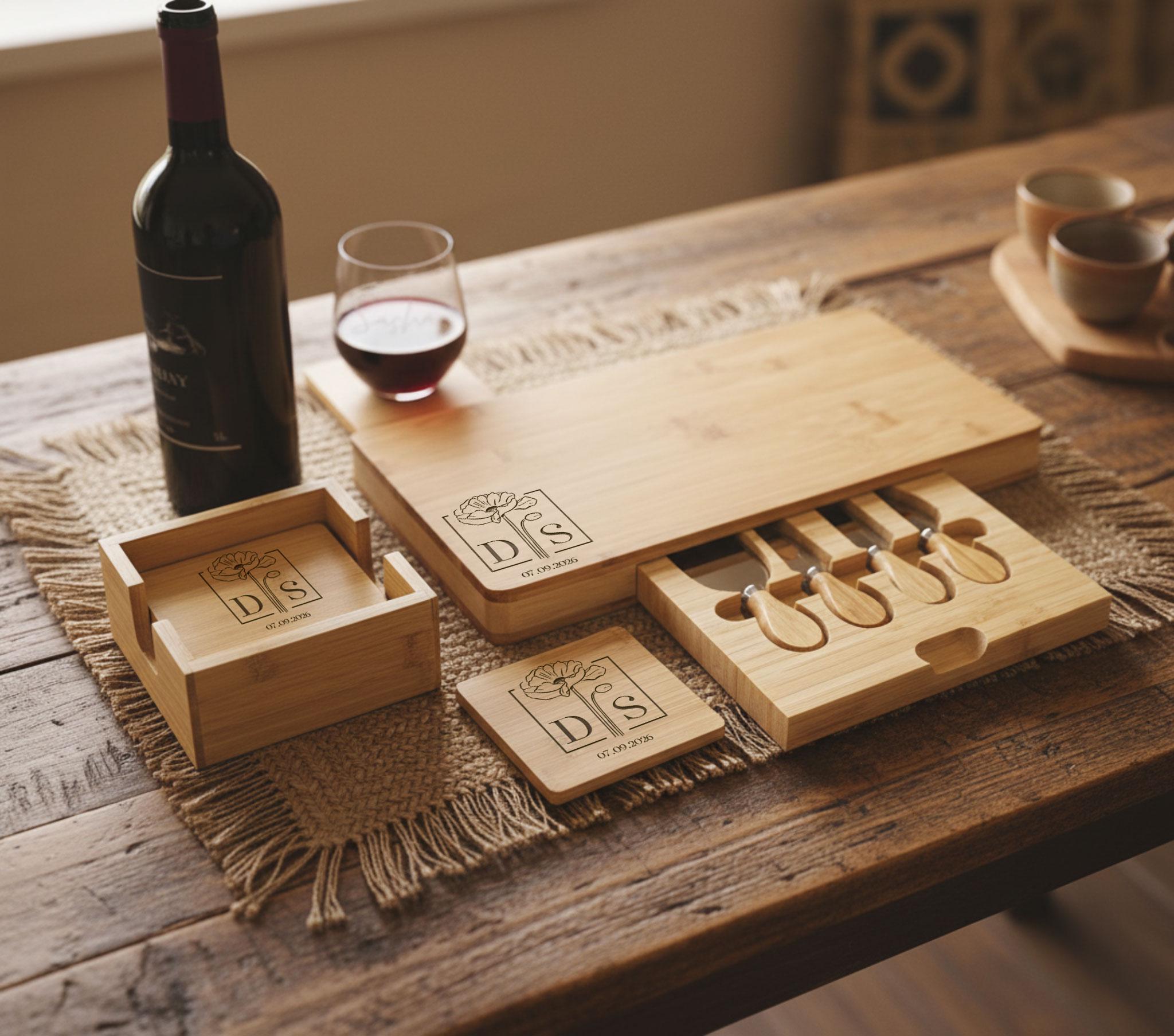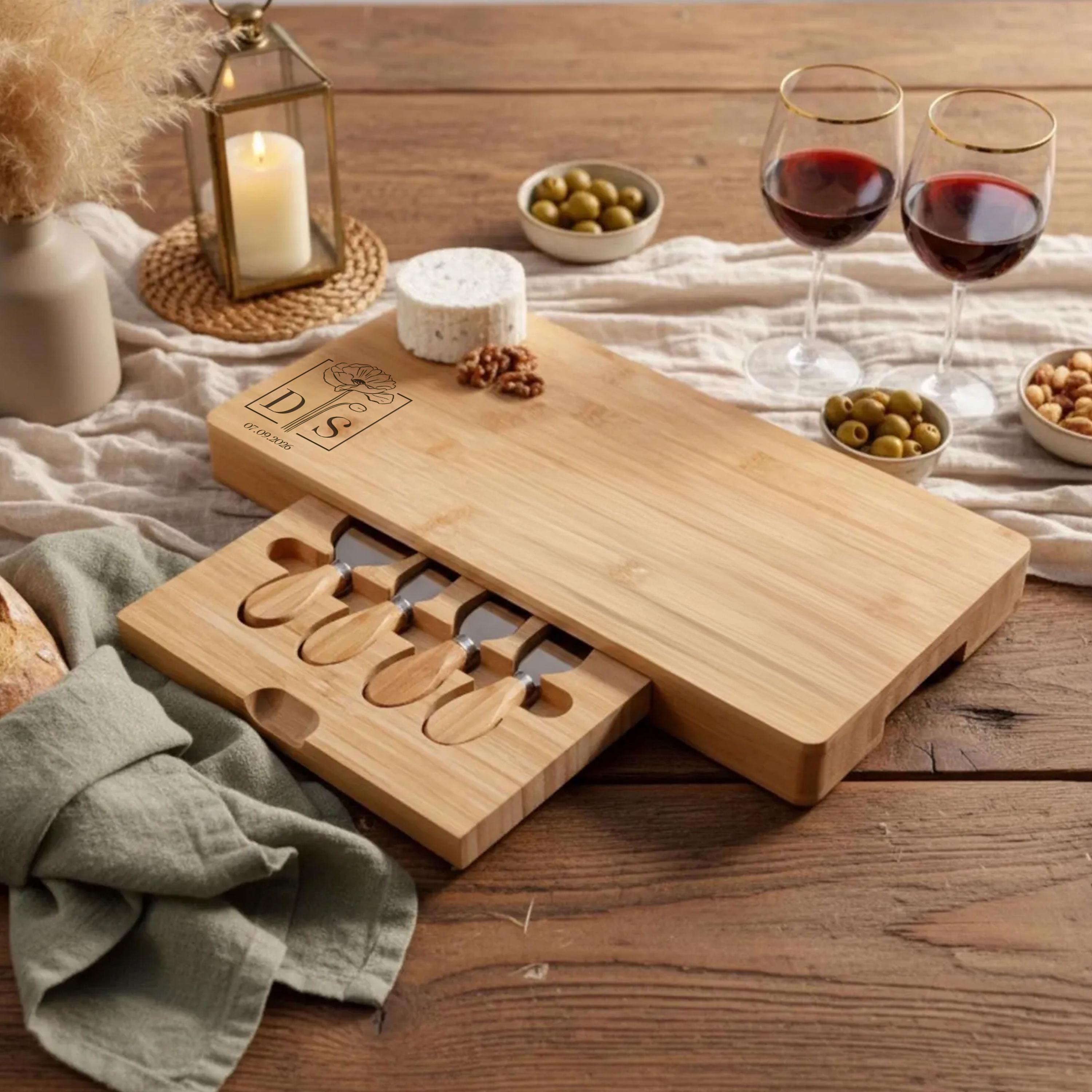 Personalized Bamboo Charcuterie Board: Monogrammed Cheese Board Set - Wedding Gift