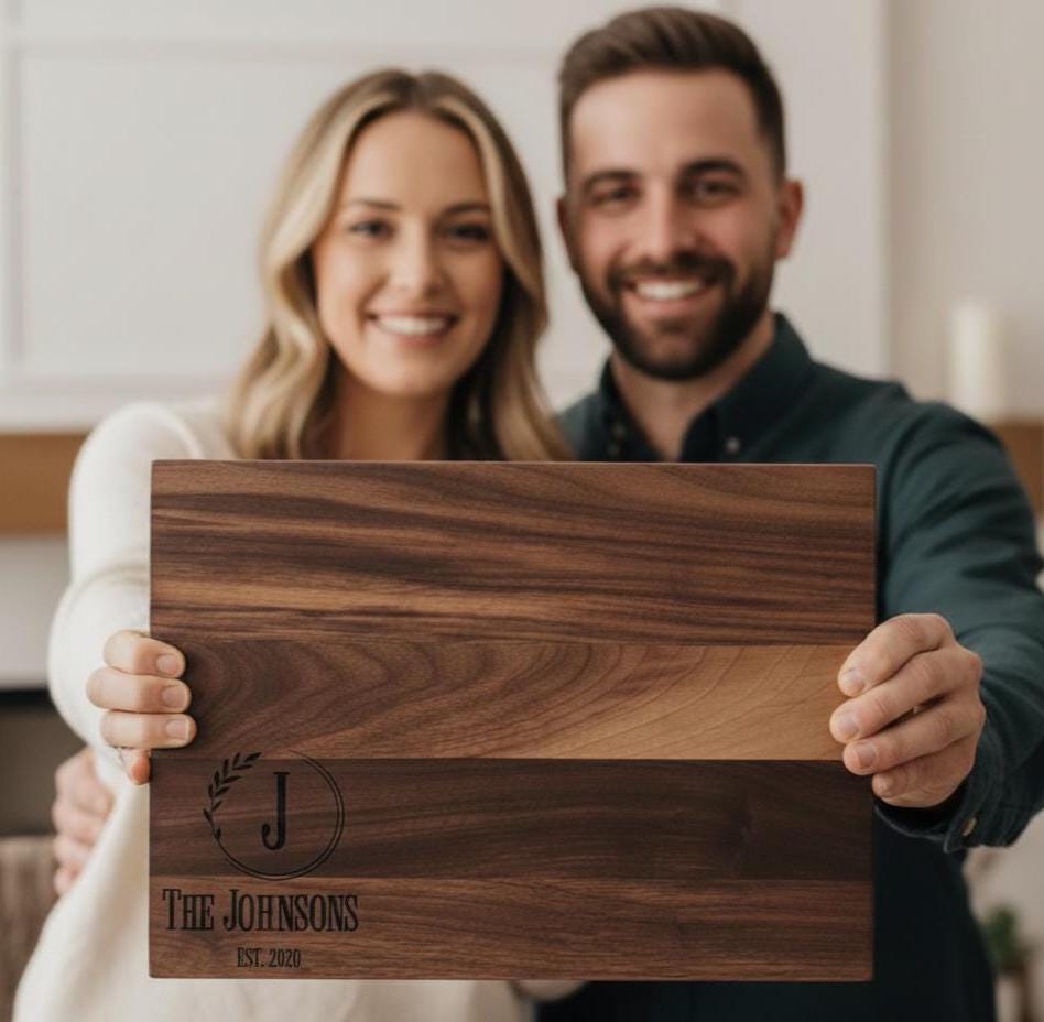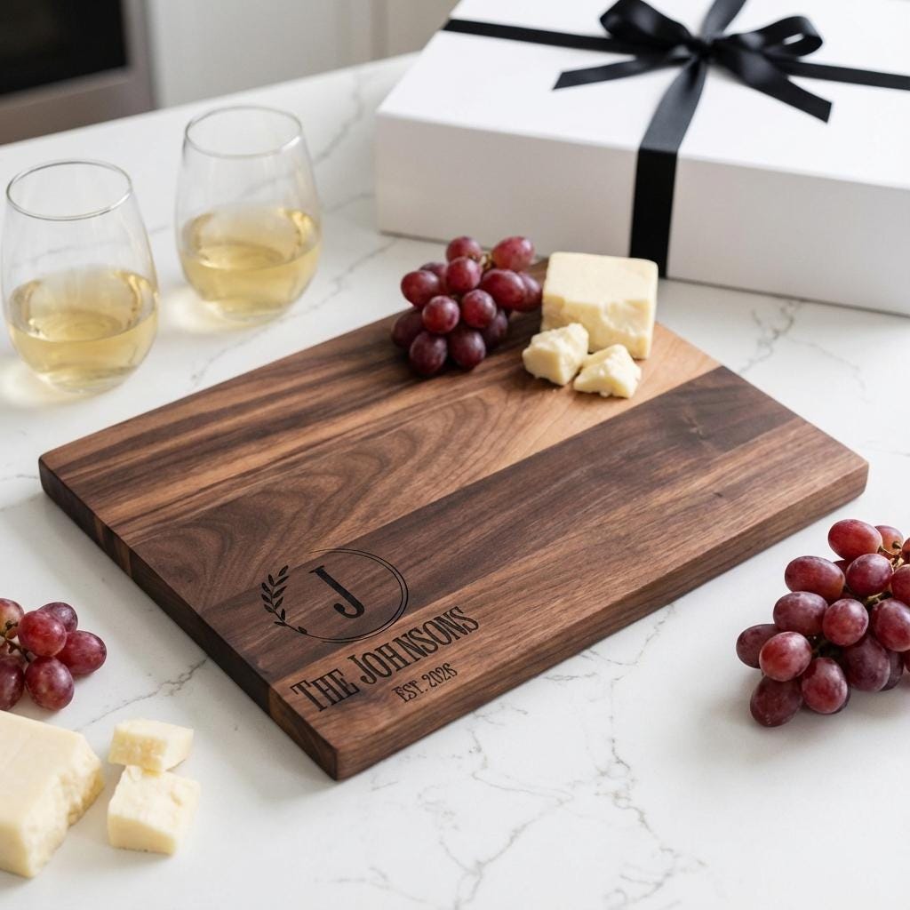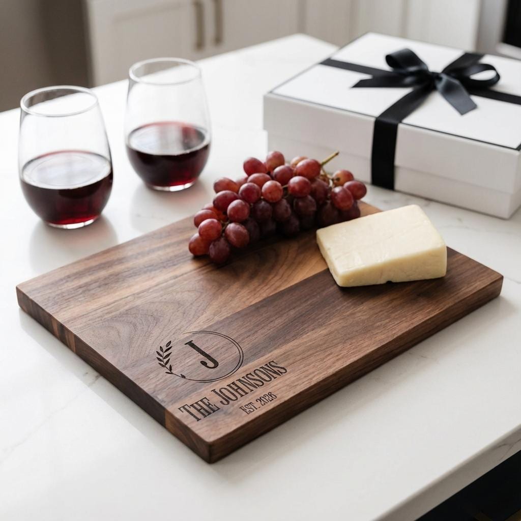 Monogrammed Cutting Board – Housewarming Gift: Custom Engraved Charcuterie Board For Couples
