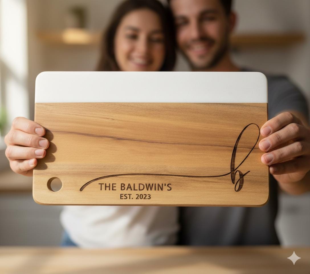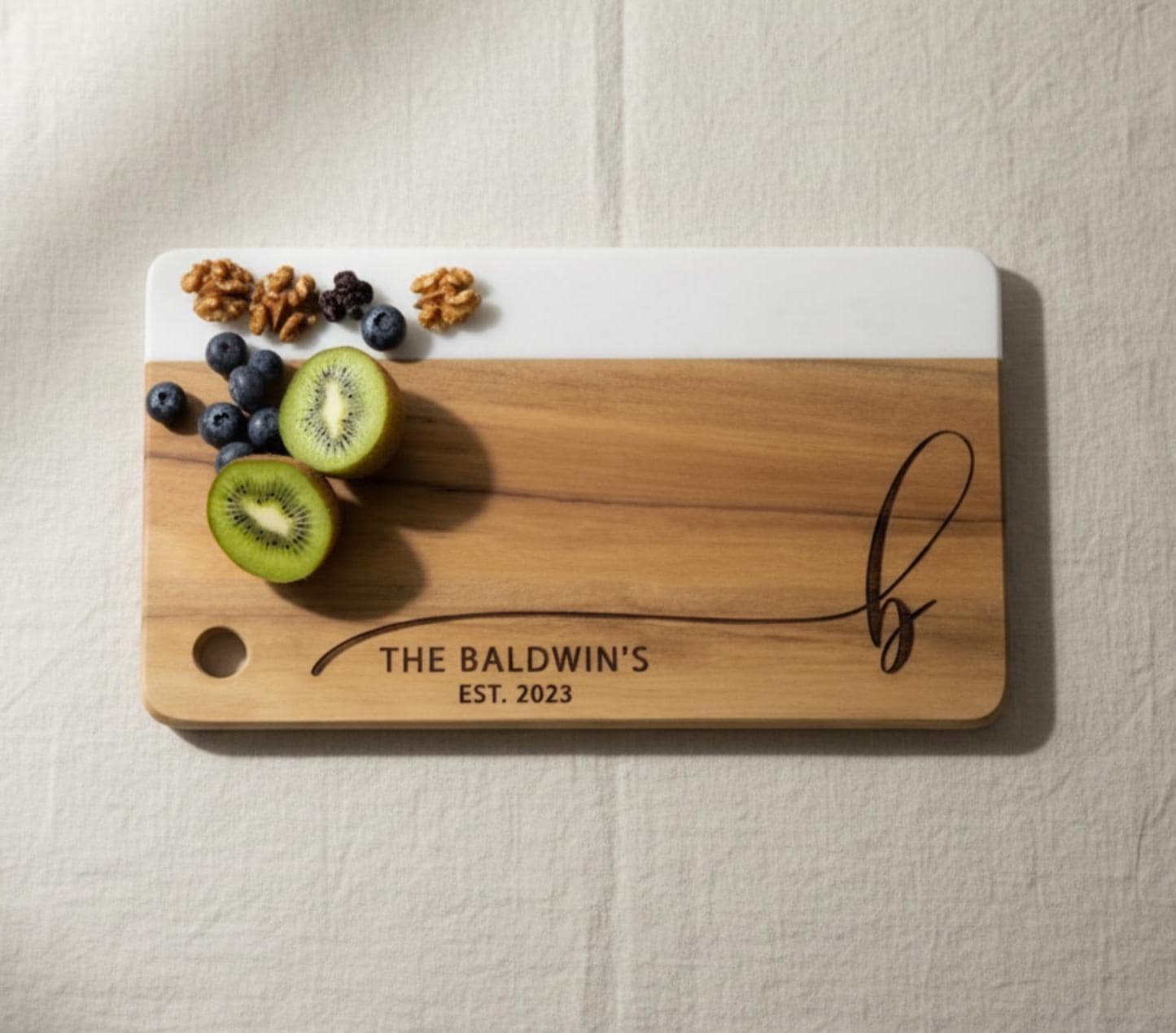 Monogrammed Wood and Marble Charcuterie Board: Custom Engraved Gift For The Couple