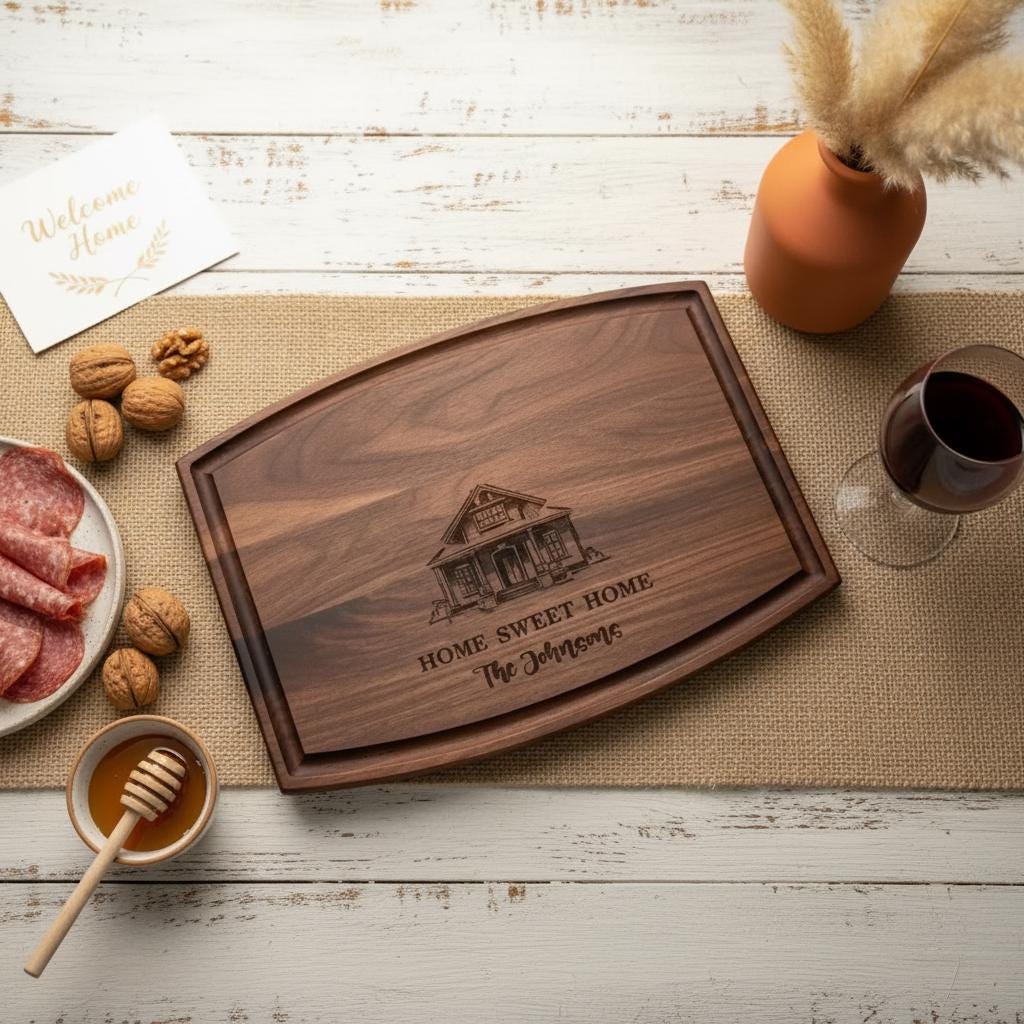 Personalized Home Sweet Home Walnut Cutting Board, Realtor Closing Gift for New Homeowners