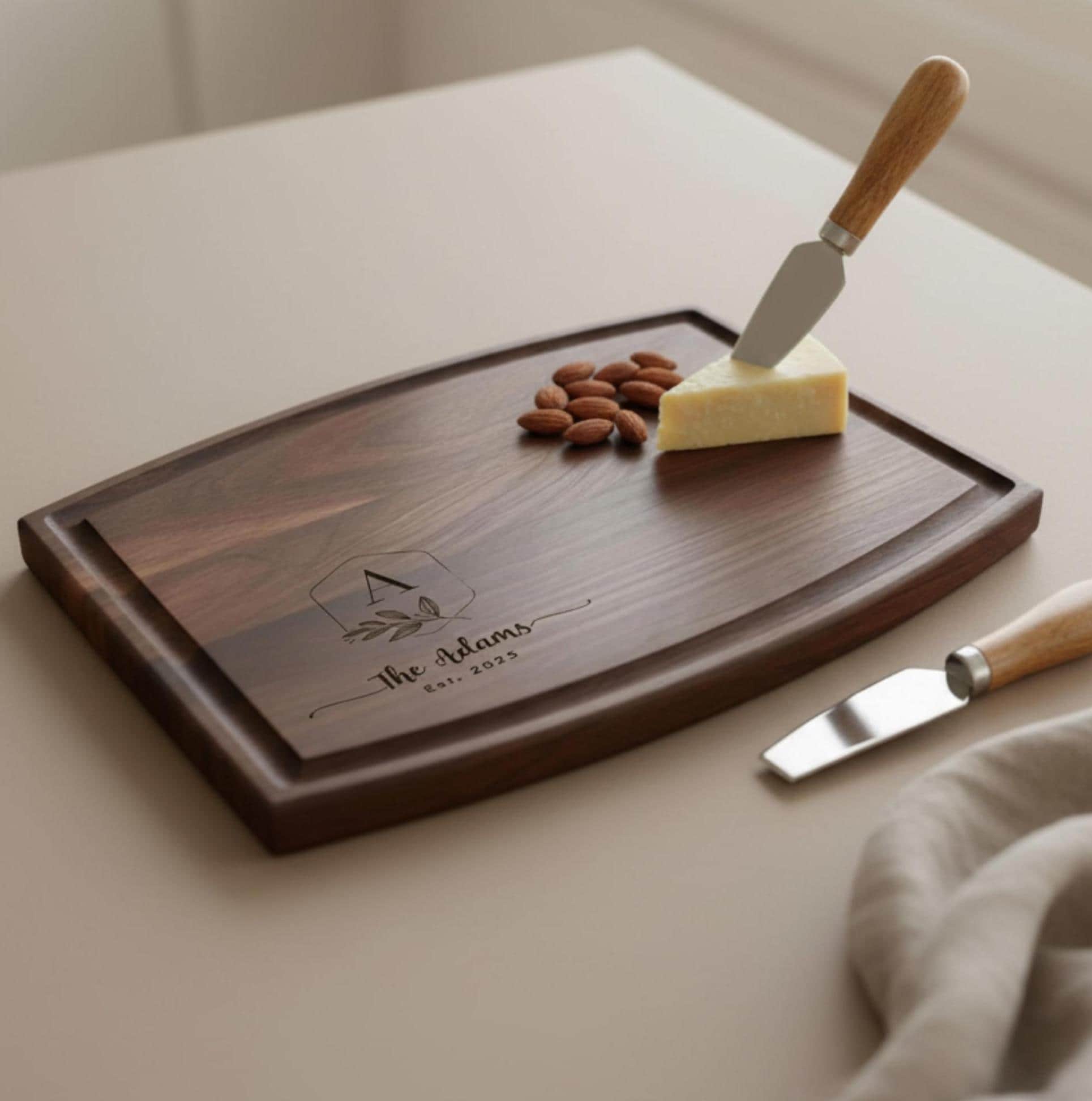 Personalized Wedding Cutting Board – Gift for Couples: Custom Engraved Monogrammed Charcuterie Board
